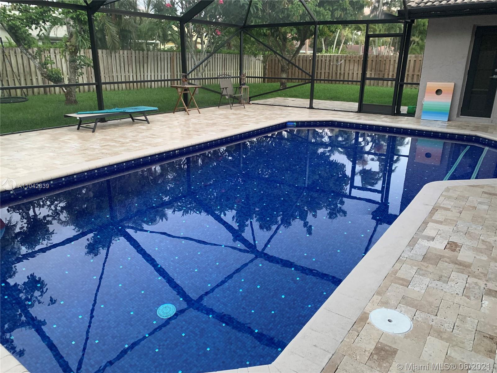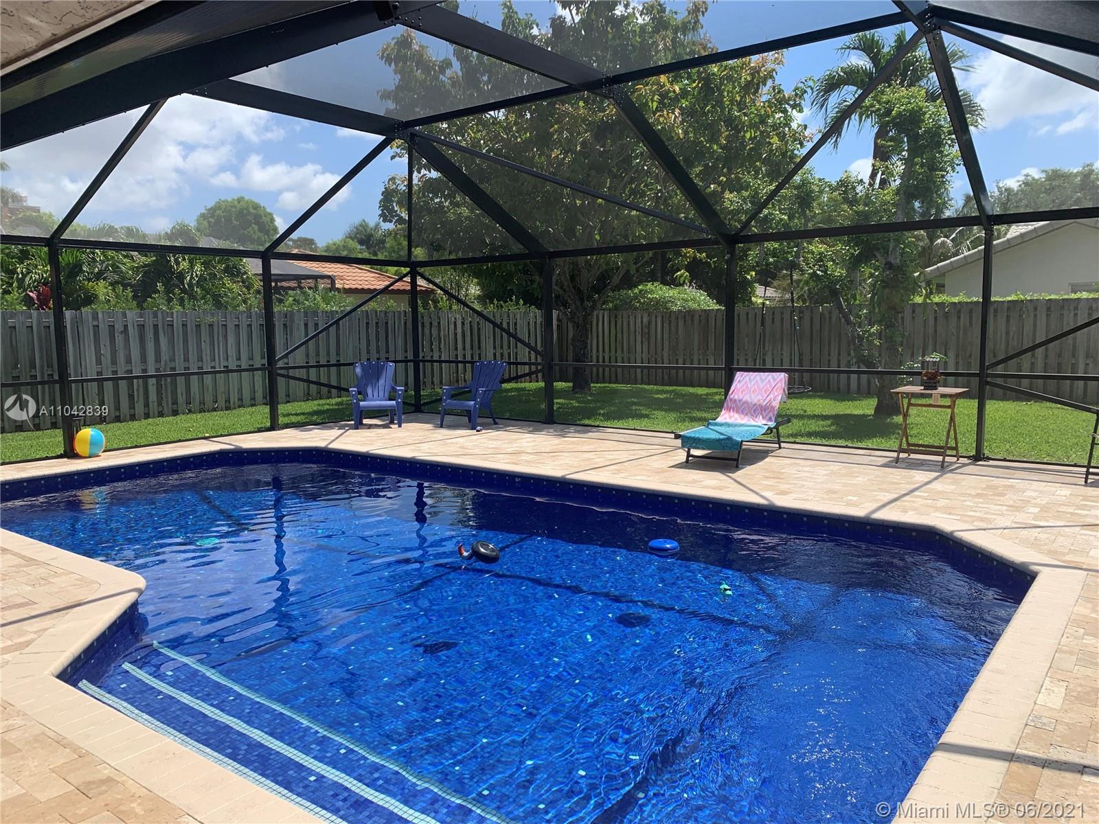 ALL NEW: impact windows and doors, screened patio and extended paved deck, resurfaced pool with glow in the dark glass tiles, heater and pump, Samsung stainless steel appliances, gutters, A/C coil, attic insulation, sprinkler pump motor. Tankless water heater 6yrs old, A/C 3 yrs, roof replaced in 2006. Great neighborhood on quiet street with privacy fence surrounding this huge yard perfect for entertaining! Location and size matter! Come see for yourself and fall in love.