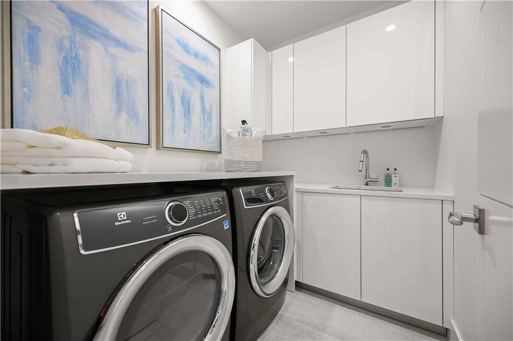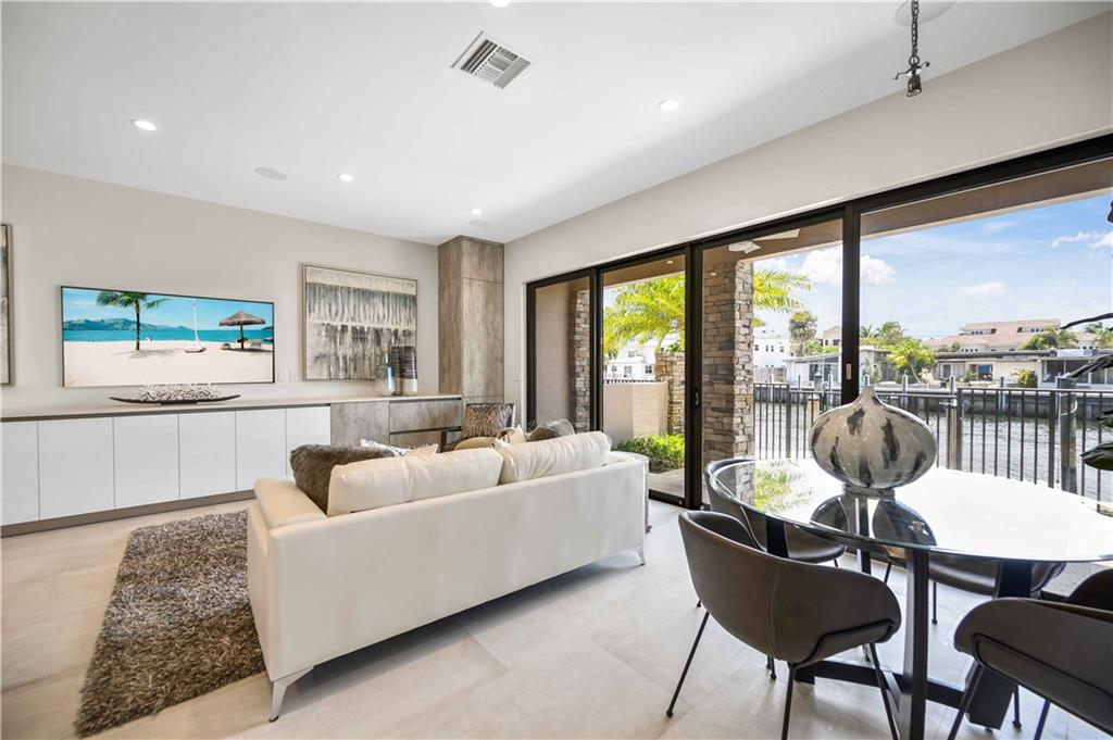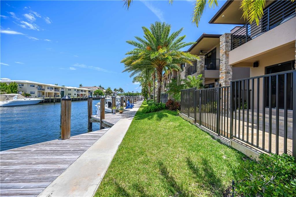 Easy to take care of yet independent NEW Construction waterfront 2-level townhome with private dock for 42' craft, elevator and 2-bay garage with glass door. Corner home with bright sun-lit interiors with high ceilings and walls of sliding doors and windows on three sides. Modern interior has two living areas, porcelain floors, custom cabinets and a wall length buffet, wet bar and media center. The kitchen features seating at both a breakfast bar and the center island. Also Wolf, Bosch and Sub Zero appliances. The second floor landing has a morning bar with sink and fridge. Each bedroom has a bath and generous closet. The Primary bedroom has private balcony and luxury spa bath. Smart home ready with speaker system. Pool ready with pilings already in place.
