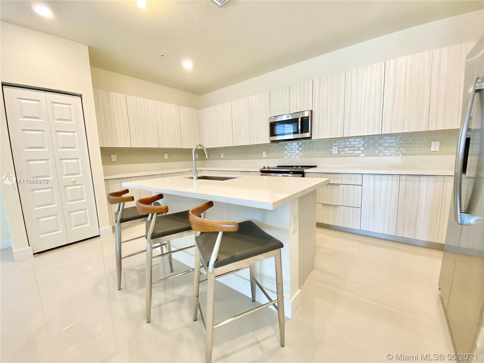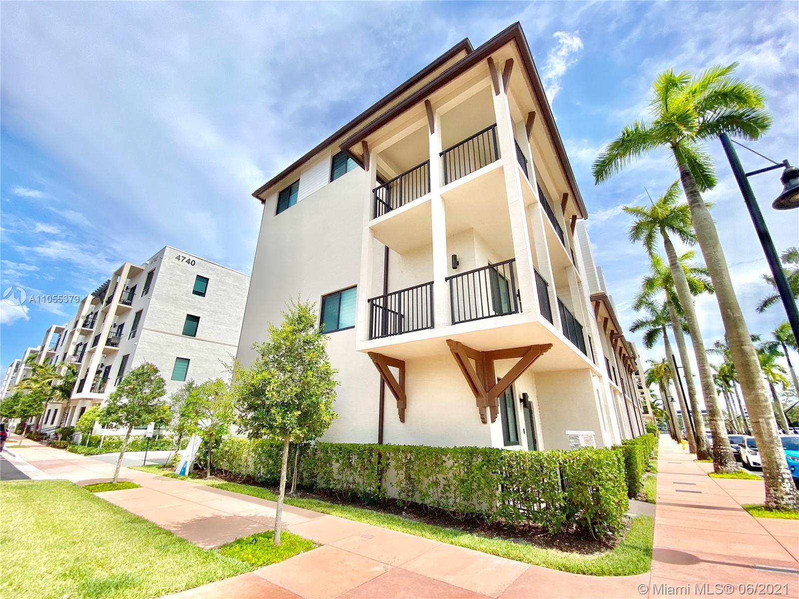 For sale, this stunning corner 4 story Townhome at URBANA Downtown Doral. This Townhome model LB, features 3 bedrooms, 3 baths, 2 powder rooms, a media room, Skyview terrace, with BBQ area, private elevator, 2-car garage, and much more. Enter through the spacious covered entry into the inviting foyer and reception lounge with adjacent powder room. On the opposite wall, a door leads to the 2-car garage, while on the west side of this space both a stairway and elevator provide access to the other floors. Second floor dining room and kitchen overlooking an expansive balcony. Third floor is occupied by the luxurious owner's suite, bedroom 2 and its private bathroom; and a laundry closet. Fourth story, entertainment area, Room 3, covered terrace with BBQ Area, and full bath. READY TO MOVE IN.