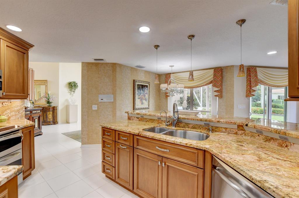 This home has it all. Roof replaced 2013, AC replaced 2018, hurricane shutters or impact glass on all windows installed 20/21. Beautiful expansive long lake views. Windows have 3M Sun shades to protect from FL sun. House is situated next to community pool great for FL living. Redone kitchen w/stainless appliances & granite tops. Washer & dryer new. Master bath redone w/frameless shower door, stone work and soaking tub. Custom cabinetry in kitchen and bath. White tile in living area custom designer carpeting on stairs and bedrooms. 2nd refrigerator in garage conveys. This pristine house is move in ready and offers volume ceilings and crown molding. Tropical landscaping surrounds this home. Costa Del Sol is a very well kept community. The exteriors of all homes have just been painted.