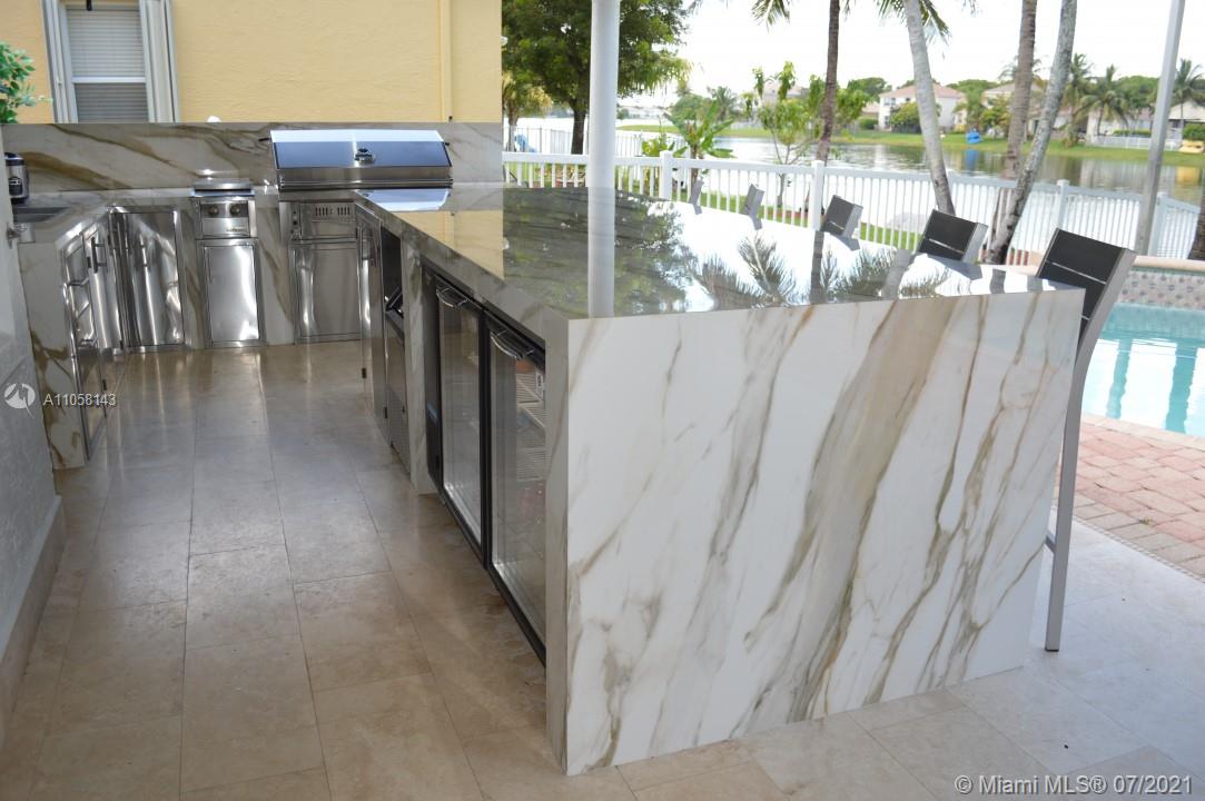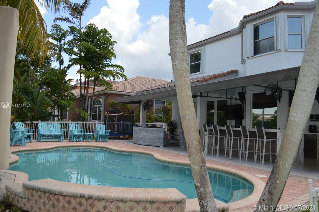 Gorgeously renovated lakefront home in one of the most sought-after resort-style living communities in Miramar. This property is in the subdivision of Ravello within Riviera Isles. The Property is 2860 square feet and has been renovated with utmost care. This beautiful 5-bedroom 2.5-bathroom home is fenced. It has heated salted pool. Spacious kitchen with built in banquette along bay window with all stainless-steel appliances. Brand new porcelain tile (24x48) floor downstairs. Brand new AC with 10 years warranty. Generator and custom electric installation to switch from FPL service to the generator in case of outages(hurricanes), accordion shutters through the house. Large steam-clean washer and dryer with custom cabinetry, new state of the art compact water heater