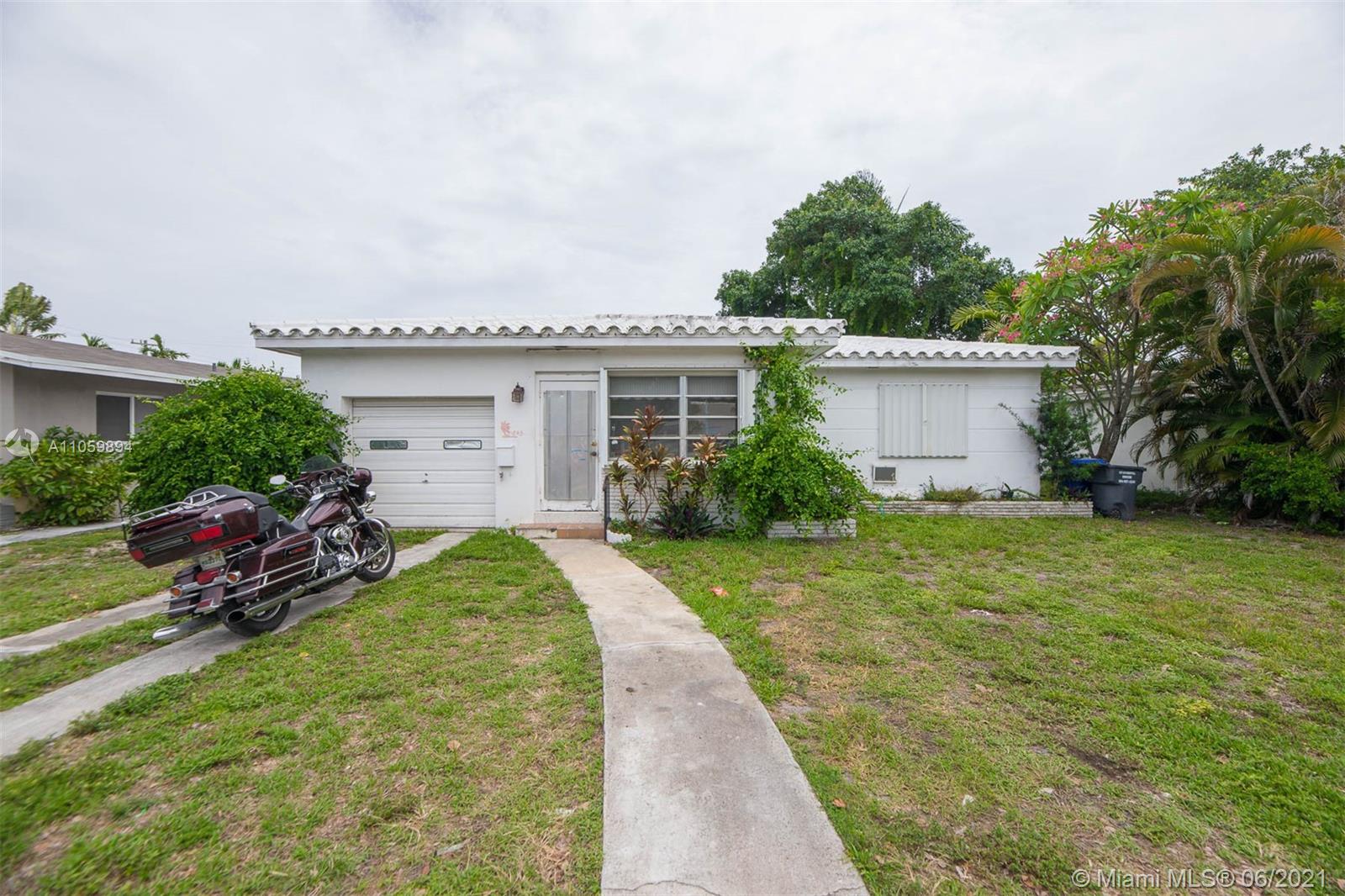 One story home in East Hollywood located just minutes away from the beach. This single family home features 2 bedrooms 1 bath with over 1000 square feet of living space. Additional features include terrazzo floors, hurricane shutters, utility room, newer septic tank, 1-car garage and private backyard. Property sits on an 8000 square foot lot offering plenty of parking space and room for a pool. Great location with easy access to major highways and a short drive to Hollywood Beach Boardwalk and Ft Lauderdale Airport. Lots of potential to make this your dream home or investment!