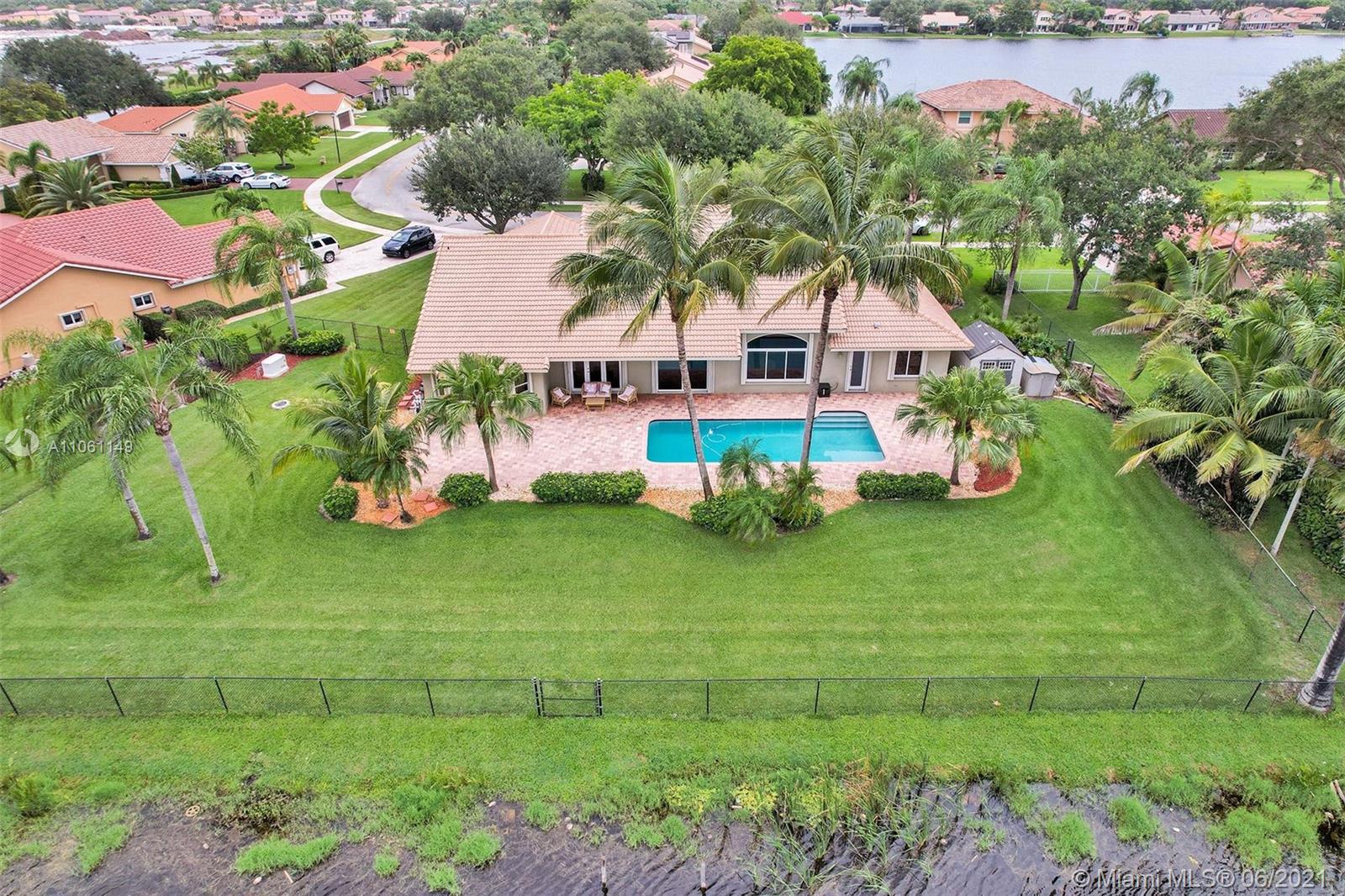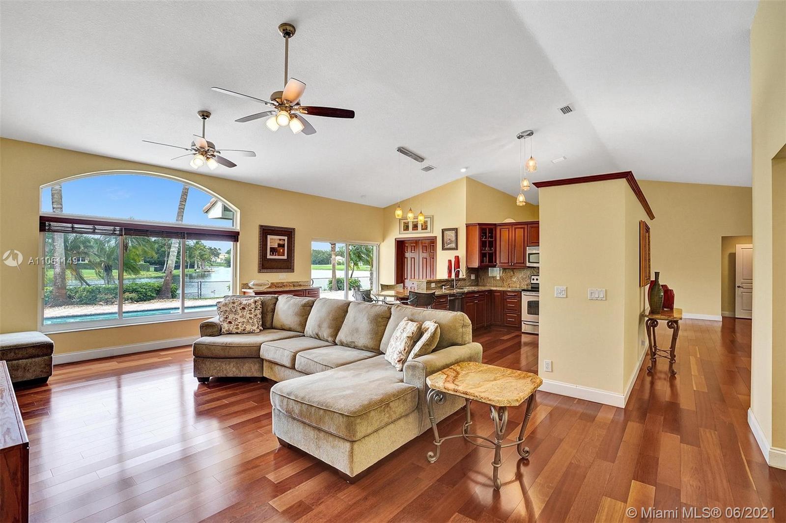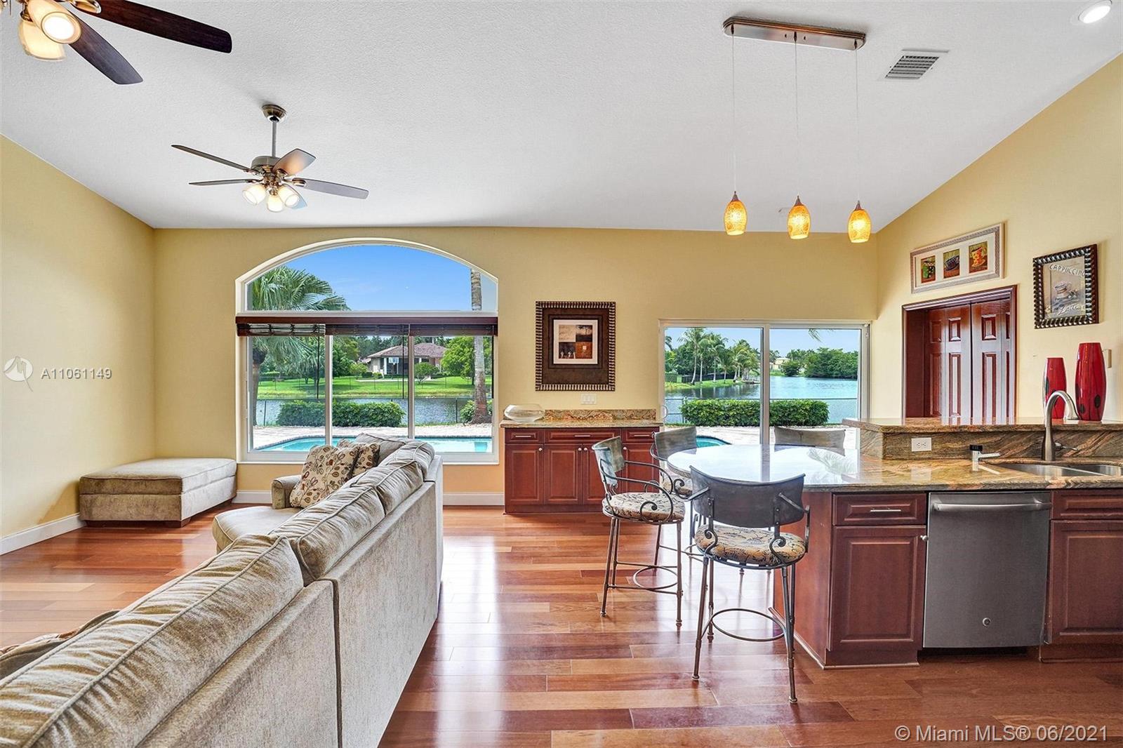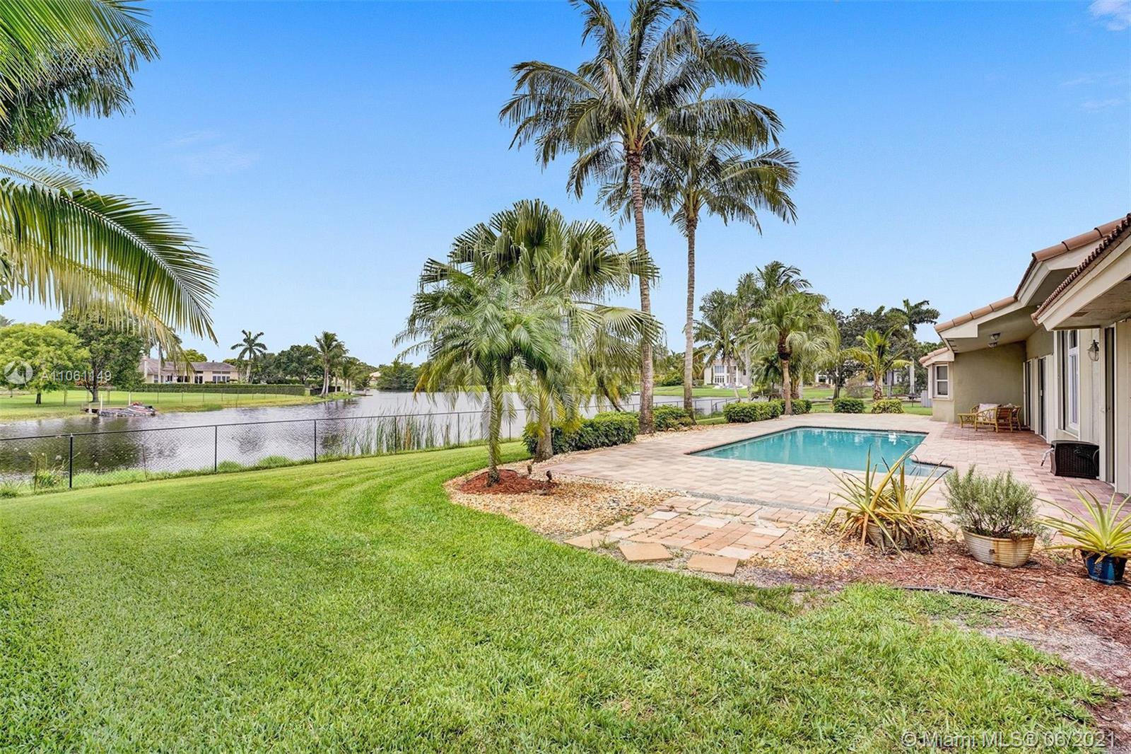 One-of-a-kind home on an oversized lakefront lot with huge water frontage perfectly placed in Ridgeview Lake Estates in Davie! Features include: 4 bedrooms, 3 full bathrooms, light and bright with stunning water views from all living areas, vaulted ceilings, open living room and dining room with beautiful engineered wood floors, large gourmet kitchen, spacious master bedroom suite with walk-in closets, resort-like pool and patio areas, private lush landscaping. Impact windows and doors, whole house generator, roof 2007, a/c 2019, In pristine condition and on a spectacular lake which you can use motorized boats, jet skis and all your water toys! Must see! Seller needs a 45 day post occupancy! Top schools!
