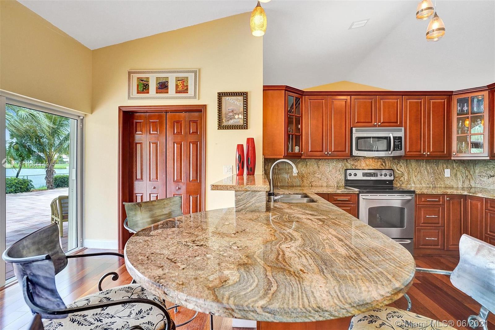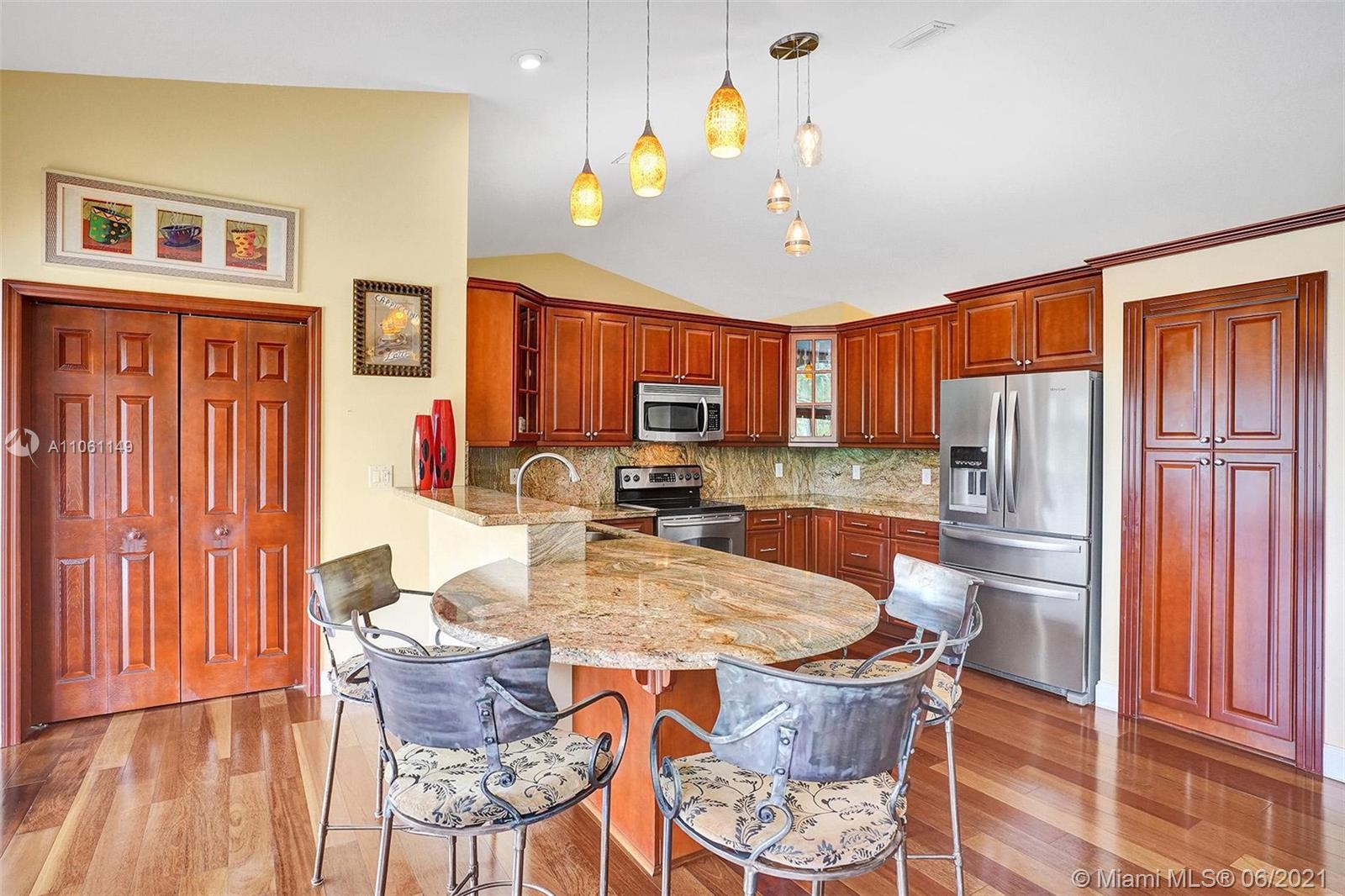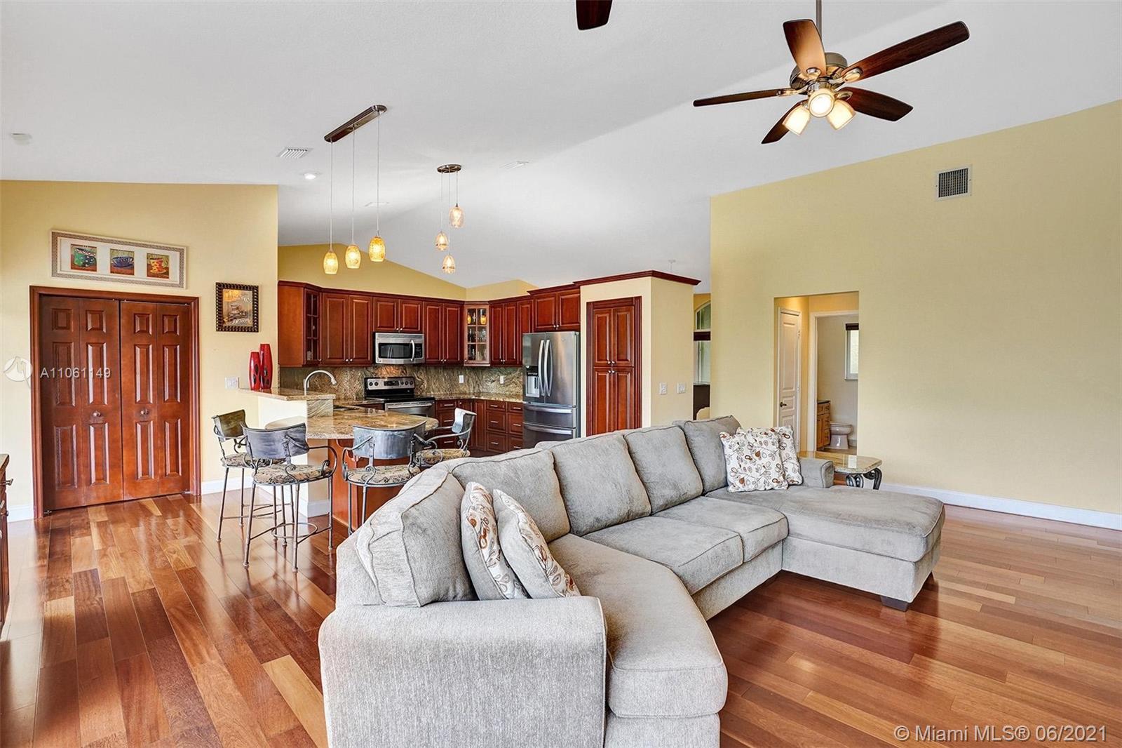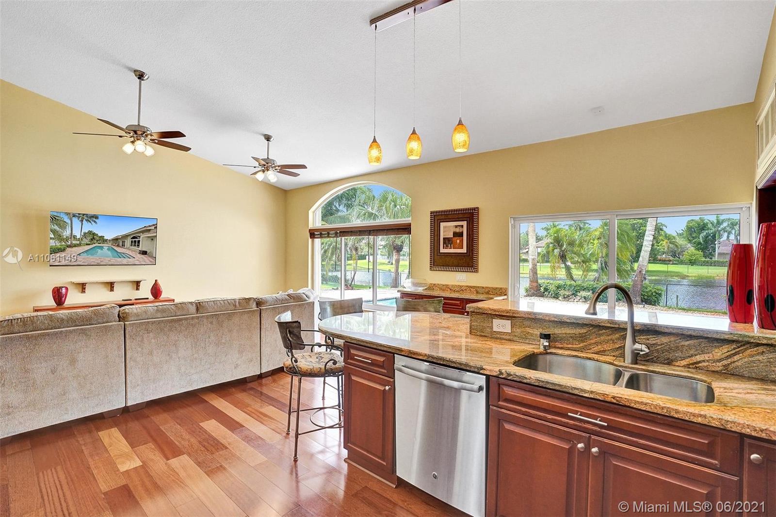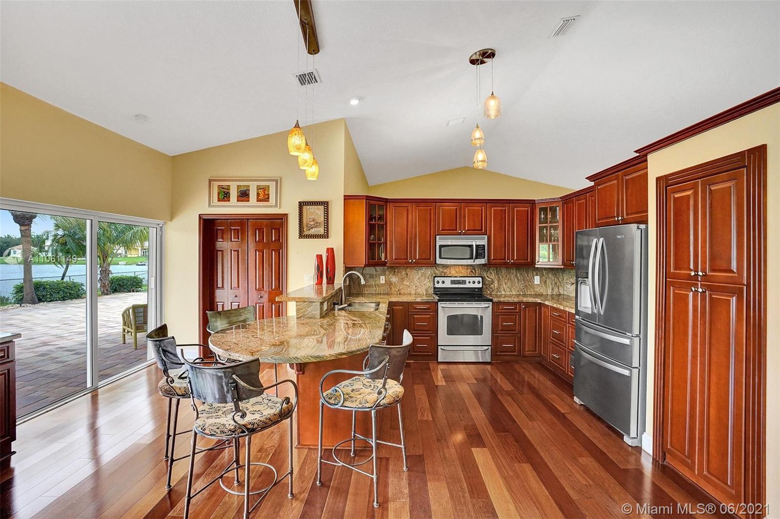 One-of-a-kind home on an oversized lakefront lot with huge water frontage perfectly placed in Ridgeview Lake Estates in Davie! Features include: 4 bedrooms, 3 full bathrooms, light and bright with stunning water views from all living areas, vaulted ceilings, open living room and dining room with beautiful engineered wood floors, large gourmet kitchen, spacious master bedroom suite with walk-in closets, resort-like pool and patio areas, private lush landscaping. Impact windows and doors, whole house generator, roof 2007, a/c 2019, In pristine condition and on a spectacular lake which you can use motorized boats, jet skis and all your water toys! Must see! Seller needs a 45 day post occupancy! Top schools!
