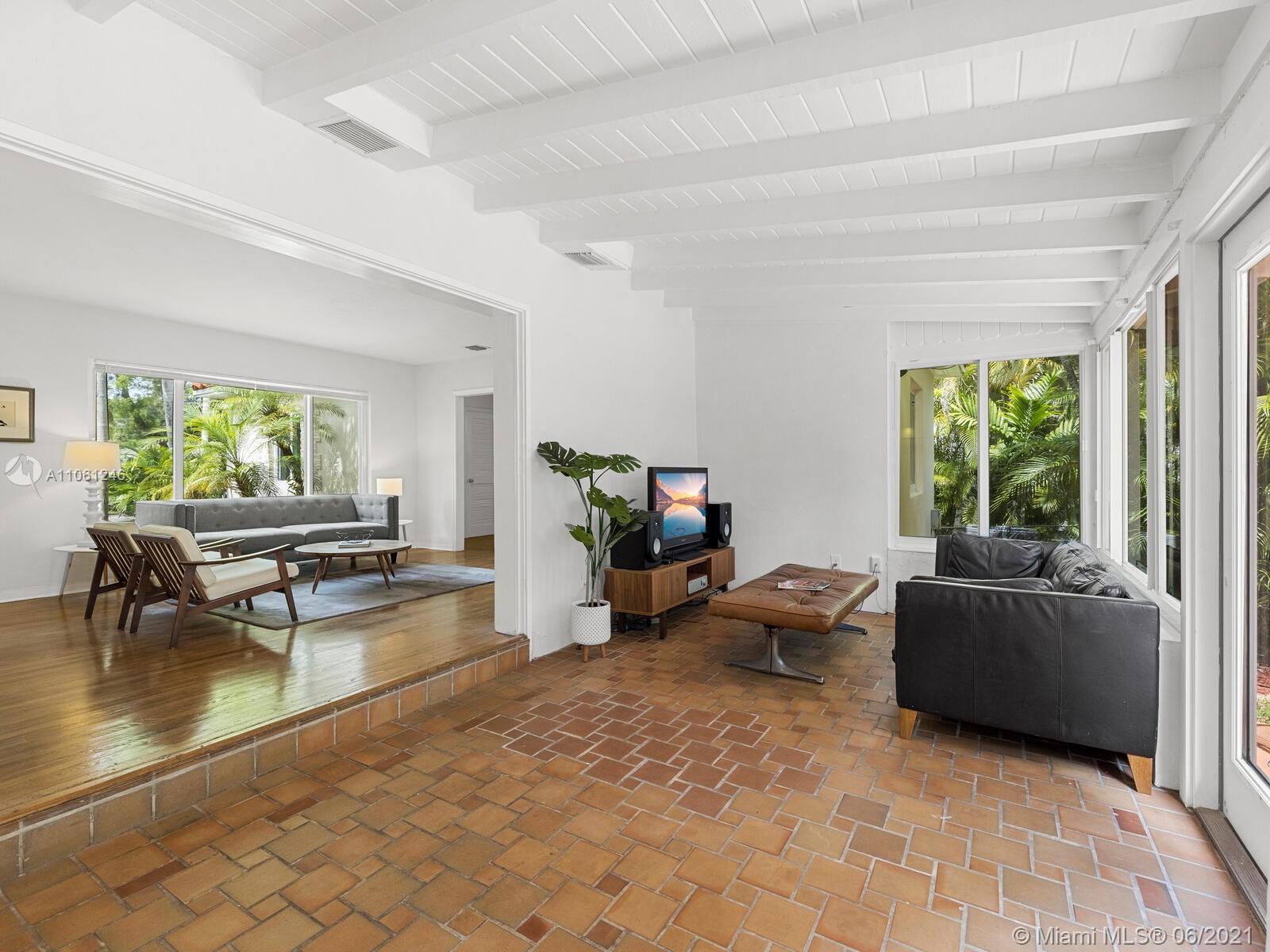 Welcome to Casa de la Luz! Come see the light in this nicely updated mid-century modern delight with Mediterranean Revival flair. Enjoy bright spacious living with welcoming fireplace that opens to a media room with wall-to-wall windows overlooking the rear gardens with lush trees and a towering Banyan—great space to relax, play or entertain. Everyone’s a chef in the ultra-sleek Arclinea Italian kitchen perfectly flowing to the large, radiant dining room. Split bedrooms for extra privacy, and a dreamy master suite retreat with vaulted ceilings, double vanity and huge walk-in shower. Great updates: impact windows and doors, new designer kitchen, modern baths, updated plumbing and electric. Located on a quiet cul-de-sac street just three blocks from downtown Shores shops and restaurants!