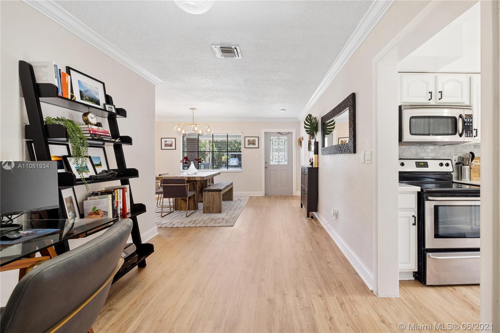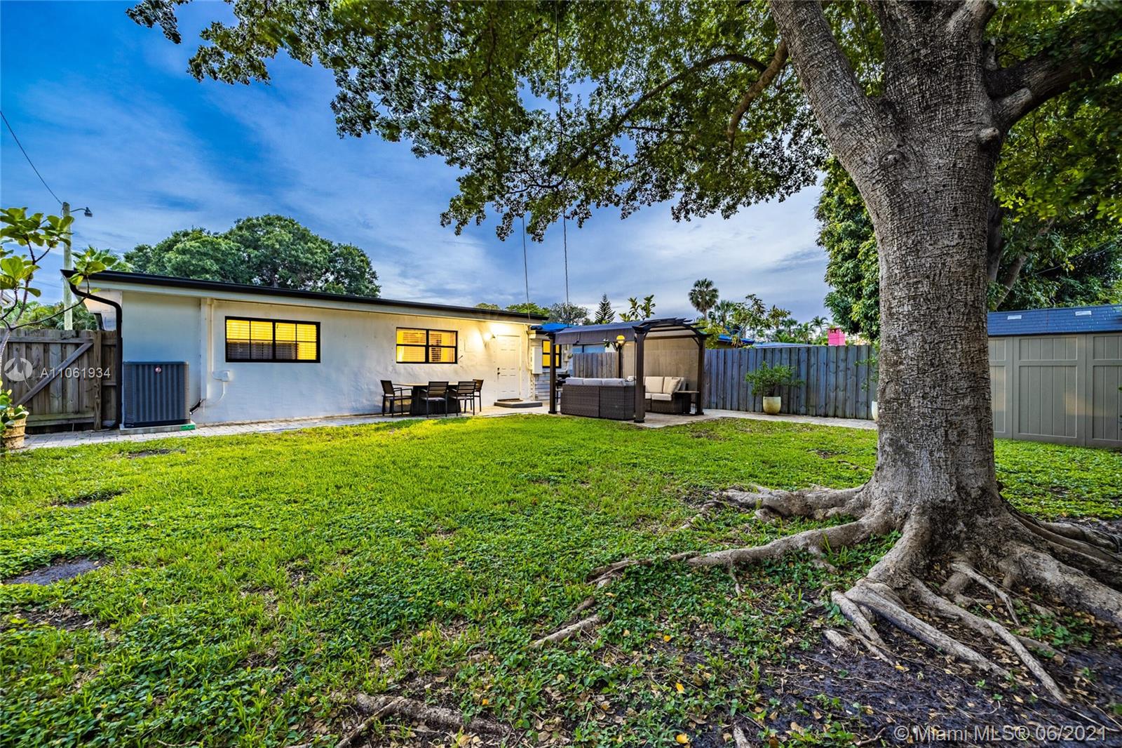 Welcome to the Mid-Mod Tropical Oasis! Updated modern carefree living, plus great flex space and expansive rear gardens with an Instagram-ready majestic black olive tree! So much room to relax, play or entertain. Enjoy the versatile floor plan, with dynamic open flow living, dining and great office space. Foodies will love the fresh updated kitchen with access to the rear gardens- a perfect spot to fire up the grill! Binge on your favorite movies in the expanded media room, also with outside access. Split bedrooms for extra privacy, including a spacious master suite retreat, and a den that can easily be converted to a fourth bedroom. Bonuses: new roof, impact windows-doors, and room for a pool. Your personal oasis on a quiet culdesac with easy access to restaurants, shops and the beach!