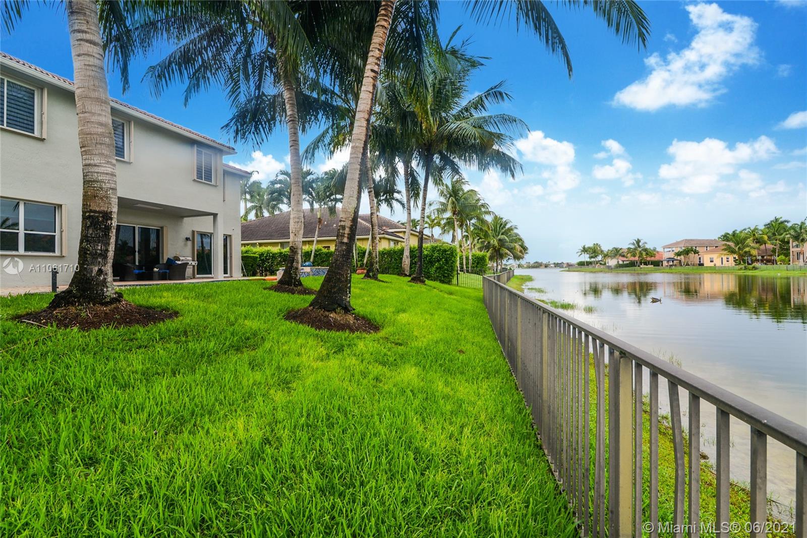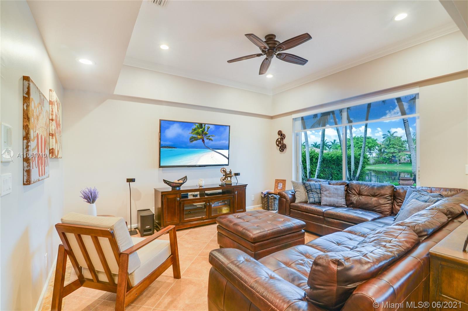 Beautiful Lakefront Home w/a breathtaking lake view. 5 Bedrooms, 4 Baths. Master bedroom has separate sitting room, 2 walk-in closets & oversized bathroom. California closets, Loft, Office/Den, TV/Theater Room, Fam. Room, Living Room & Dining Room, Foyer, 3 car garage, pool, jacuzzi, patio furnit, covered terrace & entry, sprinkler system, soaring volm ceilings, spiral staircase, porcelain tiles, new blinds, freshly painted. NEW kitchen w/ Quartz Waterfall countertops, stainless steel appliances, LG double oven range. New Maytag washer & dryer, smart outlets w/USB chargers, LED lights, 2019 high efficiency air conditioner, 2 units, smart thermostat, built out garage, hurricane shutters. 10,719 sqr ft of land. Great amenities & wonderful location, close to schools, shopping & restaurants.