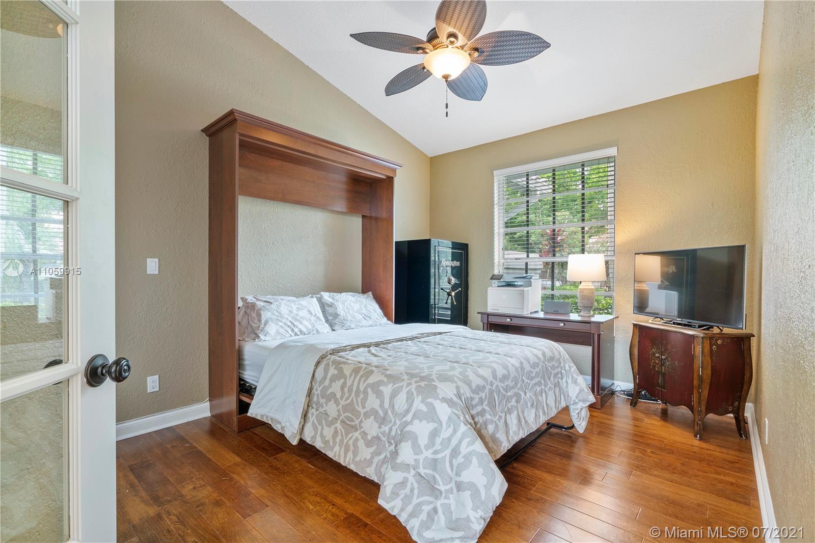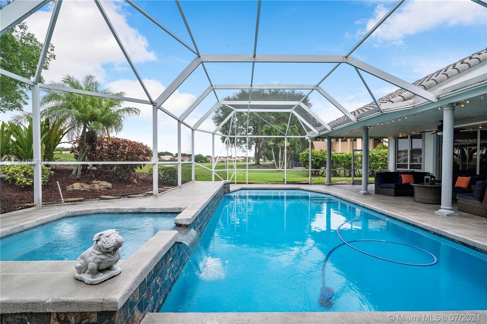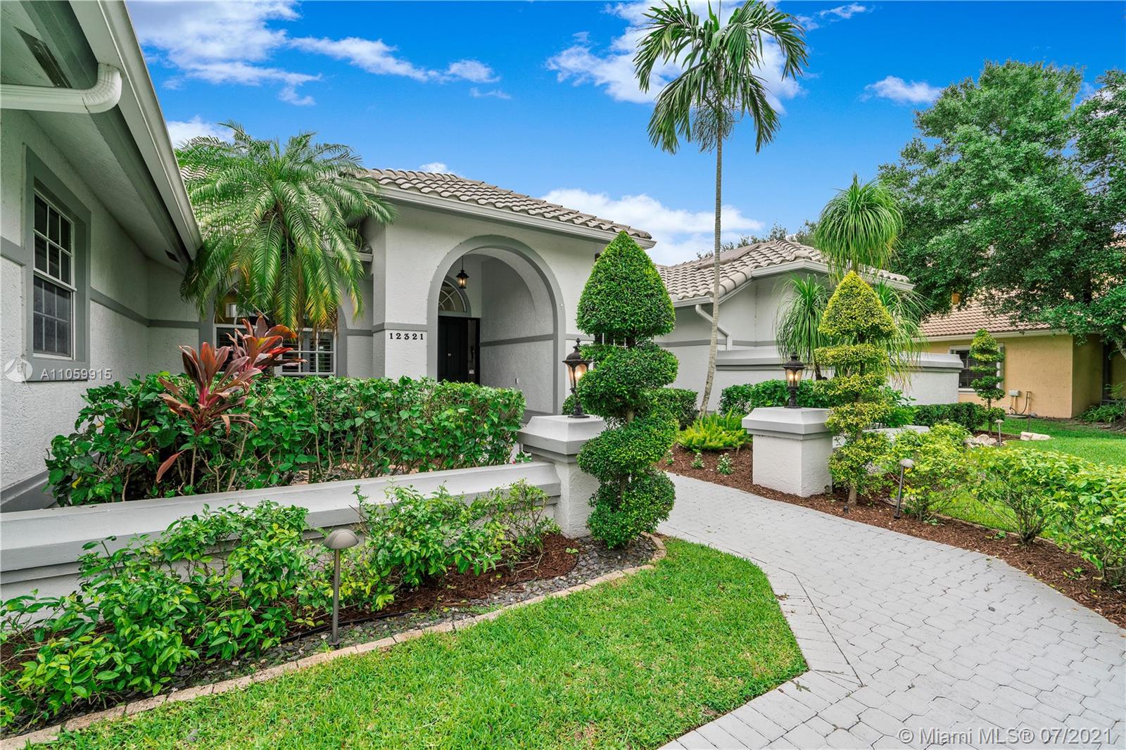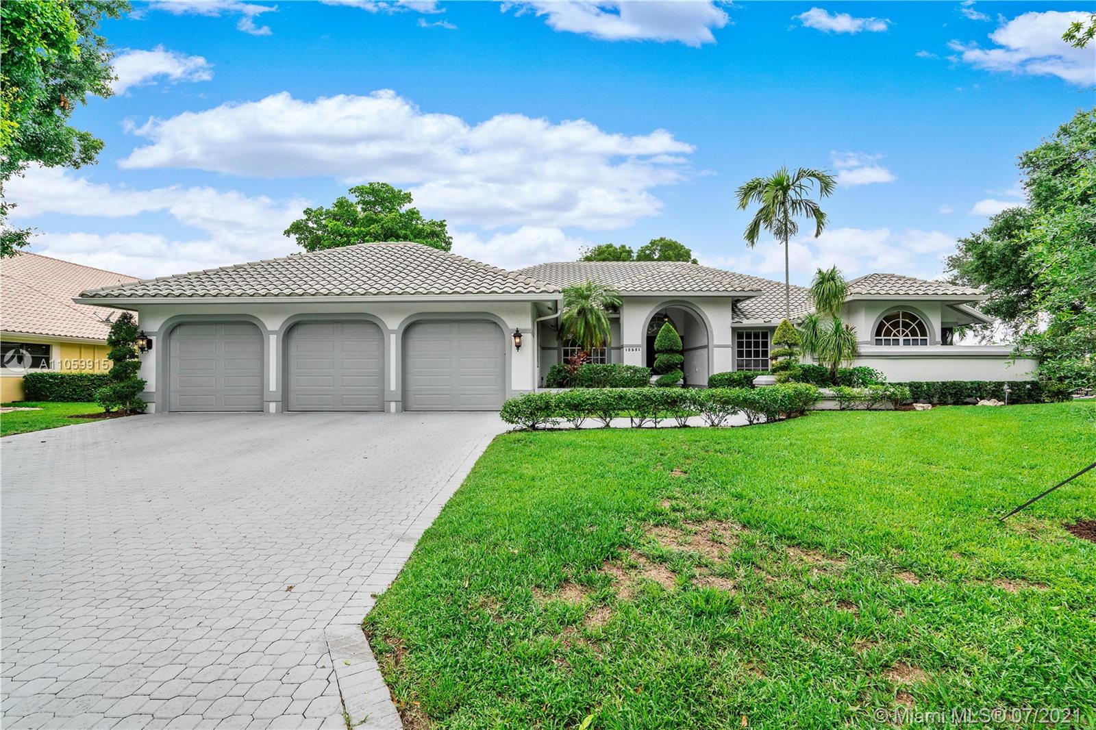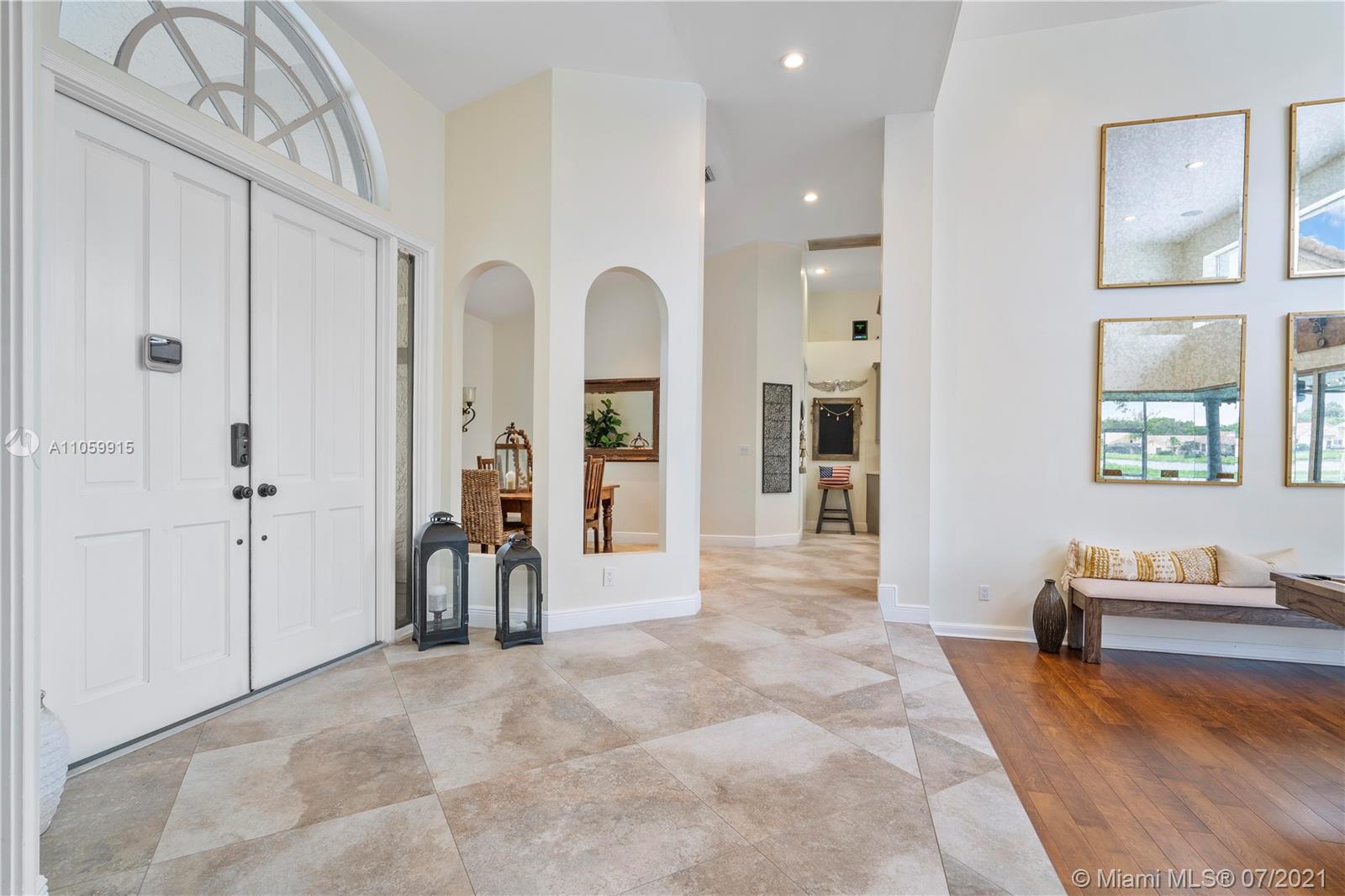 Beautiful 5-Bed, 4-Bath Pool Home W/ 3-Car Garage & Panoramic Views Of Golf 5th Hole & Lake Located In Prestigious Eagle Trace Coral Springs. 24 x 24" Tile Floors In Common Areas & Hardwood/Wood-Plank Tile In Bedrooms. Custom Upgraded Eat-In Kitchen W/Quartz Counters/Backsplash, Kitchen Aid SS Appliances, Wood Cabinets, Pantry W/Pull-Outs, & Recessed Lighting. Formal Dining Room, Large Open Living Room, & Mudroom W/Samsung Washer/Dryer & Farmhouse Sink. Hall Cabana Bath W/Frameless Shower. 4 Guest Bedrooms, 1 EnSuite W/Quartz Counters, Wood Vanity & Shower/Tub. French Doors Open To Master Suite W/Sitting Area & Bath W/Dual Head Shower, Jacuzzi Tub, Custom Built-In Closets, & Bay Window. Resort Style Yard W/Saline Heated Pool/Spa, Lush Landscaping W/Lighting. 2018/2019 3 Zone AC, Must See!
