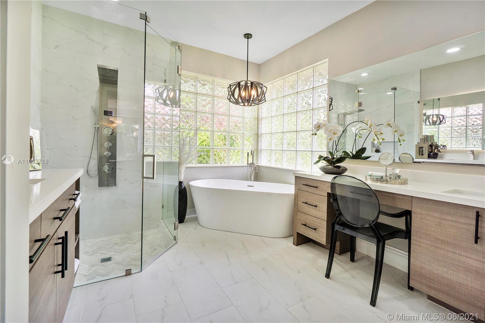 Welcome home to the premier gated community of Meadow Run! This beautiful 5/3 with a den features new floors, contemporary eat in kitchen, LED lighting, quartz countertops throughout, crown molding, remote control fans and designer chandeliers. THe master bathroom boasts elegance with its free standing tub, LED state of the art shower system and quartz countertops. Enjoy your morning coffee in your tropical oasis or a cocktail at the end of the day while relaxing in your waterfall jacuzzi. 2 new a/c units, Electrolux washing machine/dryer, a true three car garage with a closet in it and a fabulous dressing room that is perfect to display his/hers shoes, handbags and clothing. All lighting, fans and window treatments stay. $950 capital contribution to Meadow Run due at closing.