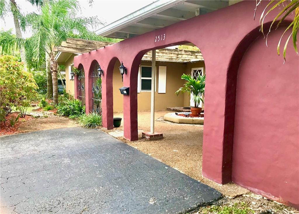 Spacious ranch style home in the waterfront neighborhood of Lauderdale Isles. Community boat ramp just around the corner. Open floorplan with vaulted beam ceilings throughout. Convenient access to the park right from your very own backyard. Charming Florida room with wood burning fireplace. Unique kitchen layout has atrium dining area. Completely fenced and private backyard. Relax out back on your deck and access the park from the gate on your fence. Enter the home through the front arches and wrought iron fence adorning the courtyard and covered parking. Dead end street with very little traffic. No HOA. A great place to call home.