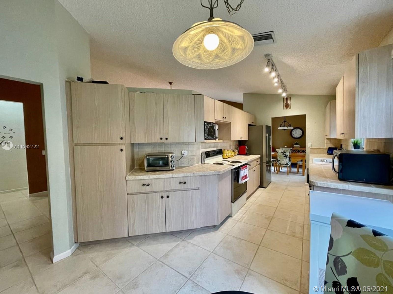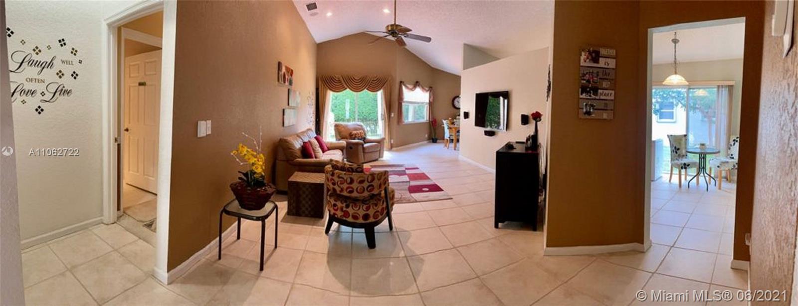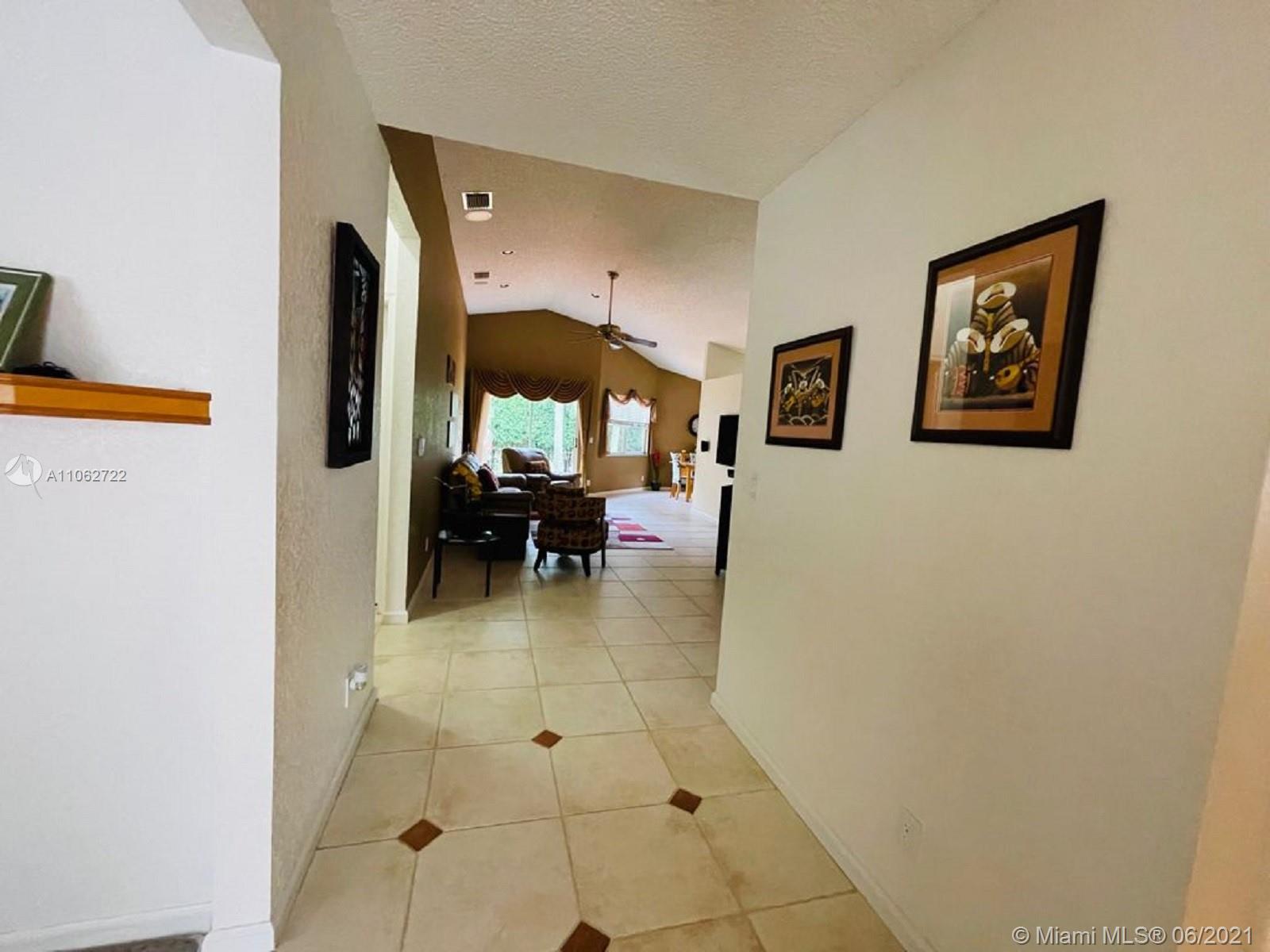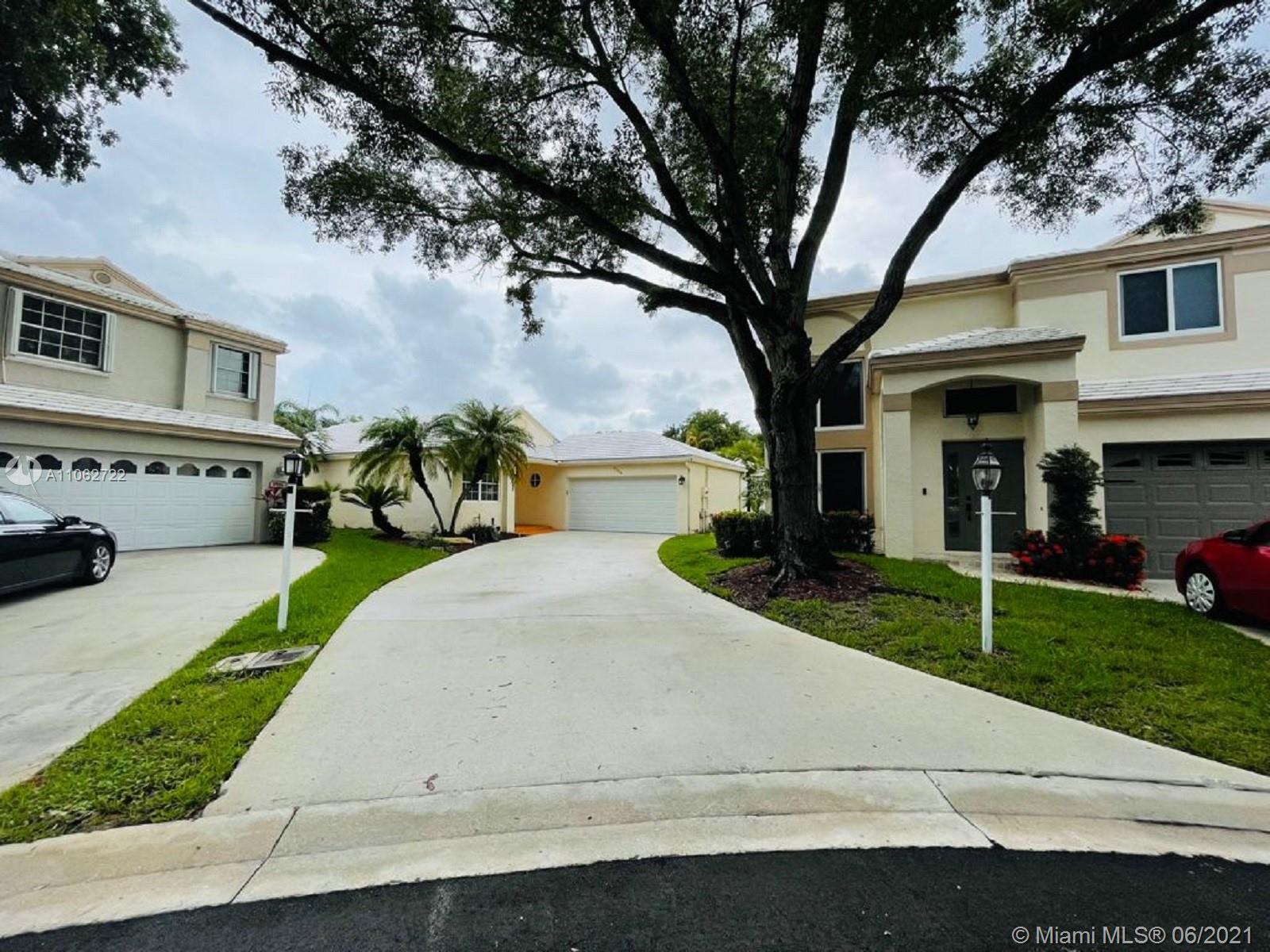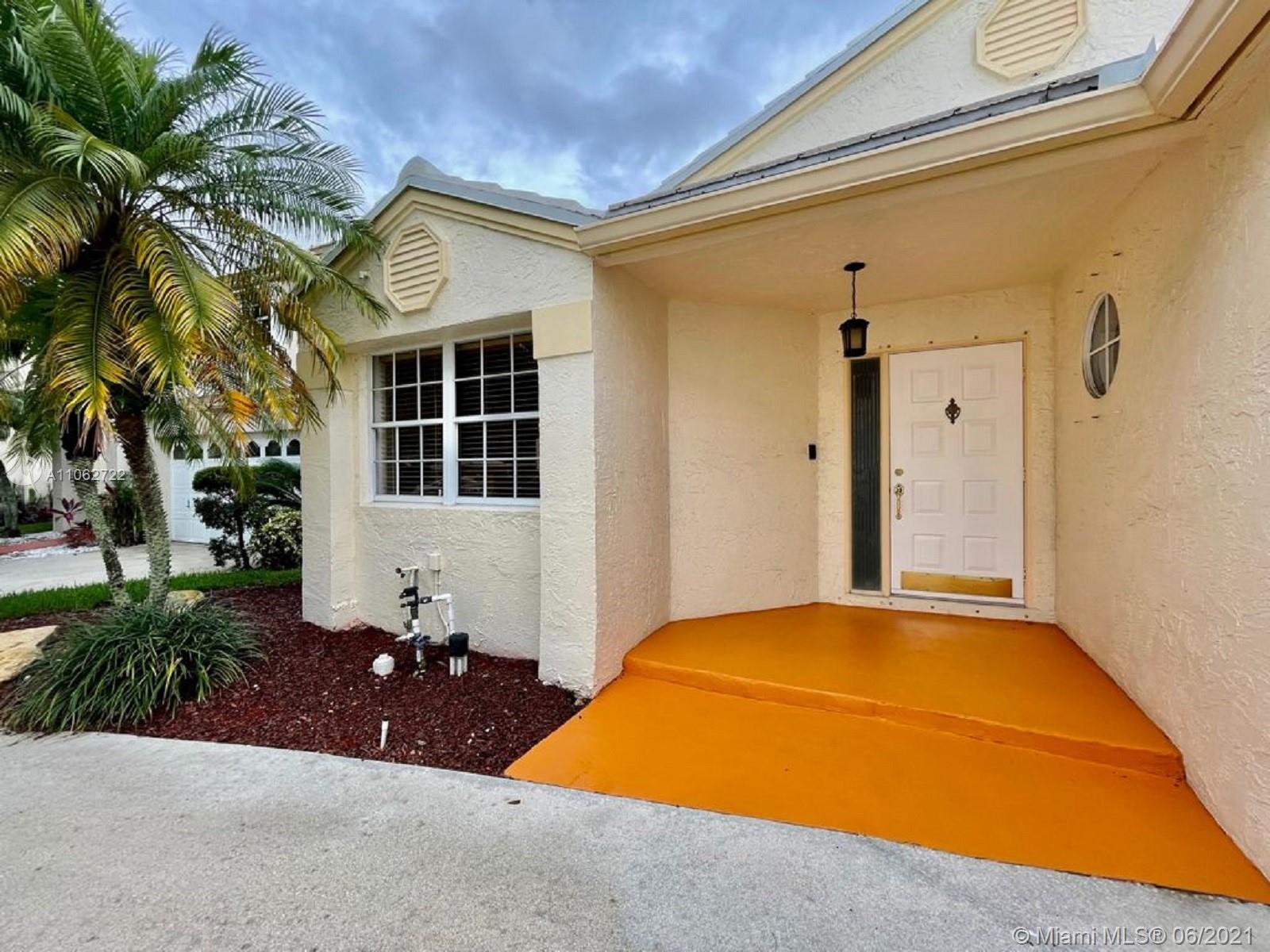 Great opportunity to starter home for a family to own in a very desirable Central Park gated community at Jacaranda Pointe, very well maintained 3 bedrooms*2 bathrooms plus 2 car garage home. Spacious kitchen with a breakfast area, title flooring in all living areas, carpet in bedrooms only. Perfect starter home for a family, laundry room with front loading washer and dryer, master suite has large walk in closet. Very low monthly HOA fee includes Lawn care, sprinkler repairs, gate and pool maintenance. Centrally located, easy aces to major highways 595, I-95, 75, sawgrass express way, close to Broward mall, sawgrass Mills Mall, BB&T Center, NEW ROOF (2018)*A/C New. SEE BROKER REMARKS.