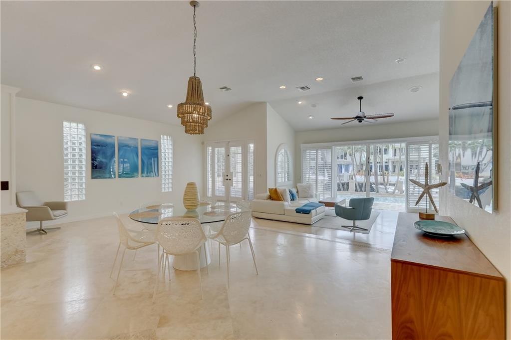 Newly Priced! Amazing opportunity to live on the waterfront in prestigious Idlewyld! This 4 bed/3 bath pool home features an open concept w/ vaulted ceilings & upgrades galore. New roof(2020) including impact windows skylights (shutters in rear), Remodeled kitchen (2020)w/ gas cooking, Viking appliances, Quartz tops, double dishwasher, Built-in bar off the kitchen. Bathrooms well appointed w/ marble countertops, closets throughout. Marble & wood flooring, New Washer & Dryer(2020), plantation shutters . Exterior offers resort style amenities. Salt Water pool, new pool heater(2020), new travertine marble pavers reset on driveway & pool deck (2020), New dock(2018), 50 amp power, tankless gas hot water, Gas lanterns front & back, SWAT mosquito misting system(2020) Home offered fully furnished!