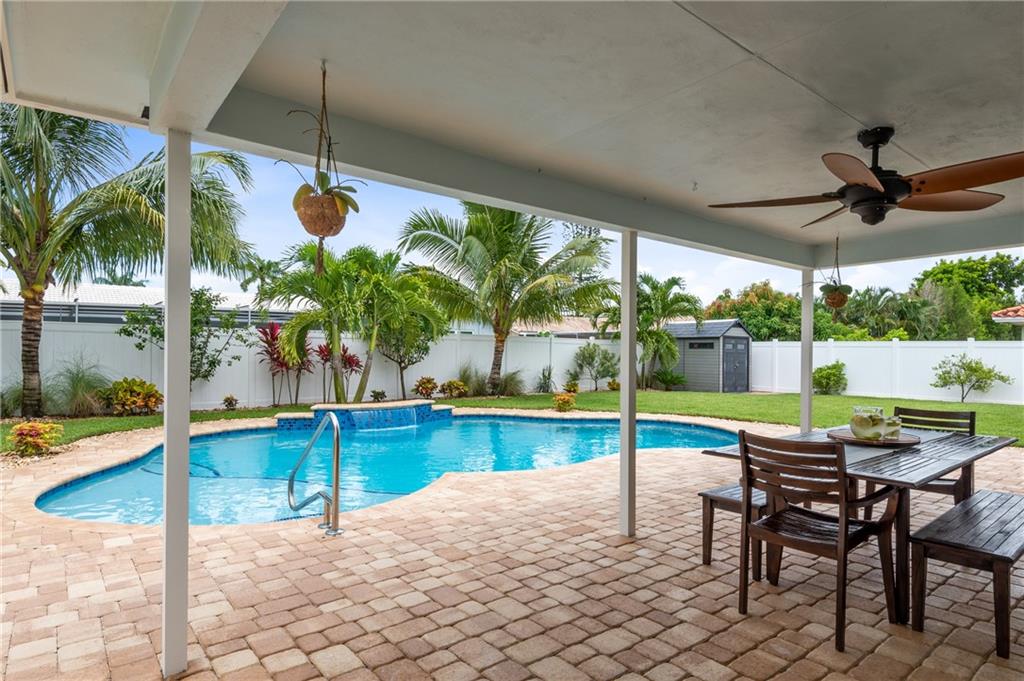 Beautifully remodeled home w/an amazing pool & enormous backyard in one of Boca's most desirable school districts, non-HOA communities! Extra large 2/2 + office space, walk-in closets & plenty of room to grow. 2-car garage, large driveway & room to park a boat/trailer/RV. This home is not only completely remodeled on the inside, but it has undergone a $50,000 backyard makeover w/in the last 3 yrs, including a free forming, salt water, heated pool w/an extra large/deep sunshelf, paved/covered patio, new landscaping/lighting, white vinyl fence, storage shed, security cameras around the perimeter and much more. The inside is just as beautiful & move-in ready with remodeled bathrooms, kitchen, flooring, indoor laundry, tankless water heater, garage storage system, and much more. Sold "As Is".