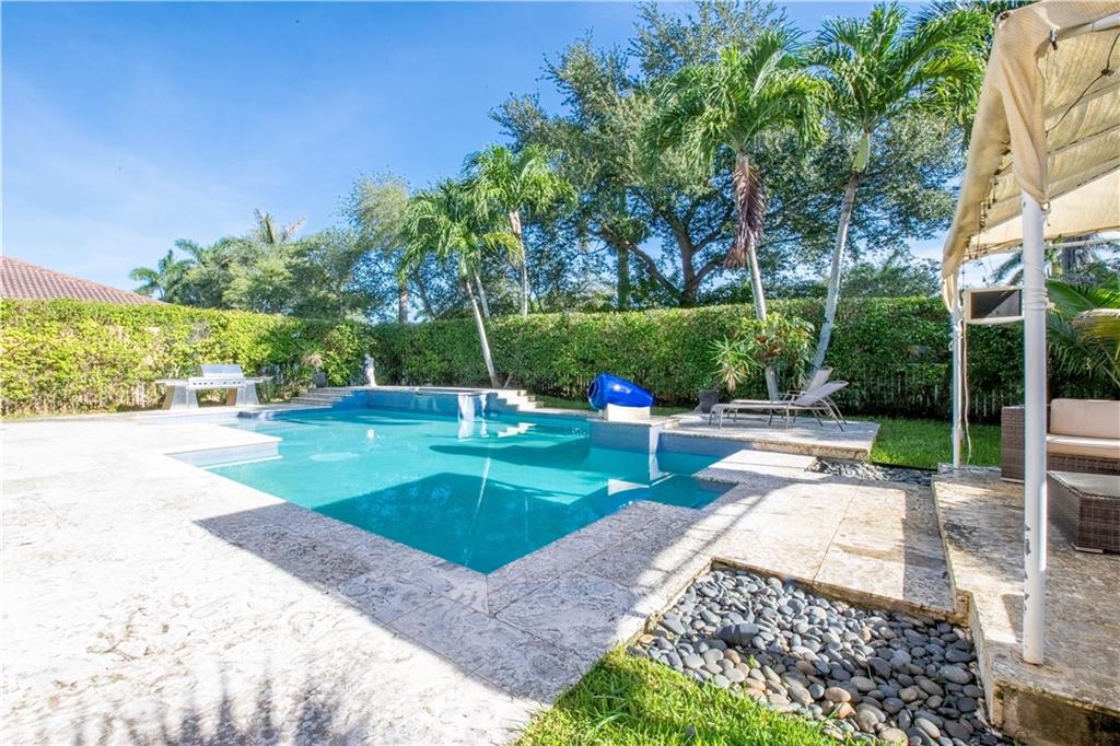 SPECTACULAR HOME WITH RELAXING PATIO AREA WITH TRAVERTINE FLOORS, CUSTOM BUILT POOL AND SPA, VIKING BUILT-IN BBQ GREAT FOR ENTERTAINMENT. UPGRADED KITCHEN WITH SS APPLIANCES, WOOD CABINETS AND KITCHEN ISLAND. SPACIOUS MASTER BEDROOM WITH SEATING AREA AND BALCONY, HIS AND HERS BATHROOM. TILE AND WOOD FLOORS THROUGHOUT THE ENTIRE HOUSE, ACCORDION HURRICANE SHUTTERS.