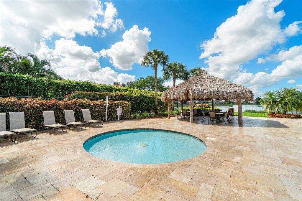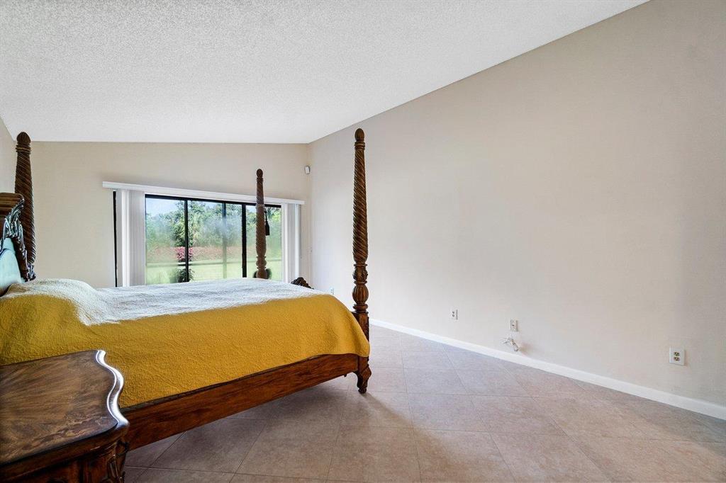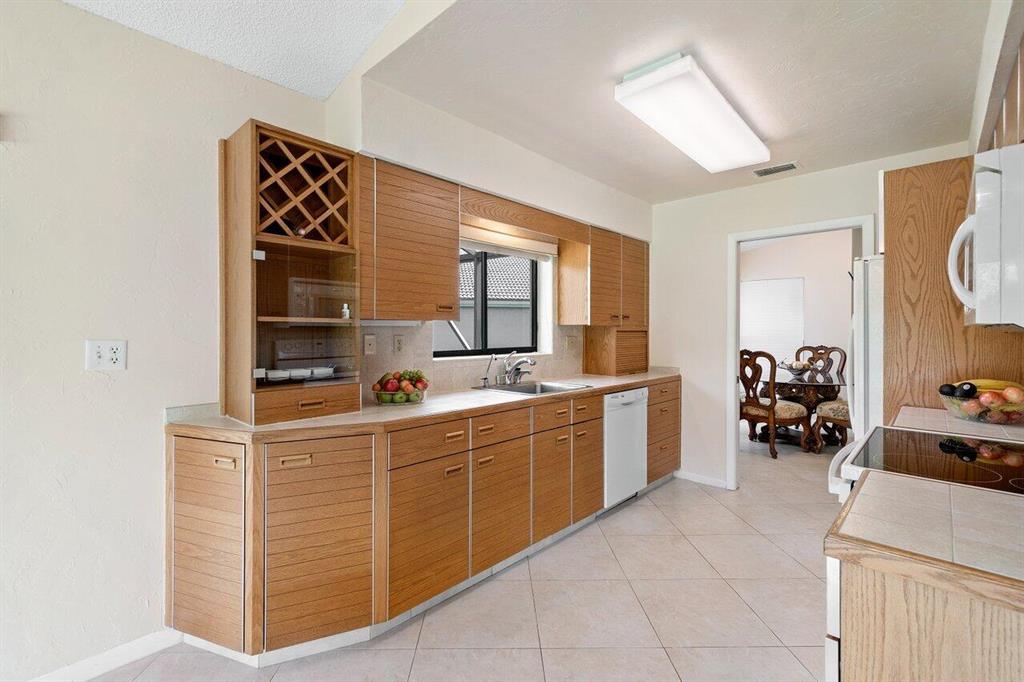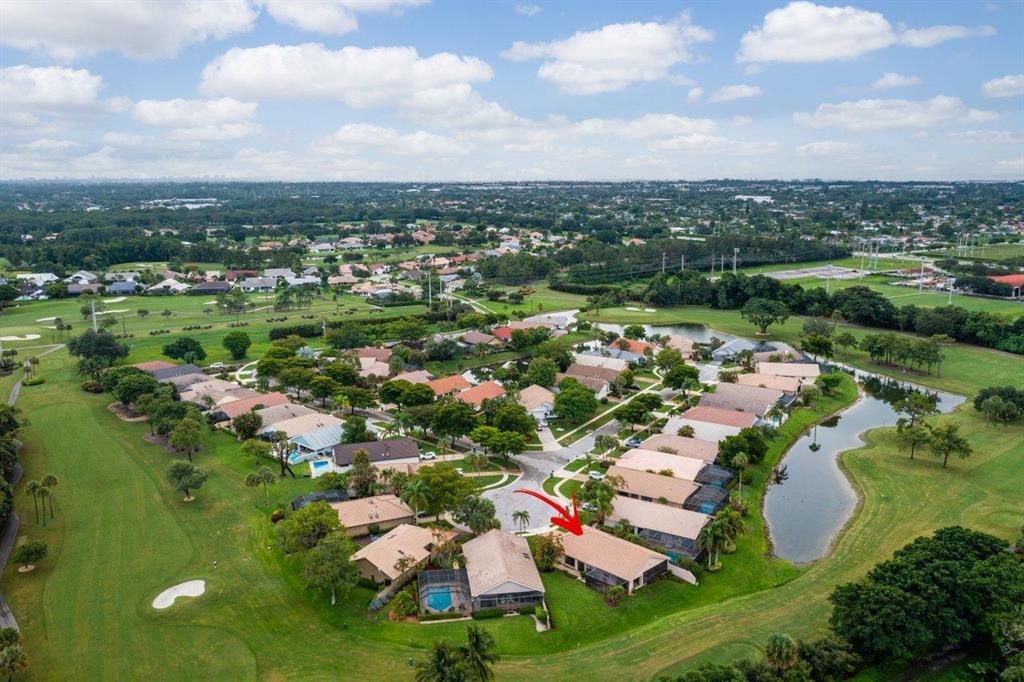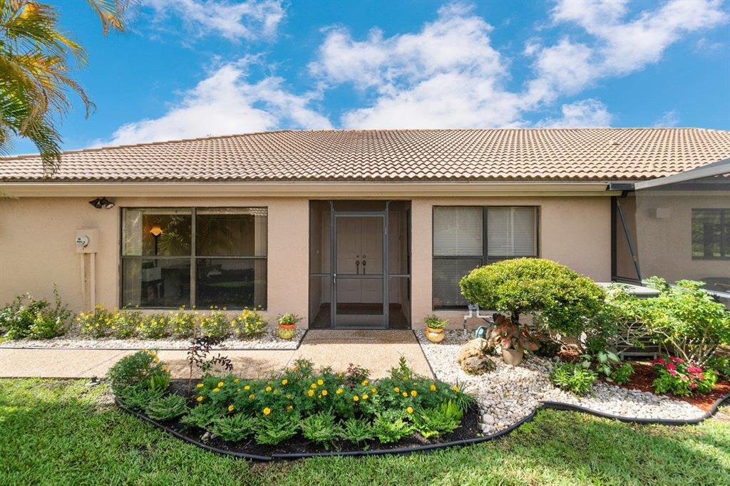 This home has fantastic natural light, vaulted ceilings, and is super spacious with a huge great room overlooking a large green space of the 5th hole on the golf course. It has a large lot on a quite cul de sac w/ 3 bedrooms, 2 baths, all tile throughout, 1 private screened in covered patio, and another open screened in patio both w/ beautiful golf course views. The roof is 2006, A/C & water heater are 2017, & the 2 car garage has been converted to a 1.5 but could be converted back. Boca Woods is a 24 hour manned gated community and offers two 18 hole golf courses, driving range, tennis & fitness center, pool, pickle ball, dining, & much more. It has a Mandatory Membership of $65,000 and $30,000 refundable when you sell, dues $16,215 +tax/yr - minimum in dining room $1,000 +tax/yr.
