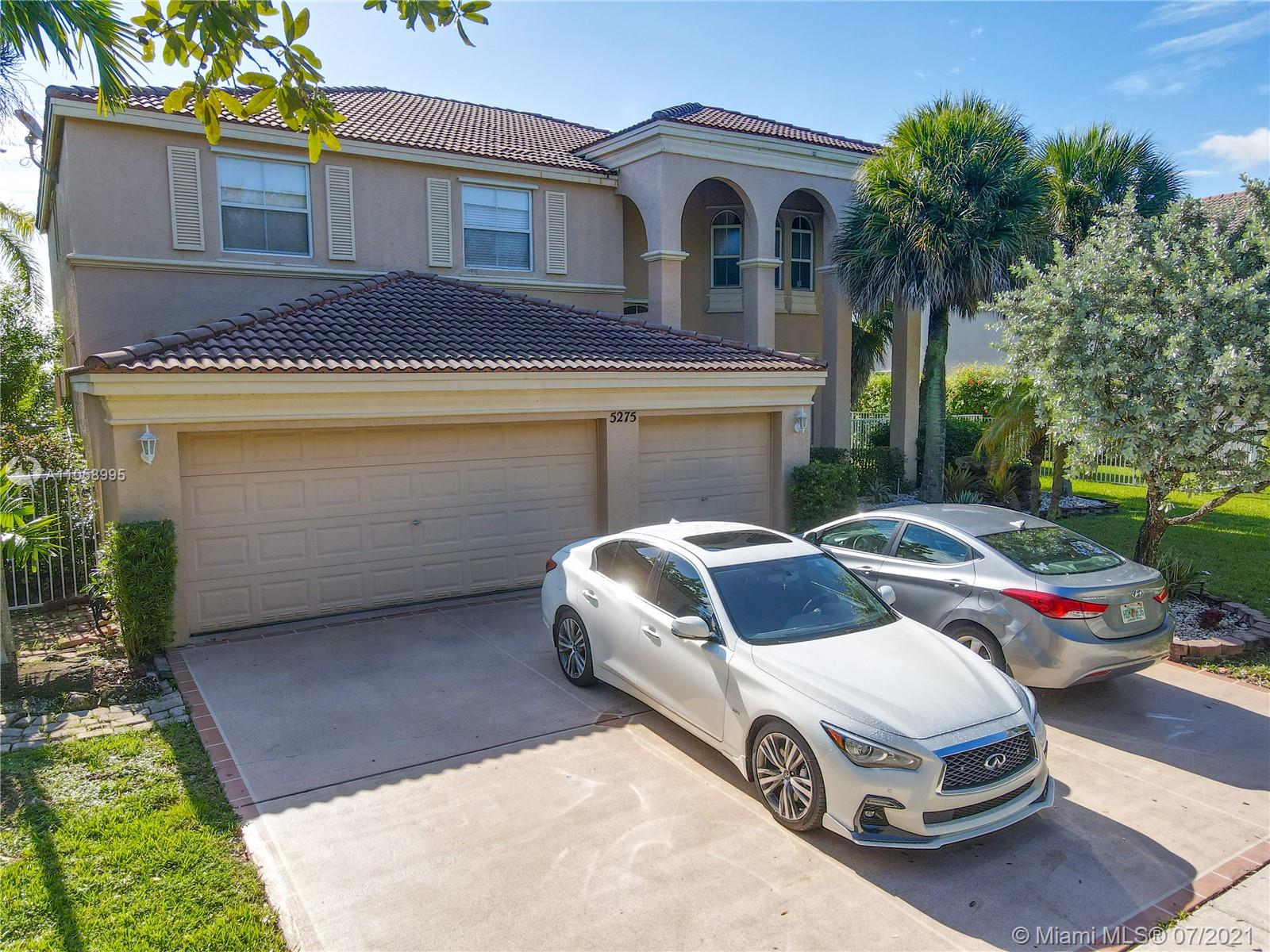 Fabulous, elegant home in the sought, resort like community in Riviera Isles, at Venezia, West Miramar. 5/3 with a three car garage, the area of the house including the garages is 4,529. It is the beautiful Sienna model with all large bedrooms. One bedroom on the first floor and four bedrooms on the second floor. Huge living room, dining room, and family room with a majestic kitchen with large pantry. Two air conditions, one for the second floor and one for the first. It possesses a large back yard that leads to a 250 acre lake with wave-like sounds like the ocean. Breathtaking lake views from most windows and French doors. Resort club house with much entertainment, and inviting huge, lagoon, pool. Living at Riviera Isles is like being on a permanent vacation. Excellent Community!