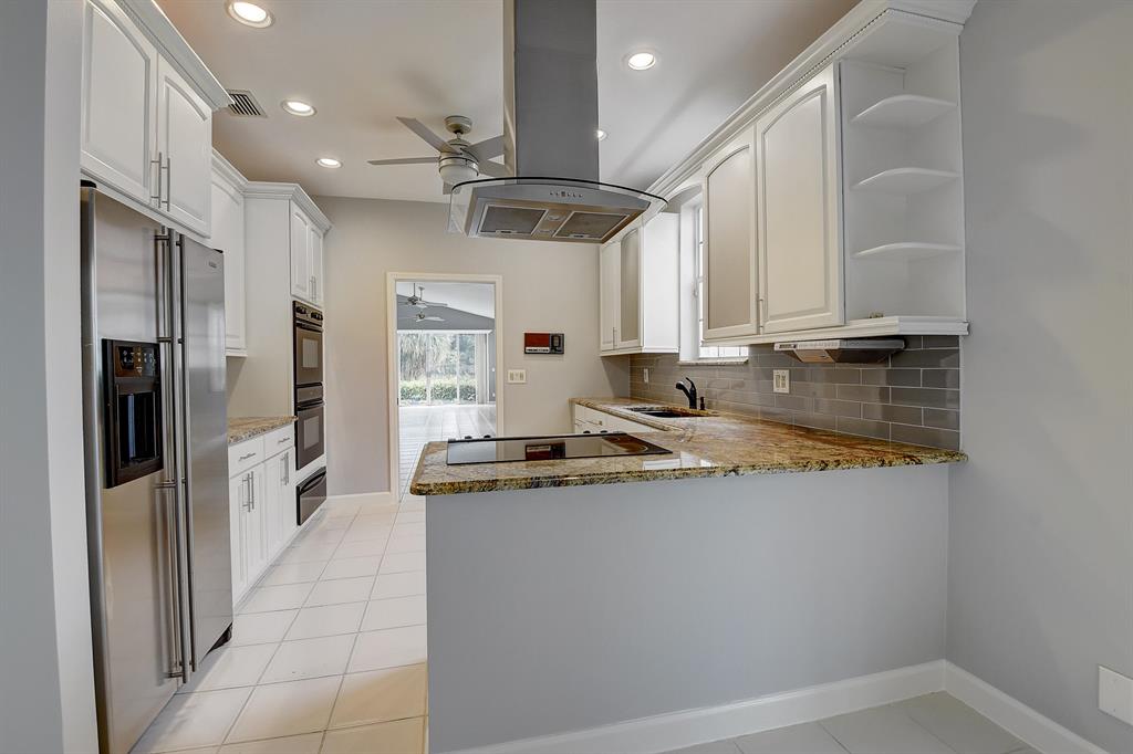 FRESHLY RENOVATED East Boca Raton's finest 3BR + 2BA Single Family Home with a 2 car garage. The homes living room/ dining room is massive with ivory tile floors and 8-foot sliders which open to the patio and in-ground spa. The room is showered in natural sunlight. All window-sills are either granite or marble. The roof was replaced in 2005. Kitchen is fully custom and freshly remodeled with cabinets and pull-out drawers, and includes 1.5'' ''yellow-river'' granite countertops, with a black, cast-iron sink. The double ovens are Bosch, one with convection function. Also included is a convenient microwave drawer with electric cooktop, topped by an Italian made hood. The dishwasher ''drawers'' are Fischer-Paykel and there is also a large warming drawer.