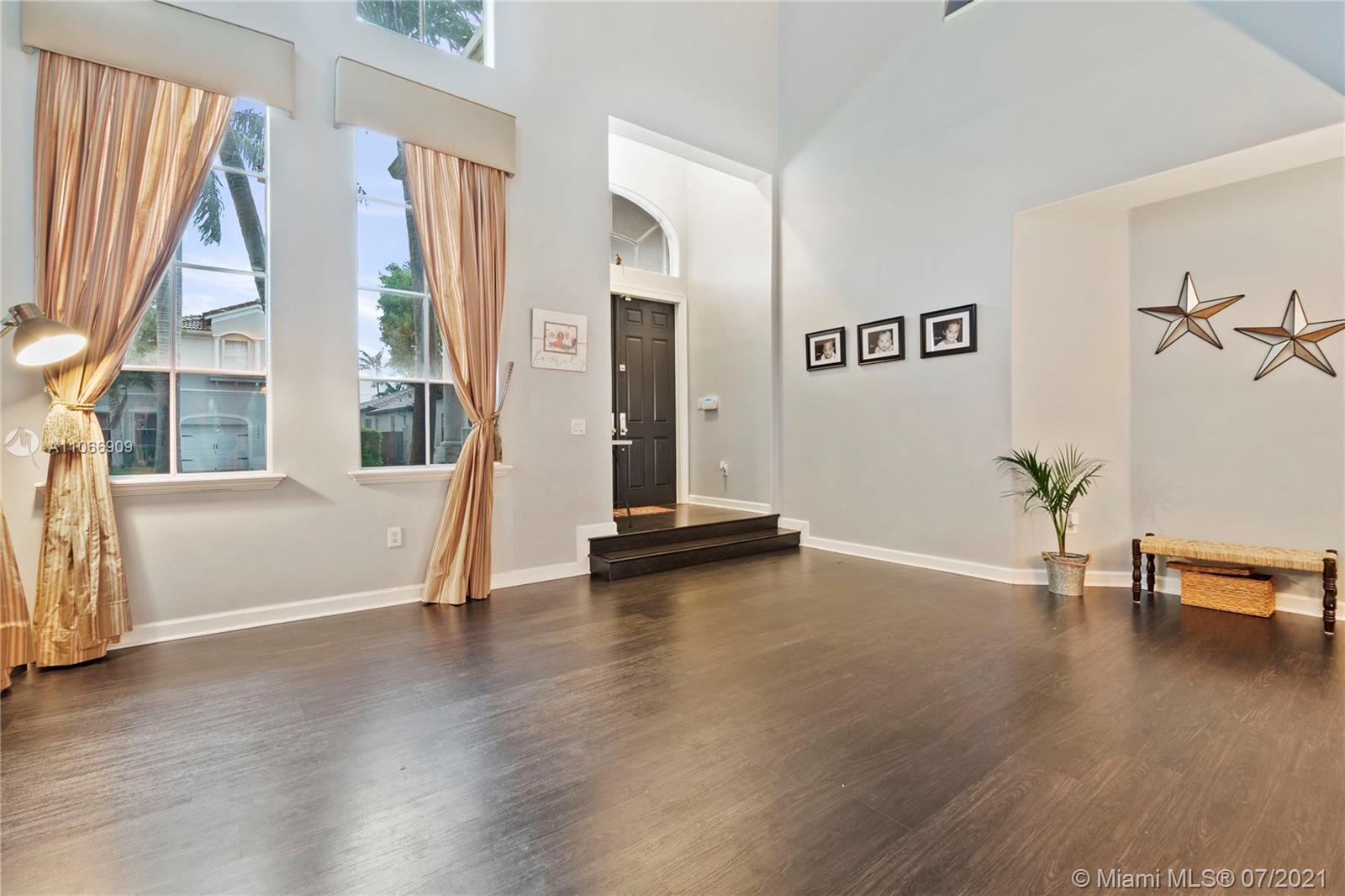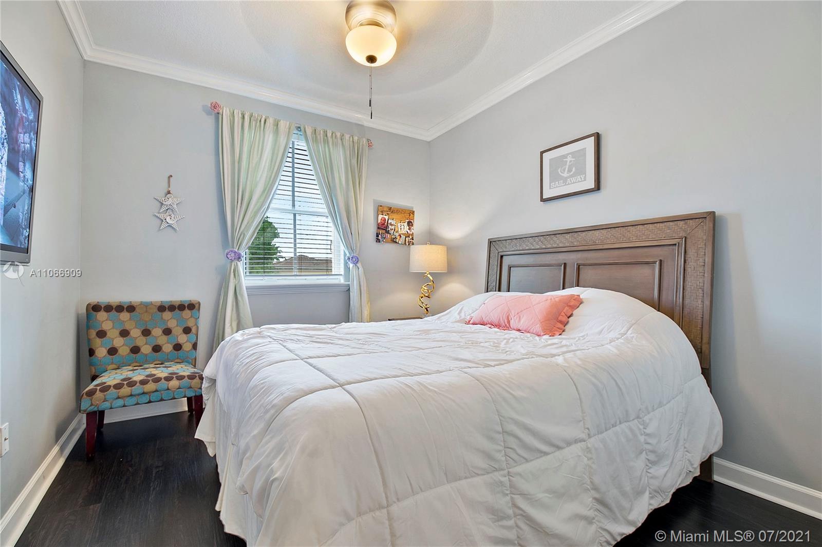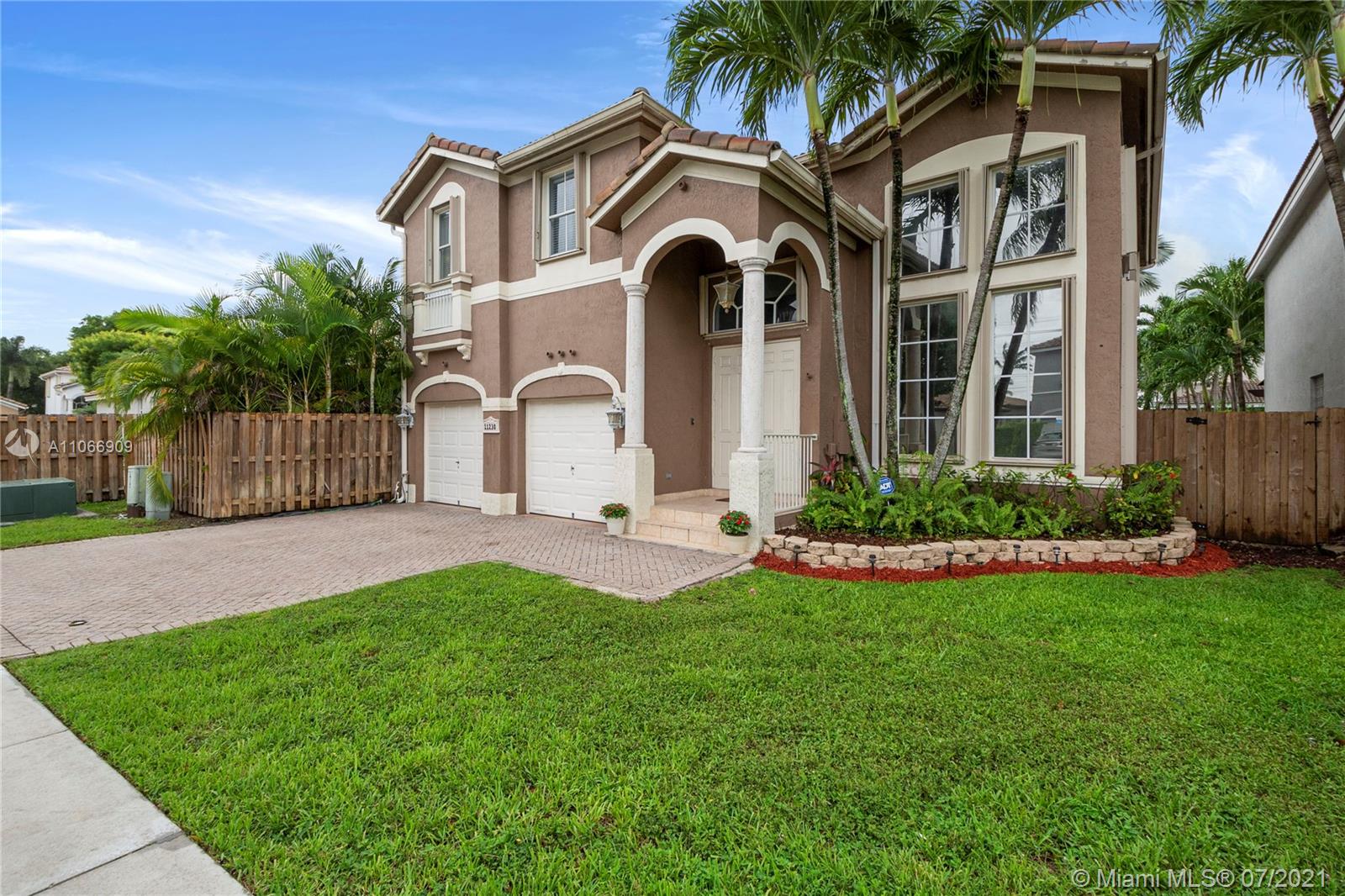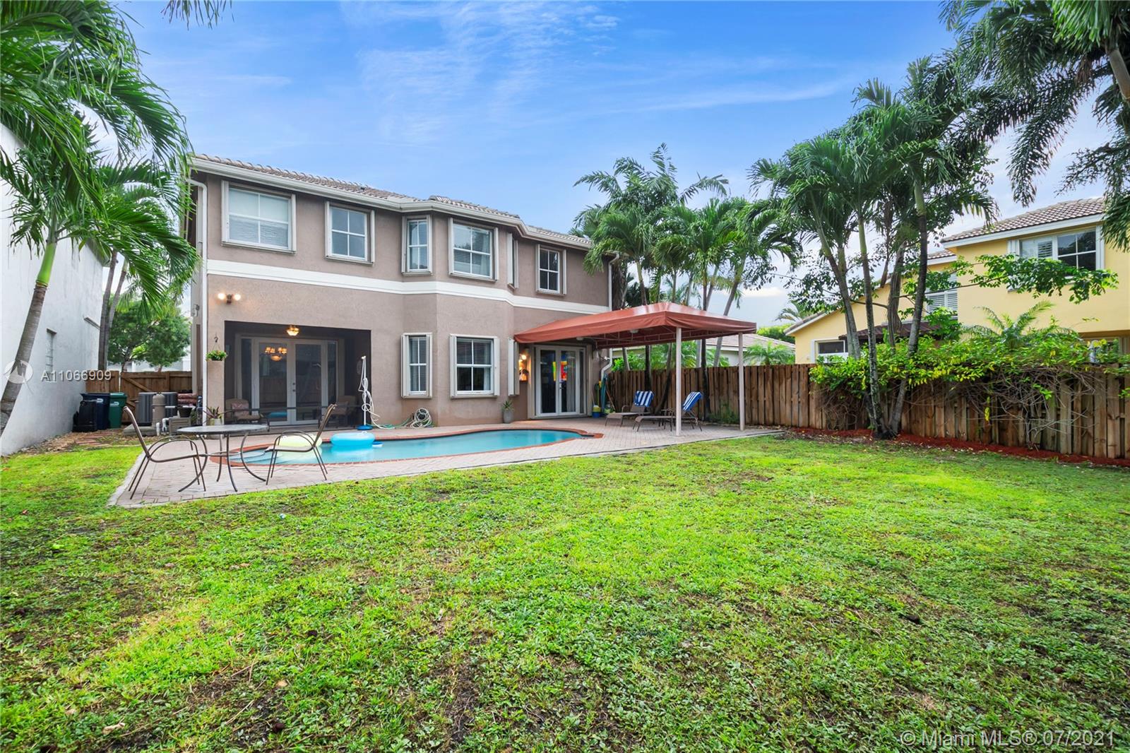 Costa Bonita, a Gated community in Doral. Mediterranean 2-story style home with private pool. Good location in move in condition. Expresso wood laminate floors throughout. Freshly painted interiors, crown moldings. New kitchen cabinets with granite counters and all stainless steel appliances. 2nd floor master suite with huge walk in closet and bathroom. Generous sized bedrooms, all upstairs. Accordion shutters for hurricane protection. Pool with surrounding brick pavers and awning, pool fence, rain gutters. Low monthly maintenance fee of $ 175.00 a month.