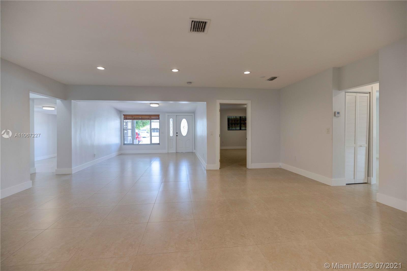 Spacious single family corner lot home in Hialeah. 5 bedrooms, 3 bathrooms, open concept kitchen, large living and separate family areas. New HVAC, porcelain floors throughout, quiet neighborhood, close to major access road. All renovations done with permits. Easy to show, ready to move in.