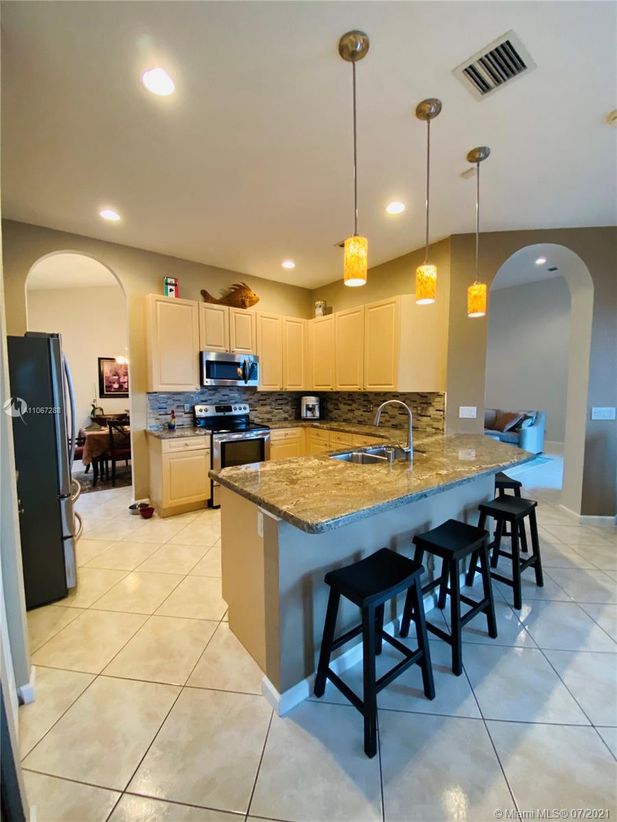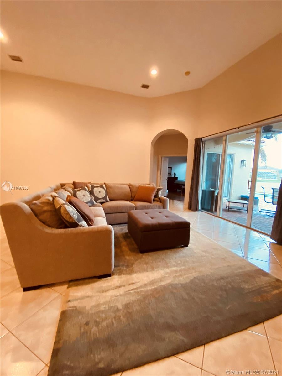 Absolutely beautiful, one story waterfront, pool home in the desirable community of Portofino at Monarch Lakes. Spaciously and tastefully designed for entertaining, offering open floor plan, completely remodeled kitchen with stone countertop, wood cabinetry, sitting Island and stainless steel appliances, overlooking a generous family room. High volume ceiling, great archways, tiles and wood flooring. Double door to master bedroom with wood floors, tray ceiling, walking closet, fully upgraded bathroom, double vanity, separate tub and shower. Enjoy your evening on your expansive lake view, free form salt water heated pool and a fenced back yard. COMMUNITY offers: clubhouse, pool, tennis, basketball, volleyball, playground, BBQ, picnic area. All Near Mall, Restaurants, Hospital, A+Schools