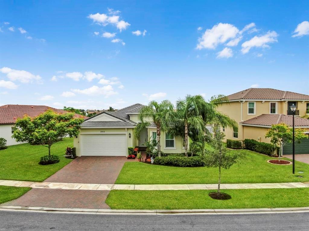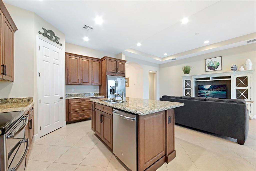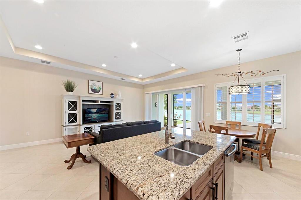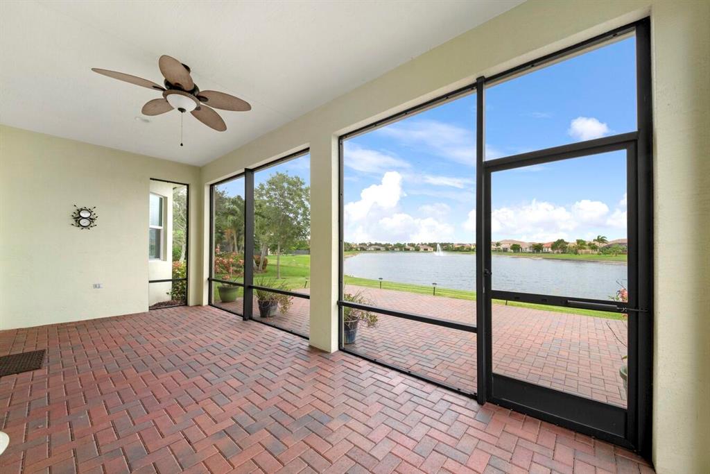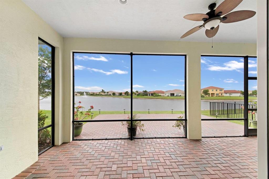 Be prepared to be inspired by this stunning 4 bedroom, 2.5 bath lake front home with impact windows and doors in the sought after community of Portosol. The perfect layout to entertain with a formal dining room, living room and screen enclosed patio. The dream kitchen includes stainless steel appliances, granite countertops, 42'' upper cabinets, counter height seating at the island, breakfast nook and a large pantry. The spacious master suite includes a coffered ceiling, 2 large walk in closets, bay windows, double sinks and large walk in shower. Tile laid on the diagonal, plantation shutters, high hat lighting, neutral decor and abundance of light finishes off the home. Enjoy your tropical paradise with a screen enclosed and an open patio with a stunning lake view.