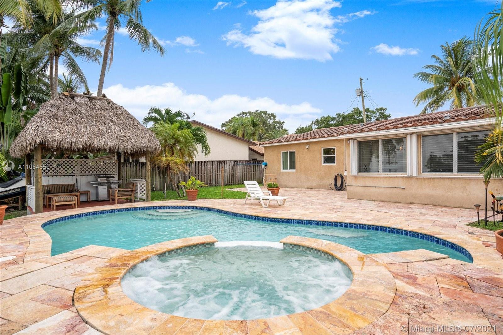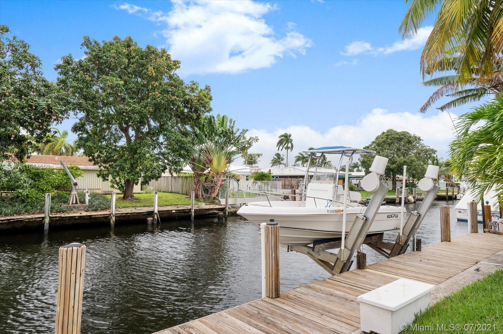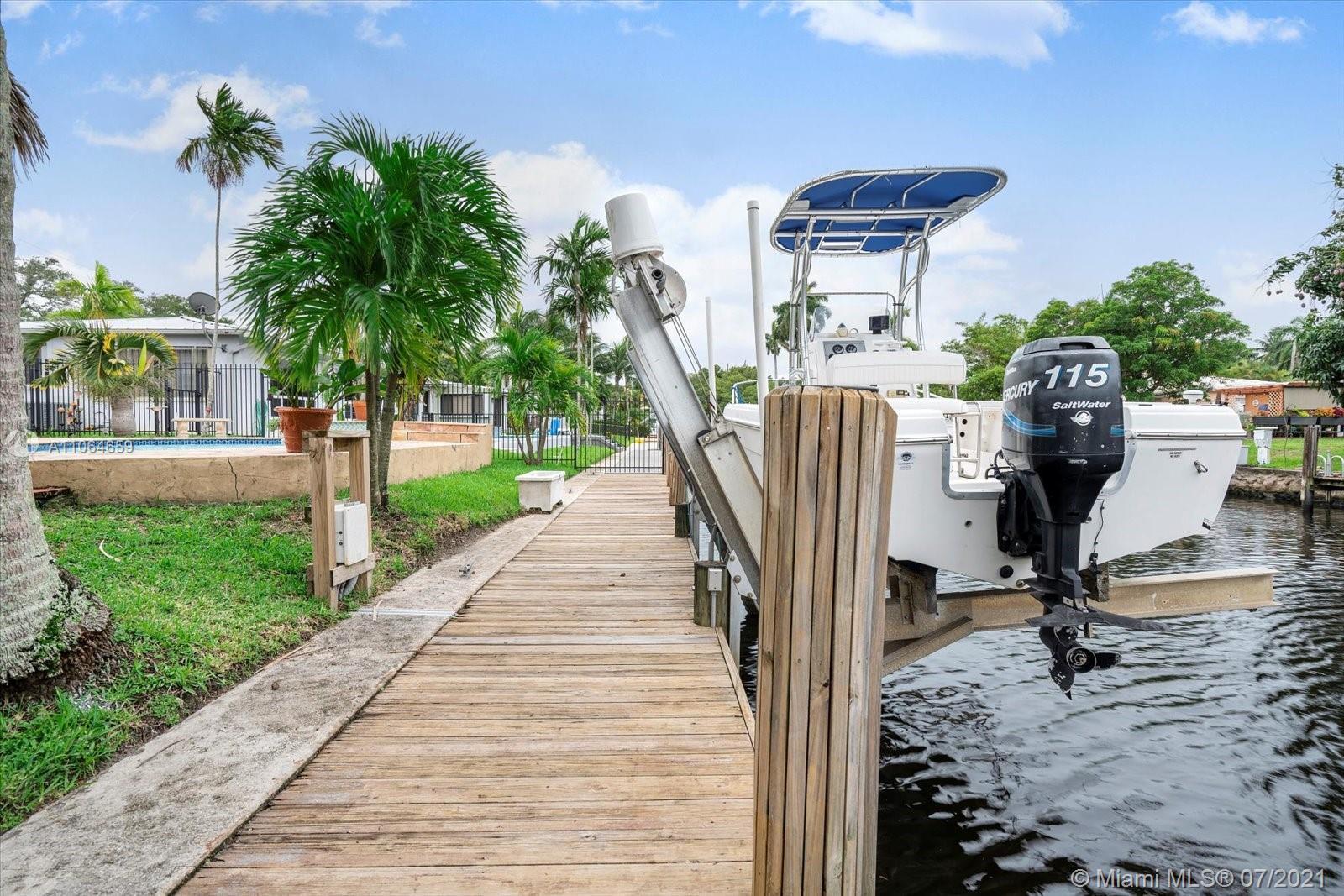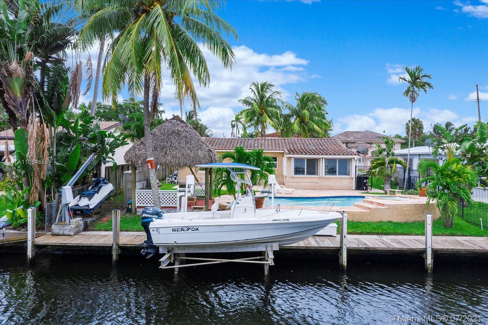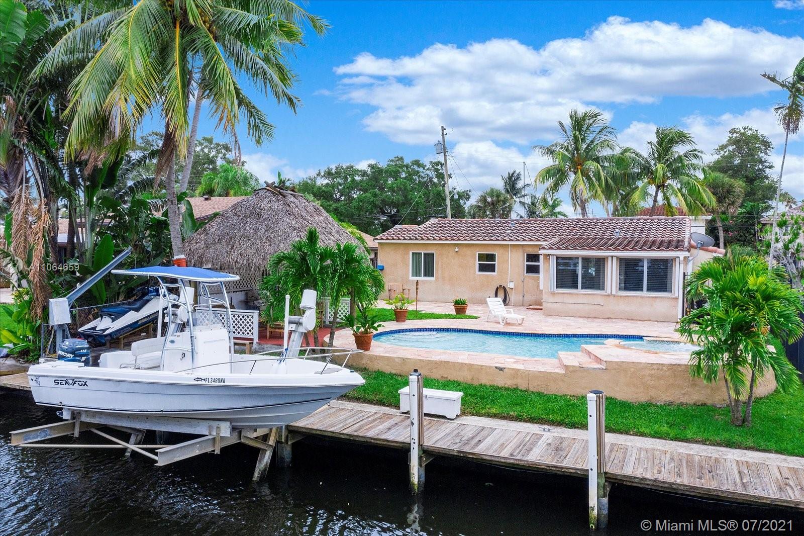 Updated with tile floor, custom kitchen with granite countertops, Located in desirable Citrus Isles, close to downtown, airport, and beaches. No fixed bridges. 60' deepwater. Big yard with custom pool, spa, patio, tiki hut with electricity all perfect for entertaining. There is a 60 ft dock with a boat lift. 3rd bedroom was the garage that can easily be converted back. One car garage is great for extra storage.