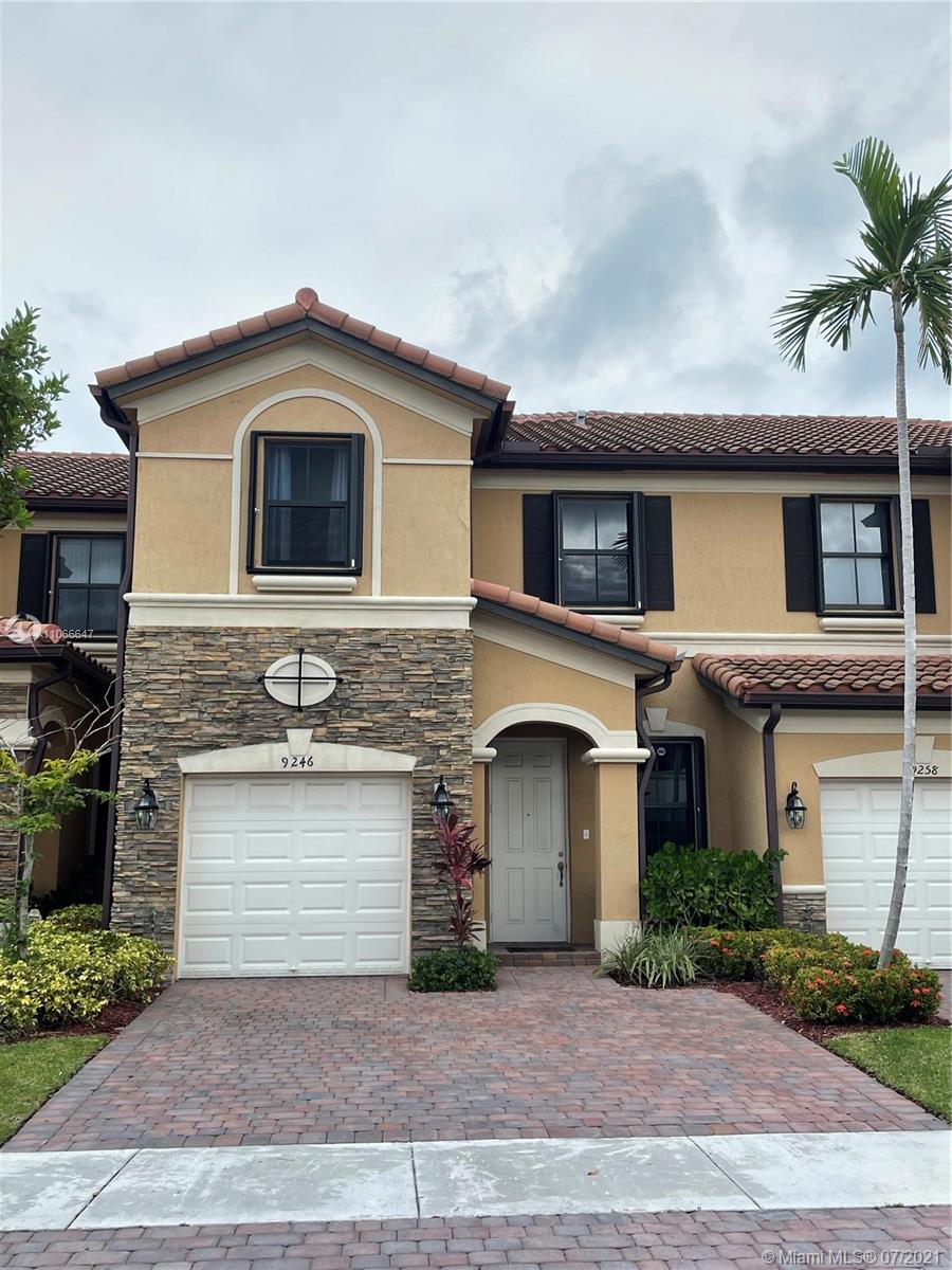 Welcome to this one of a kind LENNAR MODEL Townhouse. Total upgrades throughout, Premium kitchen cabinets and granite kitchen counter tops, Premium top mounted stair handrail with black metal pickets, diagonally installed tile on 1st floor, speakers in great room and upstairs hallway, entertainment alcove in family room pre-wired for surround sound, wall art paintings and decor, oversized rear patio package, 4' Aluminum fence and gate, storm shutters and such more. Come visit this beauty TODAY!