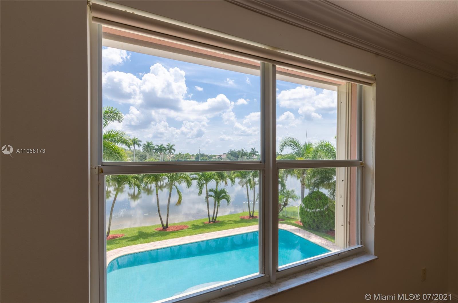 **Gorgeous Esplanade Model** The unobstructed lake view will impress you as soon as you step in. Beautiful house, recently remodeled in 2019, very comfortable layout, vaulted ceilings, lots of light, bright and modern: 1 bed and full bath downstairs. All bathrooms were redone, new kitchen cabinets, new Led lights, new light fixtures, ceiling popcorn removed. Customized drapes and blinds. Customized kitchen island, a lot of cabinets with multiple storage options. Accordion shutters throughout, fenced back yard, 2018 A/C unit, natural gas stove & water heater. Oversized pool with net protection.Great amenities and Resort Style Club House. Tenants left last week, house is clean and empty, ready for a new family!! Call for more details.