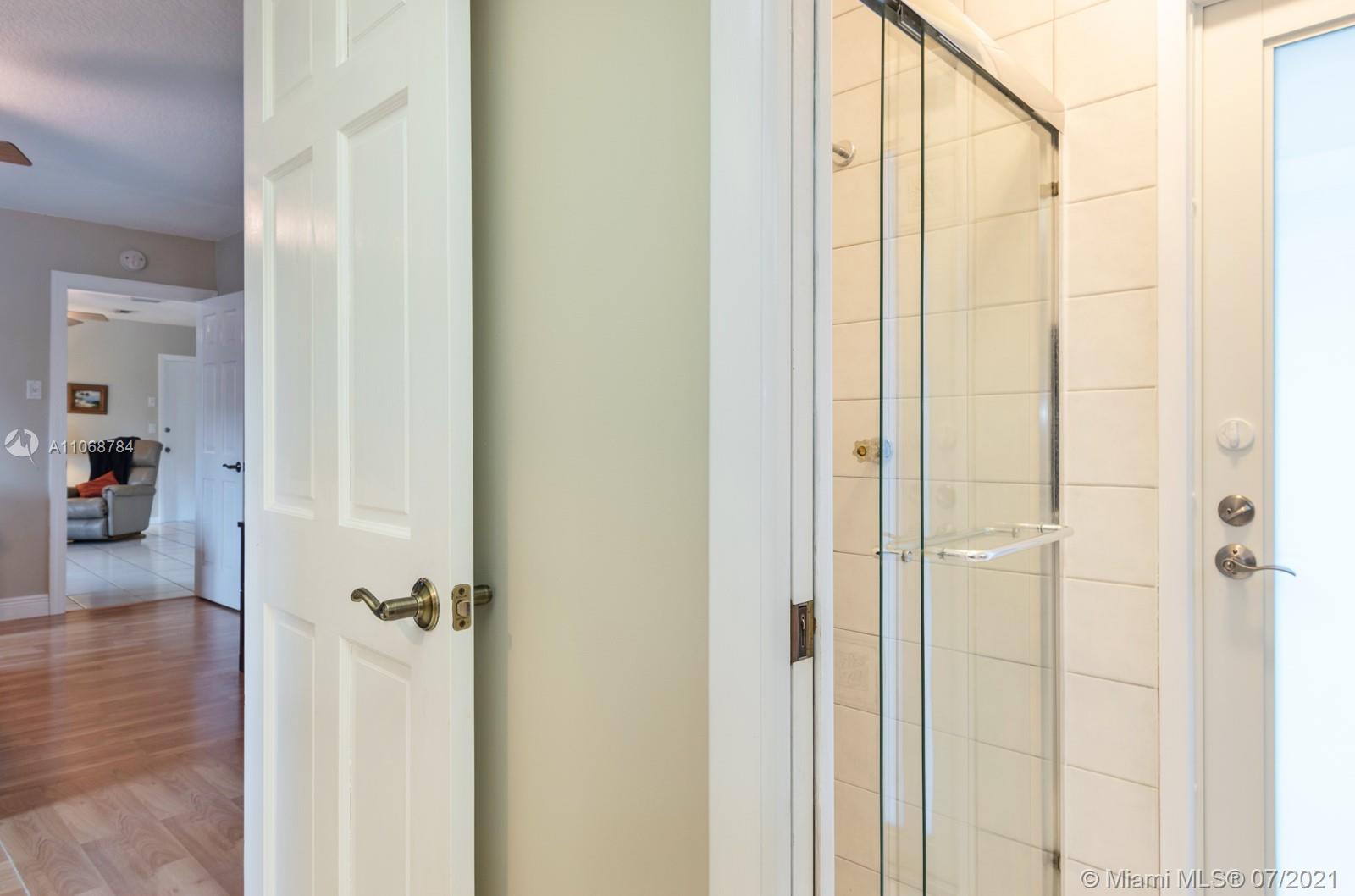 Welcome home to this lovely 3bed, 2bath with water views & NO HOA! Spacious formal living area with new carpeting awaits as you walk in. Enjoy freshly painted interiors and relaxing view to pool & patio. Dining room leads to kitchen & oversized family room creating an open concept. New stainless steel kitchen appliances & convenient pass-through window to outdoor patio great for entertaining. New vanity & floor in primary bath, new walk-in closet, new pocket door connecting primary bedroom & bath. Renovated 2nd bath serves as cabana bath. New screen for patio enclosure. Hurricane impact windows, back doors, & garage door. Hanging space + pull-down attic stairs in garage. Circular driveway framed by beautiful tree. Fully-fenced yard, fruit trees & space for boat. Located close to schools!