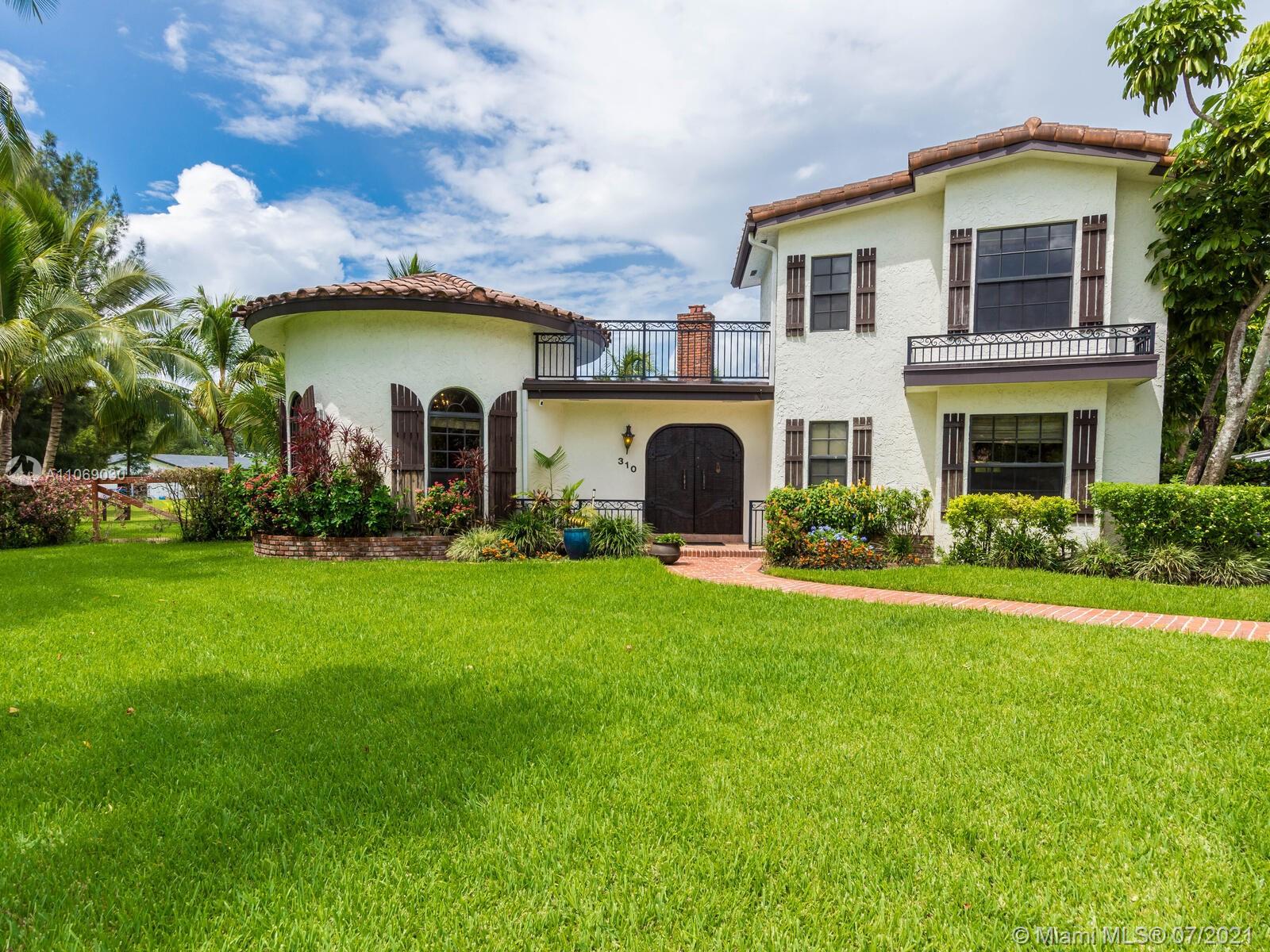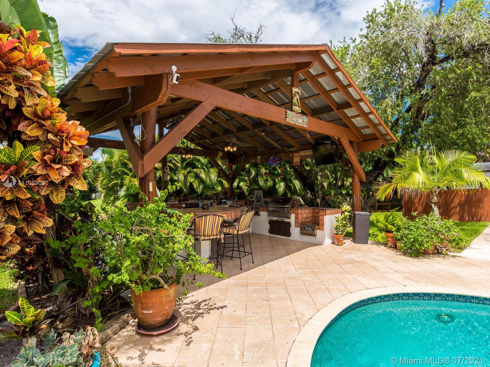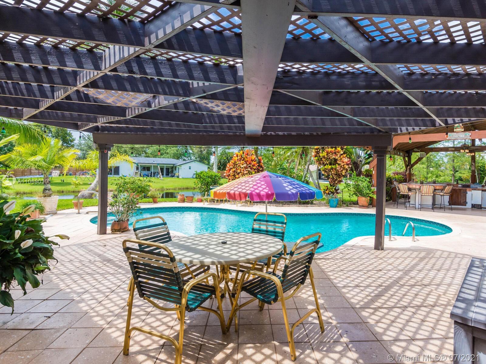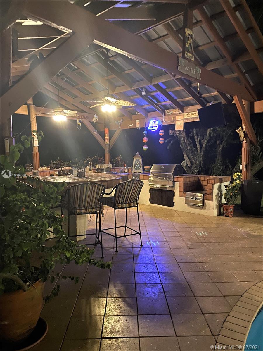 Amazingly unique three bedroom three bath two story home carefully designed to bring forth the best of old world charm. Bask in the pool surrounded by a tropical waterfront paradise on over ½ an acre with party size covered entertainment area with barbeque grill, electric, water, and so much more. Home also offers Impact windows and doors and fabulous flooring throughout. The additional storage building offers electricity and wall a/c for your comfort, whether as an office, home gym, or other. Desireably situated in Plantation Acres near American Heritage School. This beautiful home can be yours! Love it just the way it is or personalize it with your own creative updates. Showings by Appointment Only.