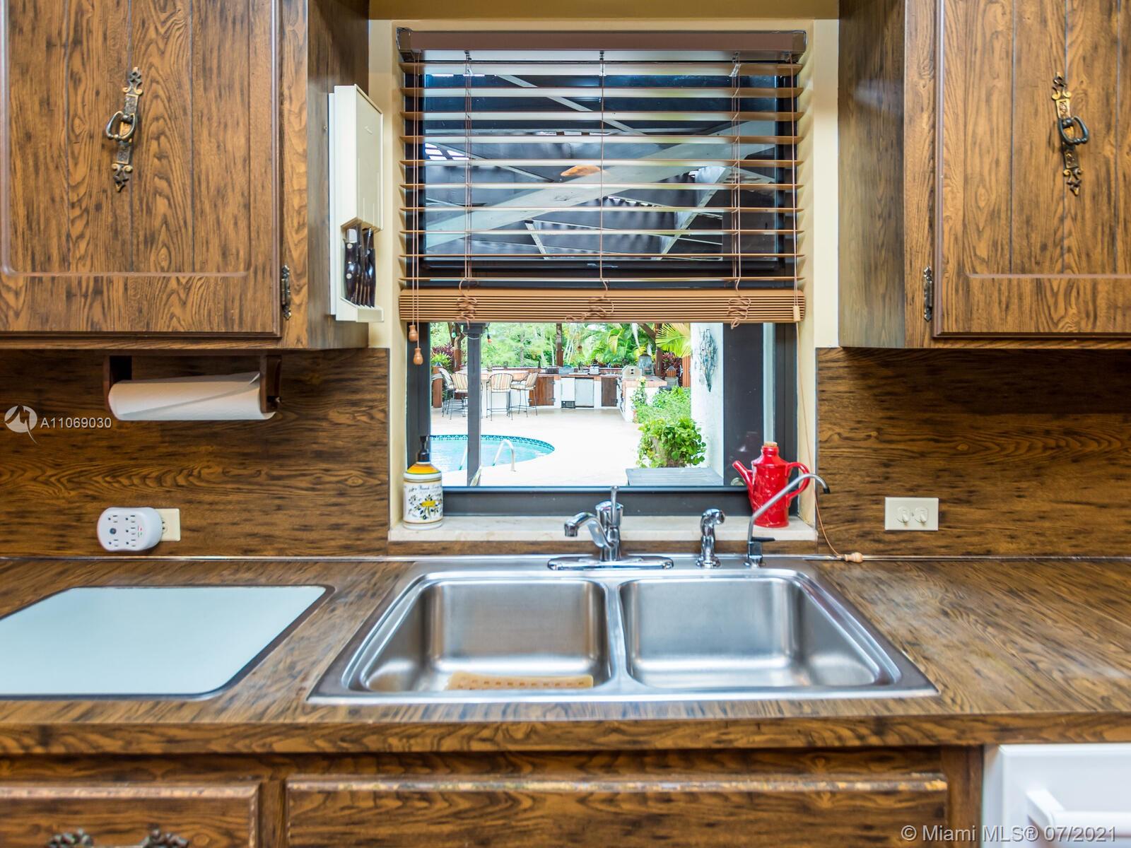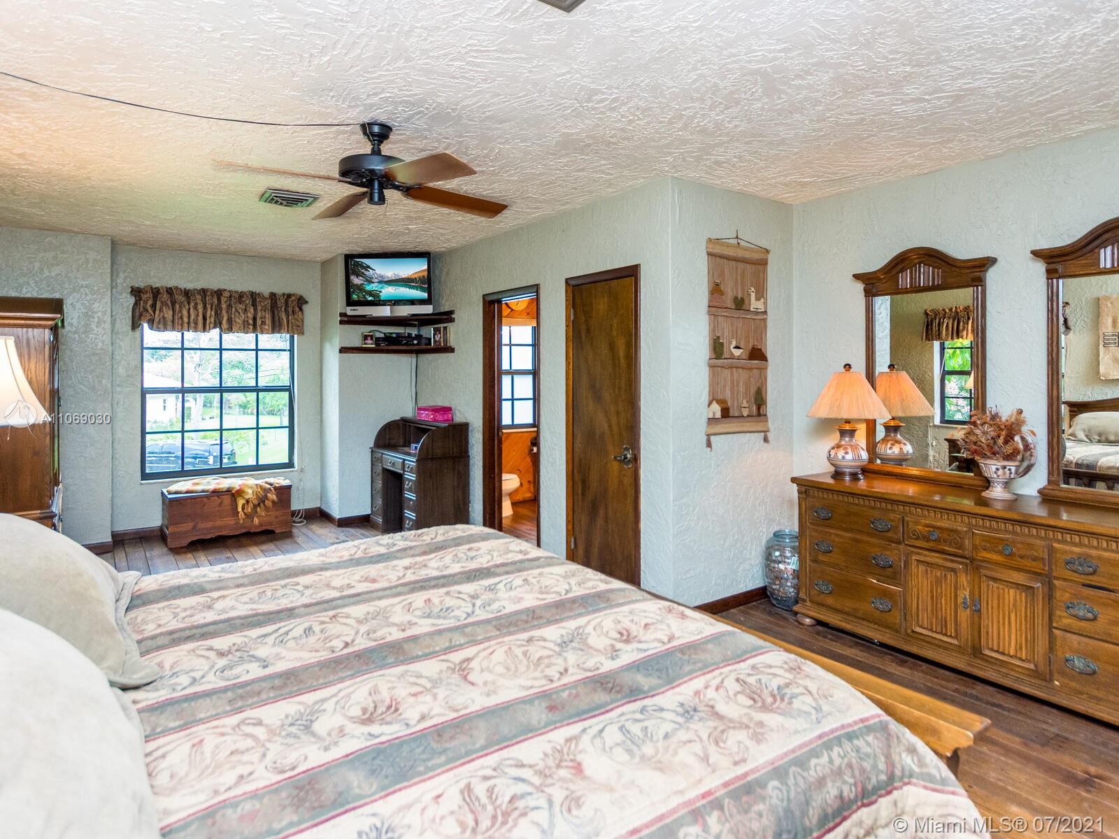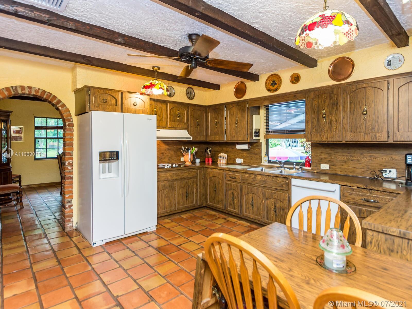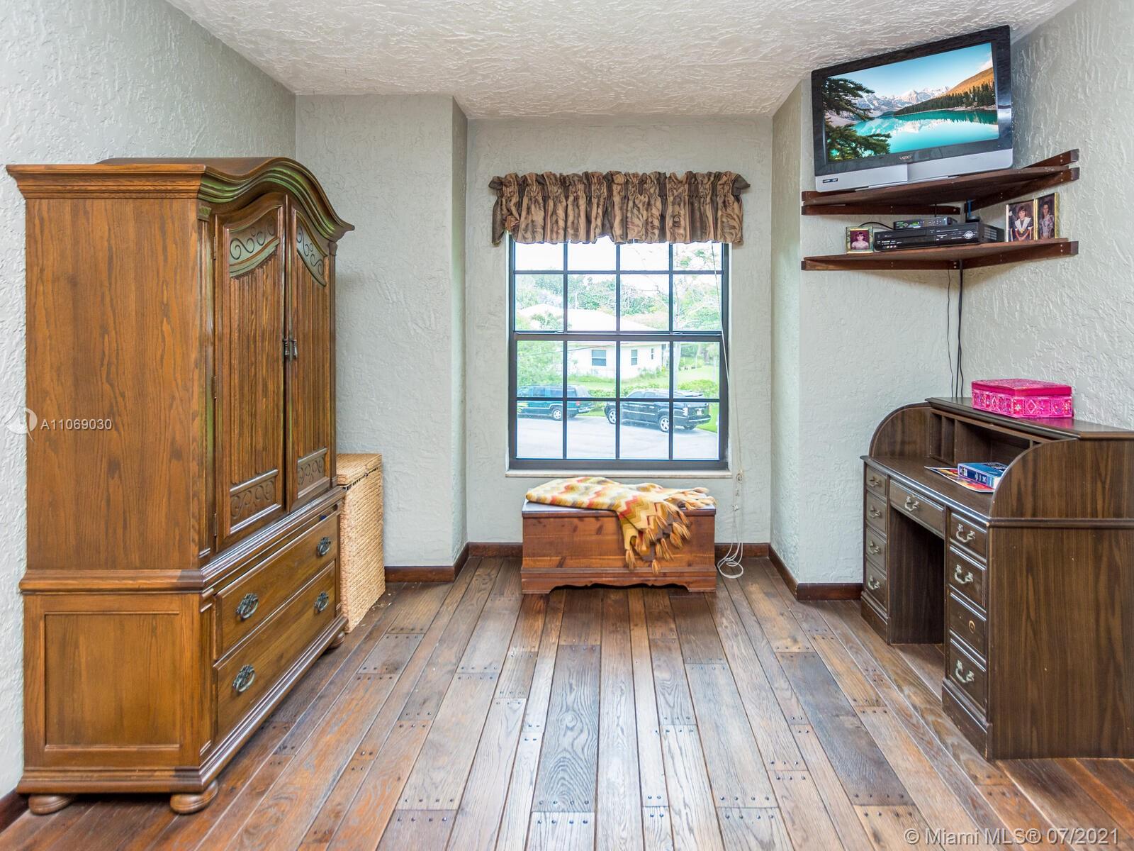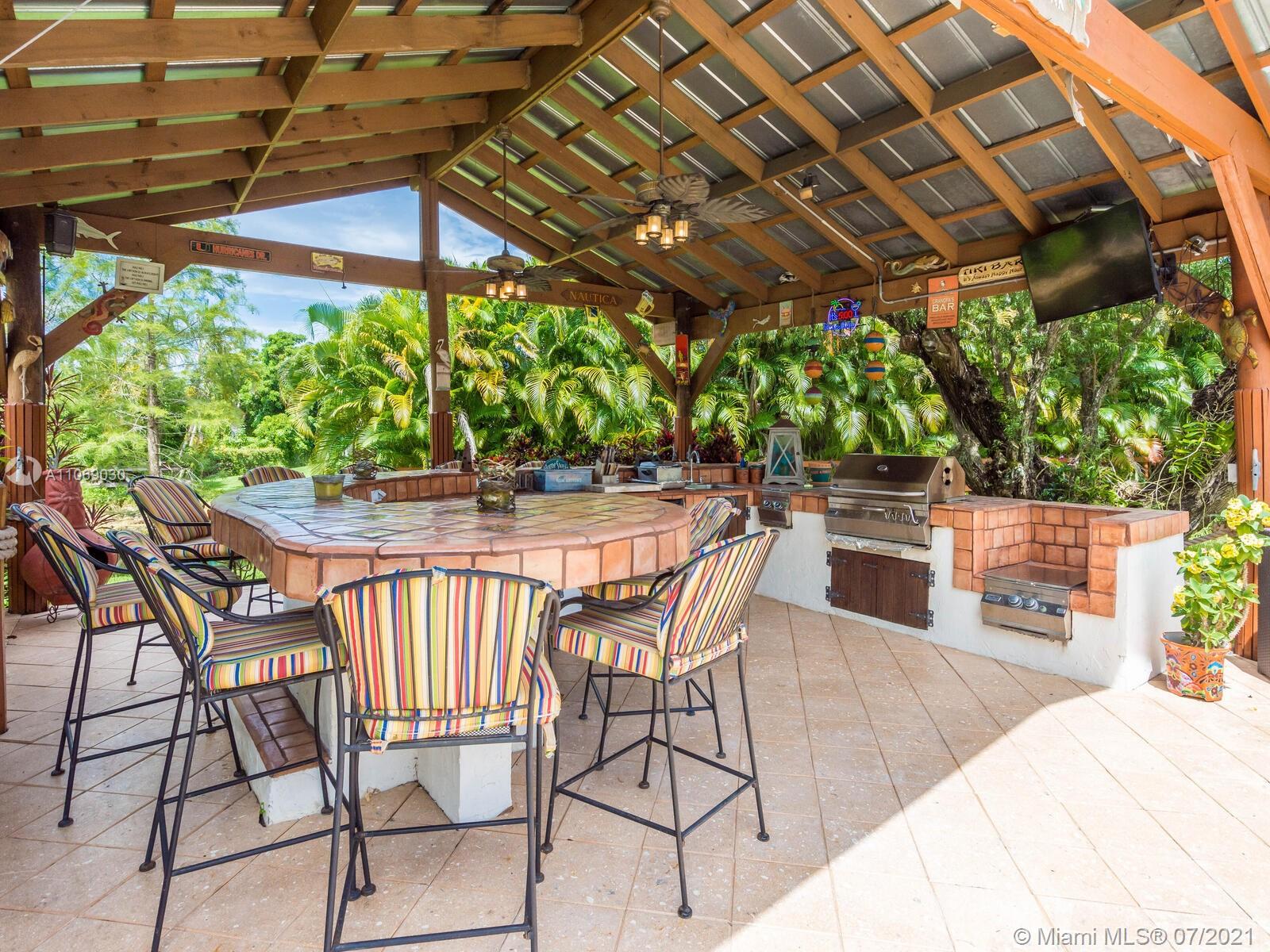 Amazingly unique three bedroom three bath two story home carefully designed to bring forth the best of old world charm. Bask in the pool surrounded by a tropical waterfront paradise on over ½ an acre with party size covered entertainment area with barbeque grill, electric, water, and so much more. Home also offers Impact windows and doors and fabulous flooring throughout. The additional storage building offers electricity and wall a/c for your comfort, whether as an office, home gym, or other. Desireably situated in Plantation Acres near American Heritage School. This beautiful home can be yours! Love it just the way it is or personalize it with your own creative updates. Showings by Appointment Only.