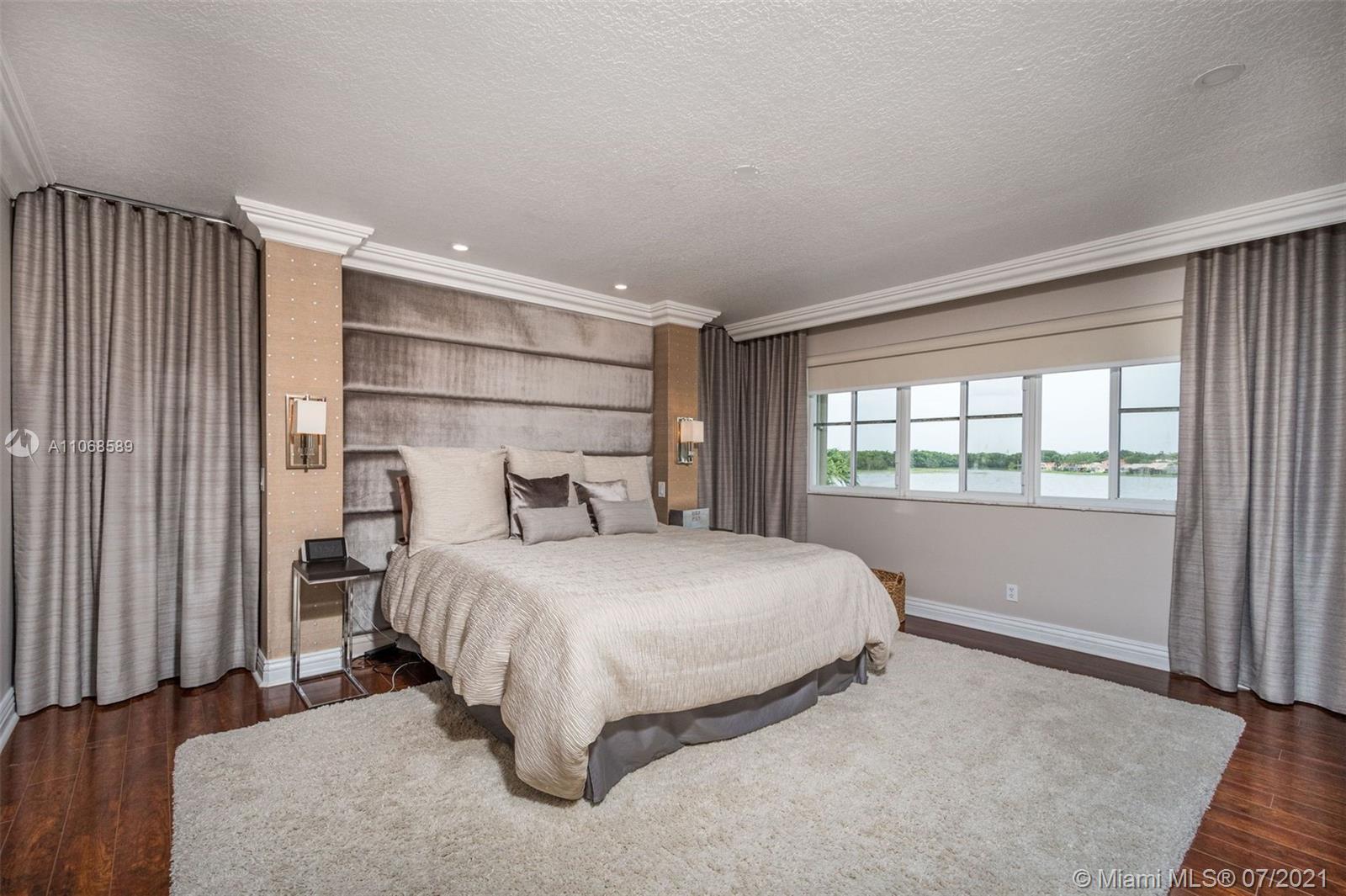Enjoy one of the most spectacular wide-lake waterfront views from this completely updated pool home. Situated on one of the largest lakes in Weston, this 3,700sf 5 bed/3 bath professionally decorated home has it all. No detail has been overlooked. NEW ROOF!! Marble & wood flooring throughout. 1 bedroom & bath downstairs. Open kitchen design including subzero refrigerator & double ovens. Oversized master suite with sitting area, 2 large walk-in closets and coffee bar. Modern master bath w/ separate vanities, bath tub & walk-in shower w/ multiple shower heads/body sprays. Custom built-ins including bar and wine storage, pool/spa automation, freshly painted, modern window treatments, accordian shutters, & A+ schools just begin to tell the story of this sophisticated Highland Meadows home.