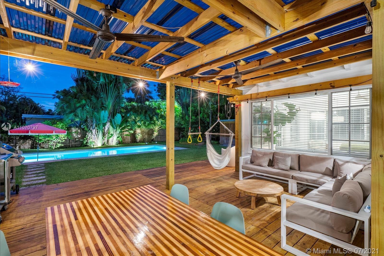 Come home to a fully updated 1506 sq. ft. 3 bed/2 bath pool home on an oversized lot in the heart of Miami Shores. This property epitomizes the indoor-outdoor lifestyle that defines Florida living. Entertain family and friends from the beautifully remodeled kitchen complete with gas range and Fisher & Paykel appliances. Dine al fresco or lounge away summer days on a 566 sq. ft. covered deck overlooking the landscaped private yard with pool, fruit trees and outdoor shower. Inside, natural light pours into the family room which is connected by custom arches to the open kitchen/formal living room with restored hardwood floors and a wood burning fireplace. Flowing throughout the home are curated design details brought together by thoughtful renovations. Just blocks from Downtown Miami Shores!