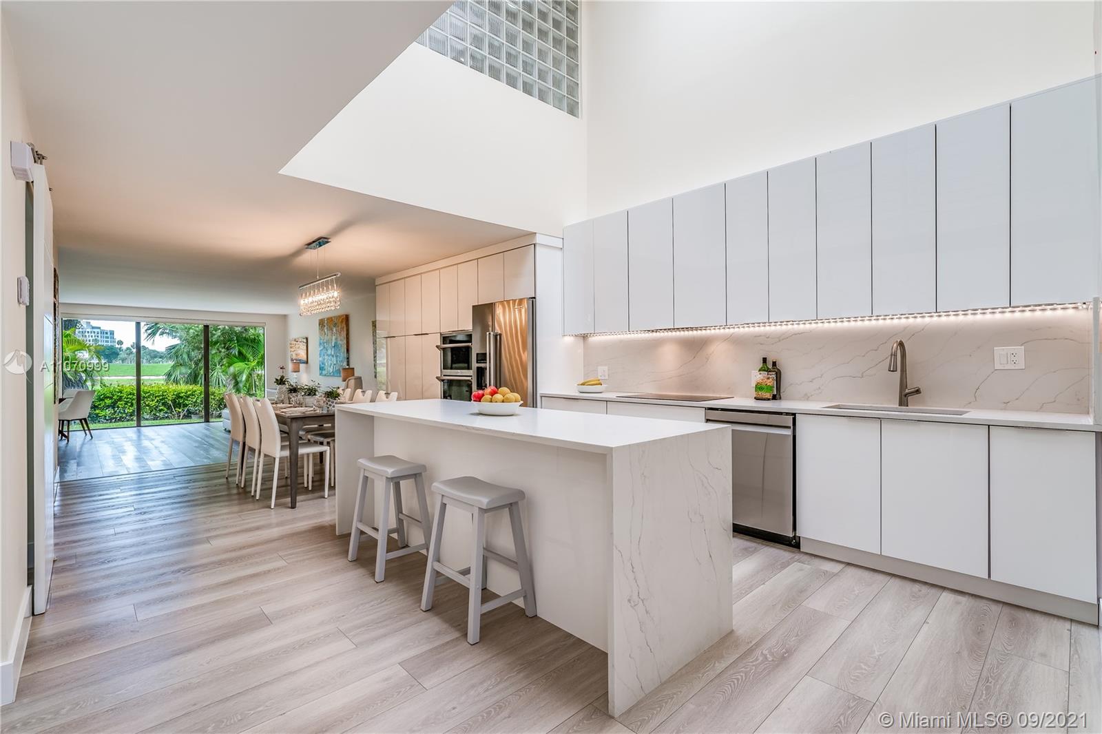 Aventura's best kept secret. Beautifully redesigned and renovated 3 bedroom plus extra room that can be used as an office or bedroom. Home is directly on the Turnberry Golf Course and centrally located. New kitchen, state of the art appliances, induction stove top, LED lighting throughout, window treatments, new bathrooms, flooring and more. Community offers 24 hours security guard at gate and roving security, tennis courts, pickle ball, gym, pool and bbq area. Only City of Aventura Residences can apply for Aventura Charter School K-8 and Don Soffer High School.Public schools are Aventura Waterways K-8 and Krop Senior High.