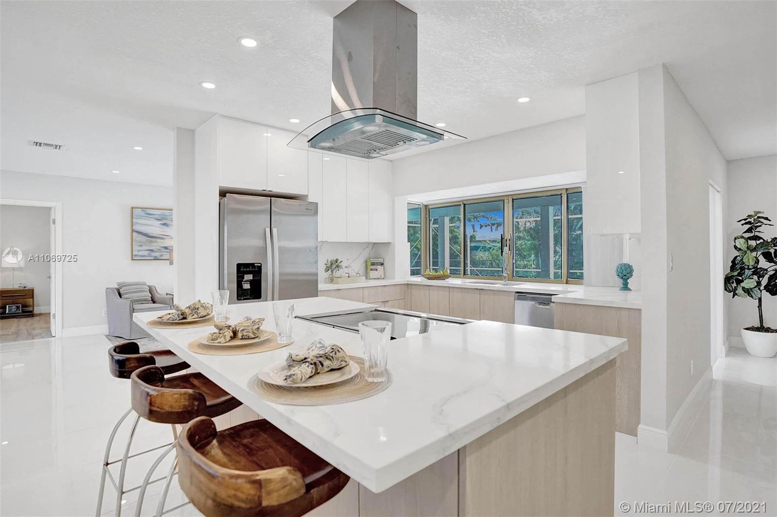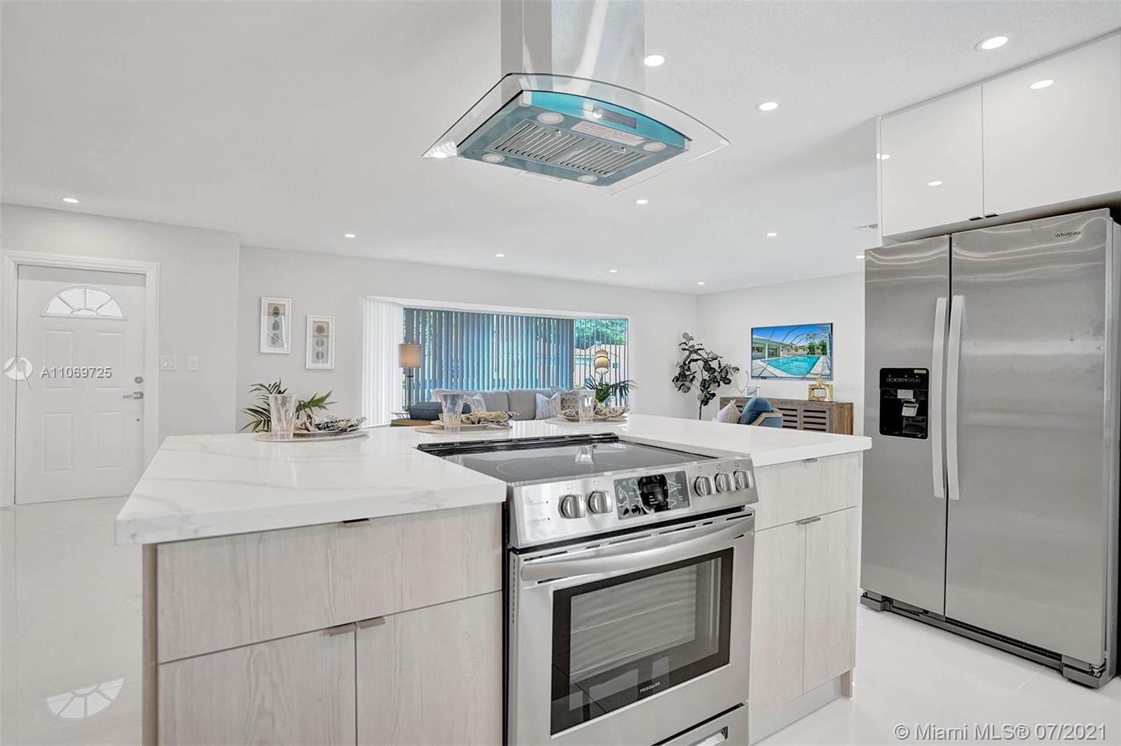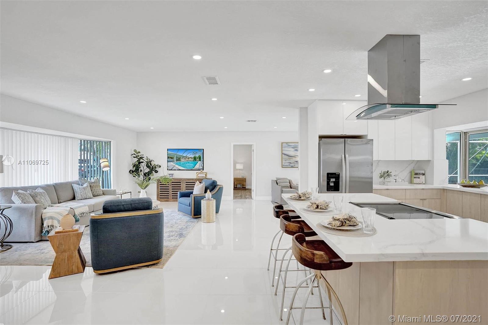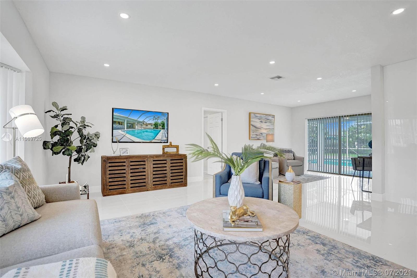 BEAUTIFULLY FULLY REMODELED 4 BEDROOMS 2 BATHROOMS HOME WTH POOL IN THE HEART OF PLANTATION! PERFECT TURN-KEY HOME OR VACATION RENTAL OPPORTUNITY! HOME FEATURES; BRAND NEW 2021 SHINGLE ROOF, BRAND NEW BATHROOMS WITH DOUBLE VANITY AND LIGHTED MIRRORS, SEPARATE LAUNDRY ROOM WITH A SINK AND BRAND NEW WASHER AND DRYER, NEWER 2020 A/C UNIT, IRRIGATION SYSTEM WITH NEW GRASS AND PLANS. NEW CUSTOM KITCHEN WITH A BEAUTIFUL ISLAND AND HIGH-END EUROPEAN CABINETS, QUARTZ COUNTERTOP AND BRAND NEW 2021 STAINLESS STEEL APPLIANCES, RECESSED LIGHTING WITH DIMMERS THROUGHOUT, VERY LARGE BACKYARD WITH SCREENED-IN POOL NICE FOR ENTERTAINMENT, VERY SPACIOUS 2 CAR GARAGE, CIRCULAR DRIVEWAY, FRESHLY PAINTED INSIDE/OUT... MINUTES FROM SCHOOLS, BEACH, SHOPPING PLAZAS ETC... HURRY THIS WON'T LAST LONG!!