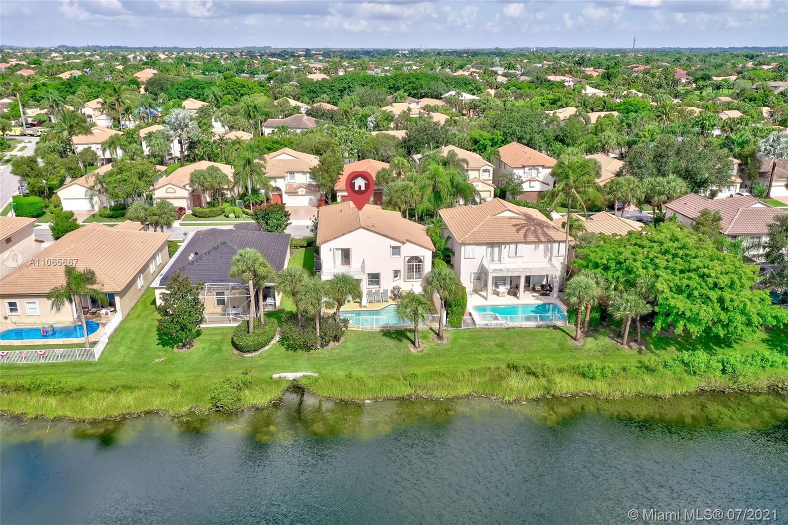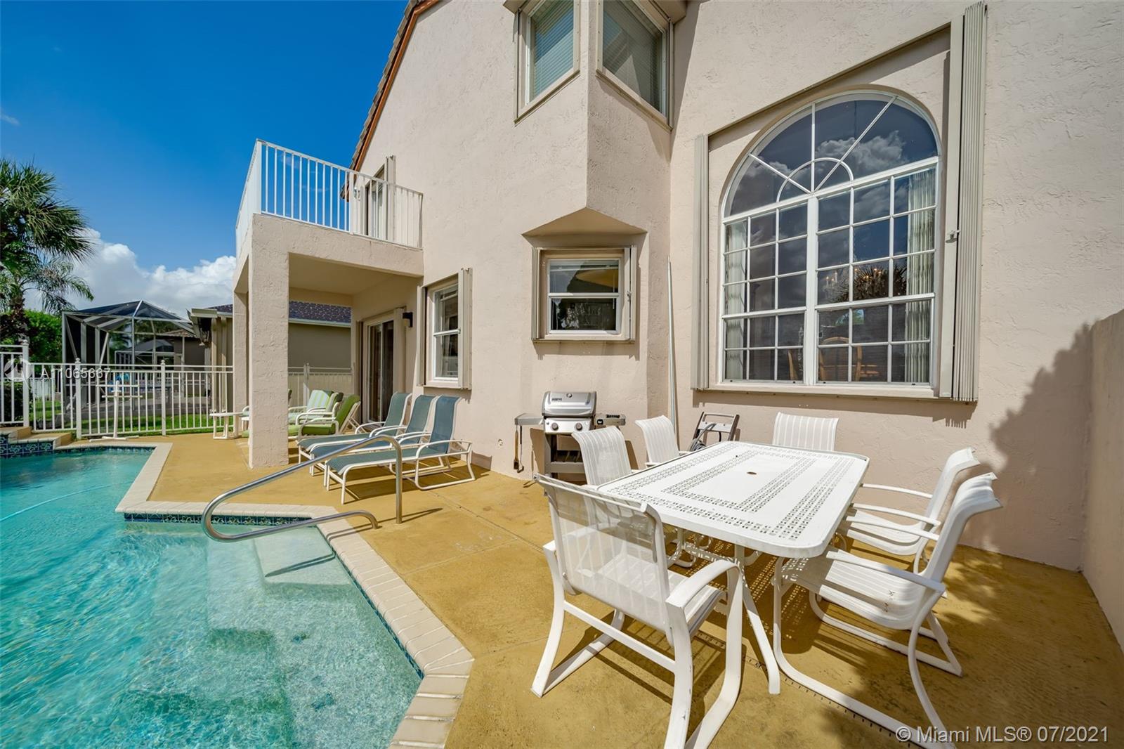 Spectacular 4/3 waterfront Single Family Home in Grand palms! Definitively one of a kind! Impeccably maintained and being sold directly from original owners. House features a balcony with water views, heated and fenced swimming pool, hot spa, 2017 AC, new water heater, accordion shutters, laminate floors throughout and a bright/spacious layout. Enjoy Grand Palms Golf Resort lifestyle: Community offers gated entry, 24 hr security, beautiful palm lined streets, green spaces, children playground, biking/jogging paths and a peaceful atmosphere. HOA includes basic cable, ADT alarm, lawn service, exterior painting and pressure cleaning. A+ Charter School System and great public schools. Shopping and restaurants just outside community. Great Loacation!