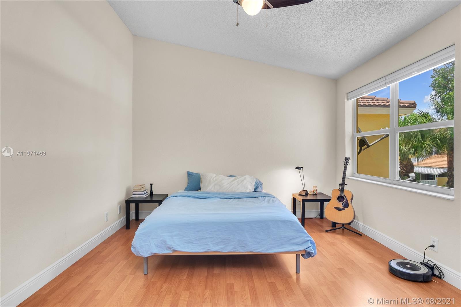 Very clean townhouse with a 1-car garage and versatile Primary Bedroom sitting room that could be used as a den, office, workout room, or converted to the builder's 4th bedroom option. This townhouse features a fenced-in backyard, 2-car driveway, an open upgraded kitchen and primary bath, tiled 1st floor with wood laminate on the stairway and 2nd floor, storage under the stairs, and is located near guest parking and the community pool. Pembroke Shores is a guard gated community conveniently located near I-75, restaurants, shopping, theaters, parks, golf, and great schools!