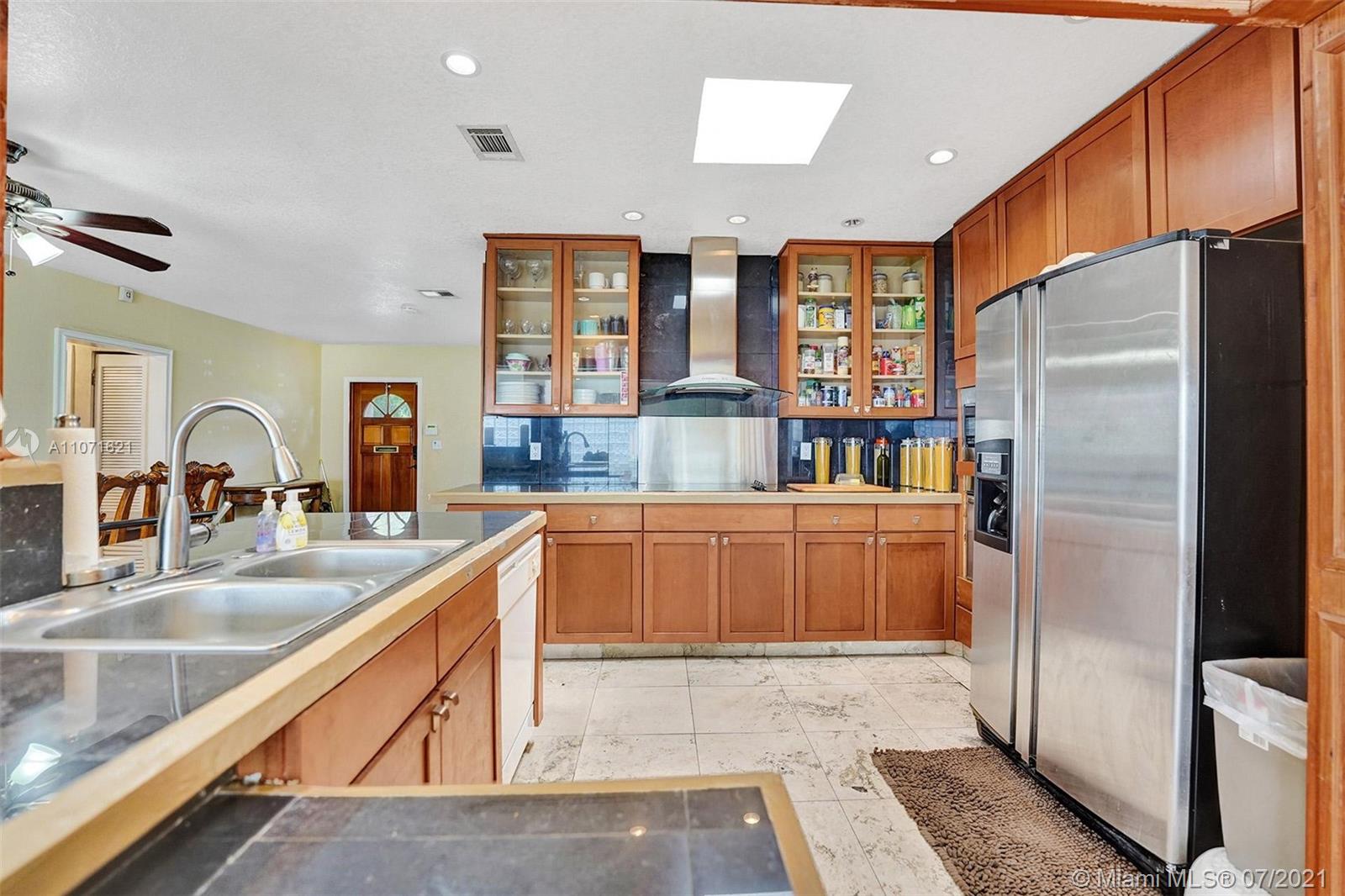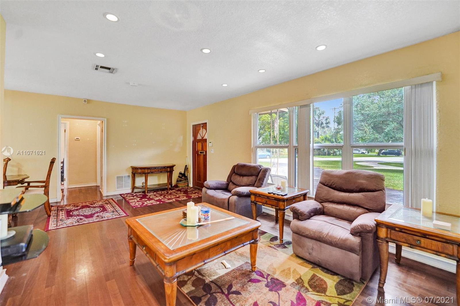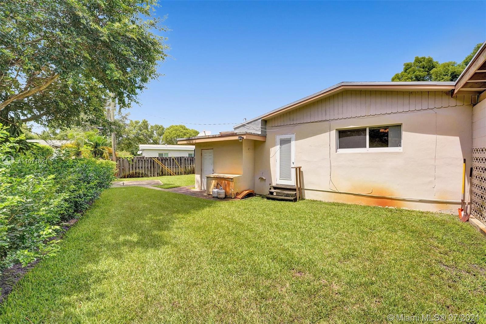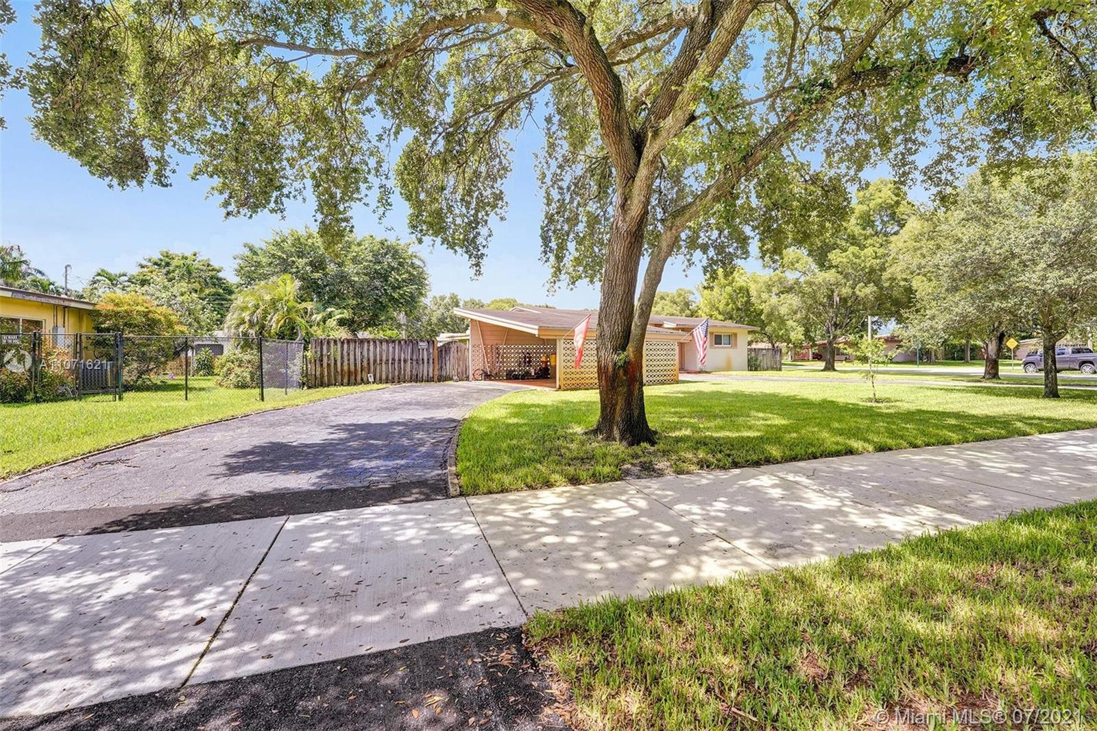 Beautiful large corner lot in the heart of Plantation Gardens. AS-IS 3/2 Single family, split floor plan with large family room. Extra large drive and carport for 2 cars. Kitchen features lovely wood cabinets with SS appliances. Roof was replaced in 2009 and Flat roof has a 5 year warranty. New water heater, a/c 7 years old, alarm system, impact windows, beautiful wood floors and travertine in the family room. Fenced yard with room for pool. Tree lined street, NO HOA, close to major highways, shopping and restaurants