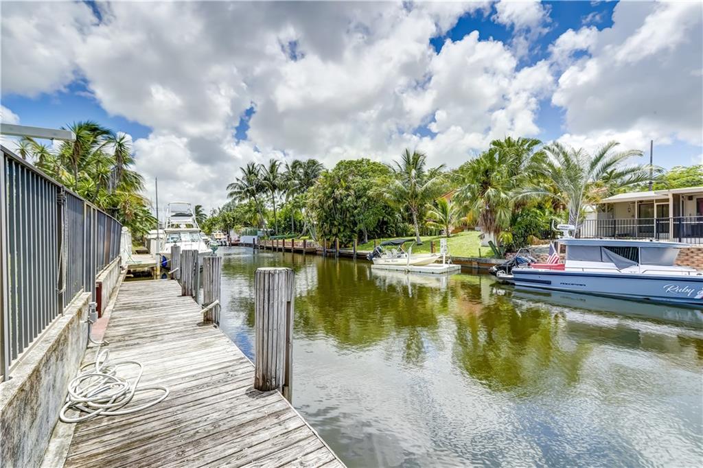 Ocean Access with no fixed bridges. Enjoy Boating and water sports from your own backyard. 65' waterfront pool home in the boating community of Lauderdale Isles. Just minutes away from all major highways, FLL International airport, downtown and the beaches. Direct ocean access by boat via the New River. Community boat ramp just two streets away. Wide open floor plan with vaulted ceilings in the living area. Originally a three bedroom two bath home, one wall was removed to make two master suites. Hurricane shutters, fenced yard with storage shed. The perfect renovation opportunity to create your own tropical paradise to entertain or just relax waterside.