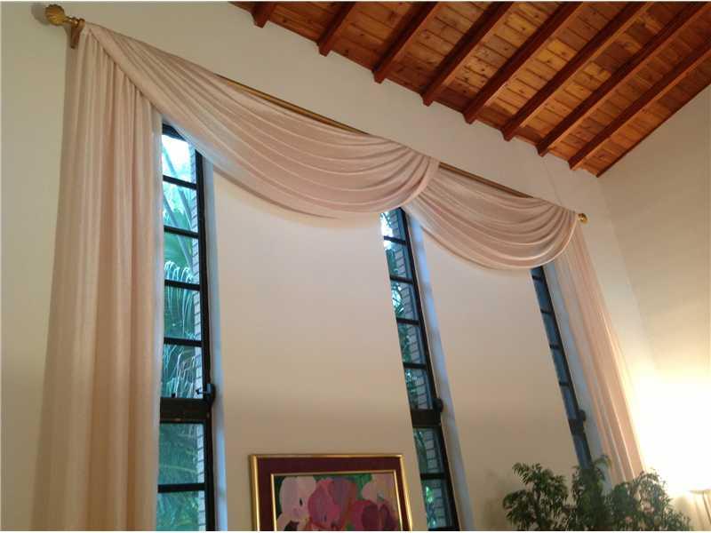 Dramatic,modern designed,waterfront home w/extra wide open turn around canal views. Dock space has lifts plus dock fits up to 55 ft. boat; 18ft high bridge Gorgeous exposed wood-beamed,33' ceilings in living/dining area. Tall,stylized windows. Spectacula r pool area w/spacious brick patio & covered area. Eat-in kitchen w/walk-in pantry. Large second floor Master suite w/high wood beamed ceilings sized walk-in closet. Guest suite has access to pool area; exercise room; garage. Loft library/office w/custom