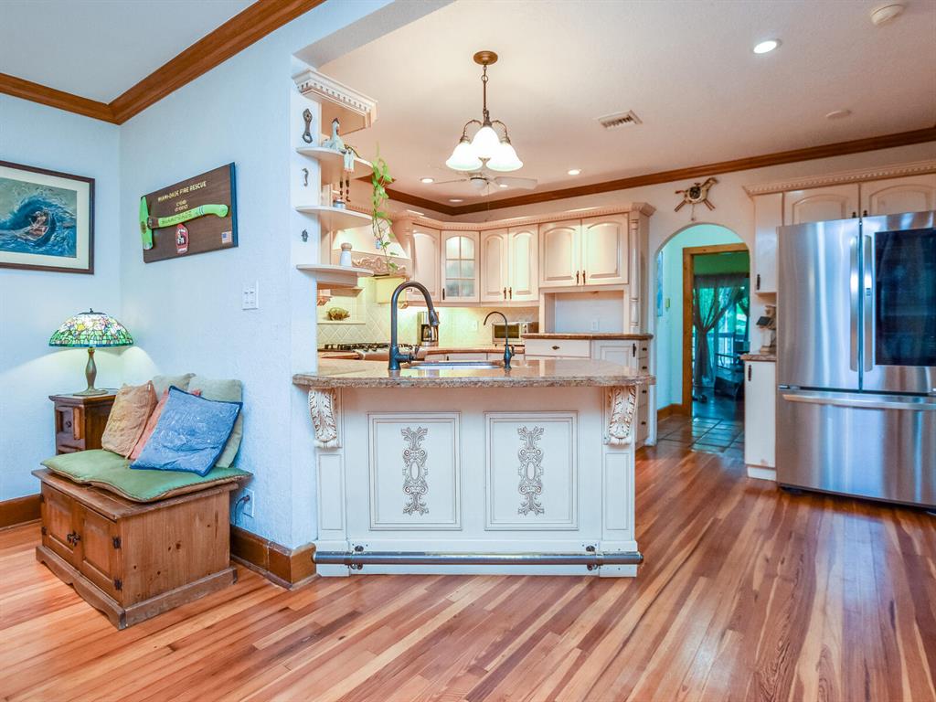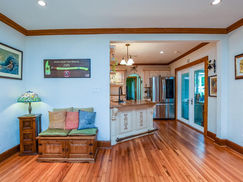 Lovely Old Pompano ''Key West Style'' home features 2 Master Suites with French doors that lead out to covered wrap around deck. Second Master has separate entrance - can be used as mother-in-law suite / supplemental income.(separate a/c ) Split floorplan. Custom gourmet kitchen with gas stove, reverse osmosis and new stainless steel refrigerator. Fireplace in living room and crown molding throughout . Beautifully restored Dade Pine floors in living room, dining room, kitchen, master #1 and bedrooms #3 and #4. Huge backyard ready for a pool, outdoor kitchen and patio area. Custom stamped driveway with room for your boat and RV. Located 1 mile from the beach and I-95 . Close to schools. Enjoy all that Pompano has to offer -lovely beaches, destination dining, retail outlets and so much