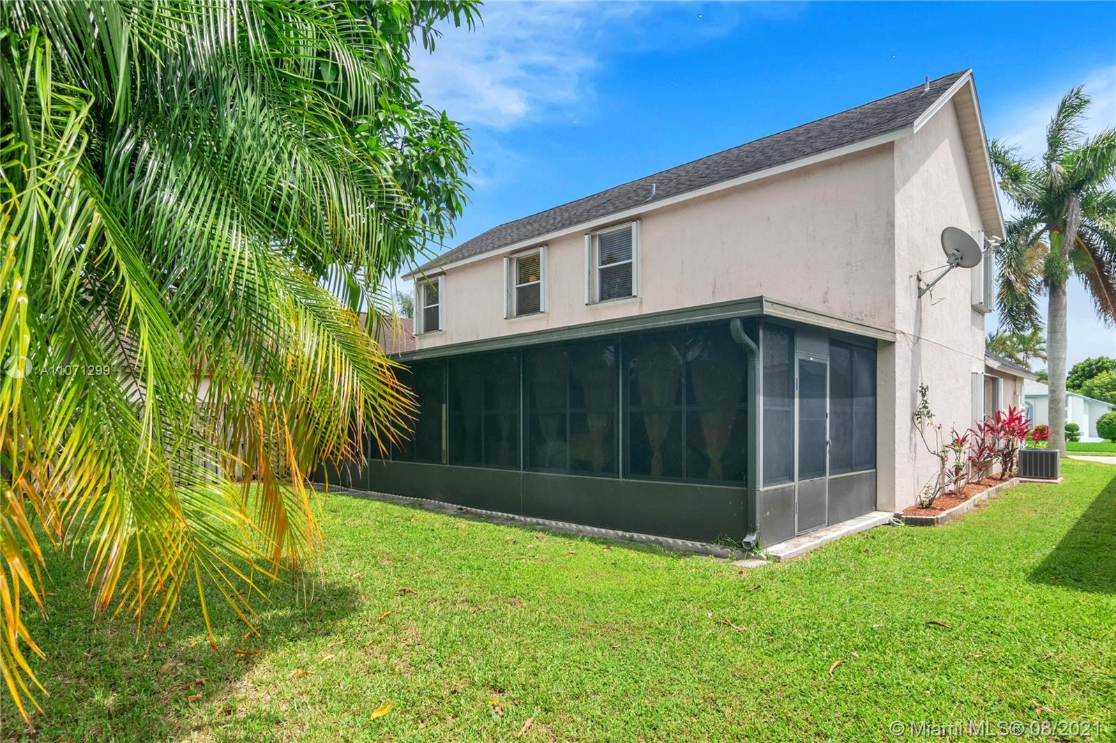 Want some privacy with no rear neighbors? Looking for some extra entertaining space? How about a gated community? This original, 1-owner, 3 bed / 2.5 bath home may just be the one for you for it backs up to a huge lot with no immediate rear neighbors and features separate living, dining, and family rooms with an extended, permitted screen-enclosed patio that is perfect for entertaining all of your guests. Preparing for storms is a breeze with your Accordion shutter protection. Spacious Primary bedroom with walk-in closet and bath with dual vanities and separate shower / roman tub. Roof replaced in 2005. Foxhall is a gated community with community pool & playground that is conveniently located near I-95 / Turnpike, PB Airport, and the Ballpark of the Palm Beaches.