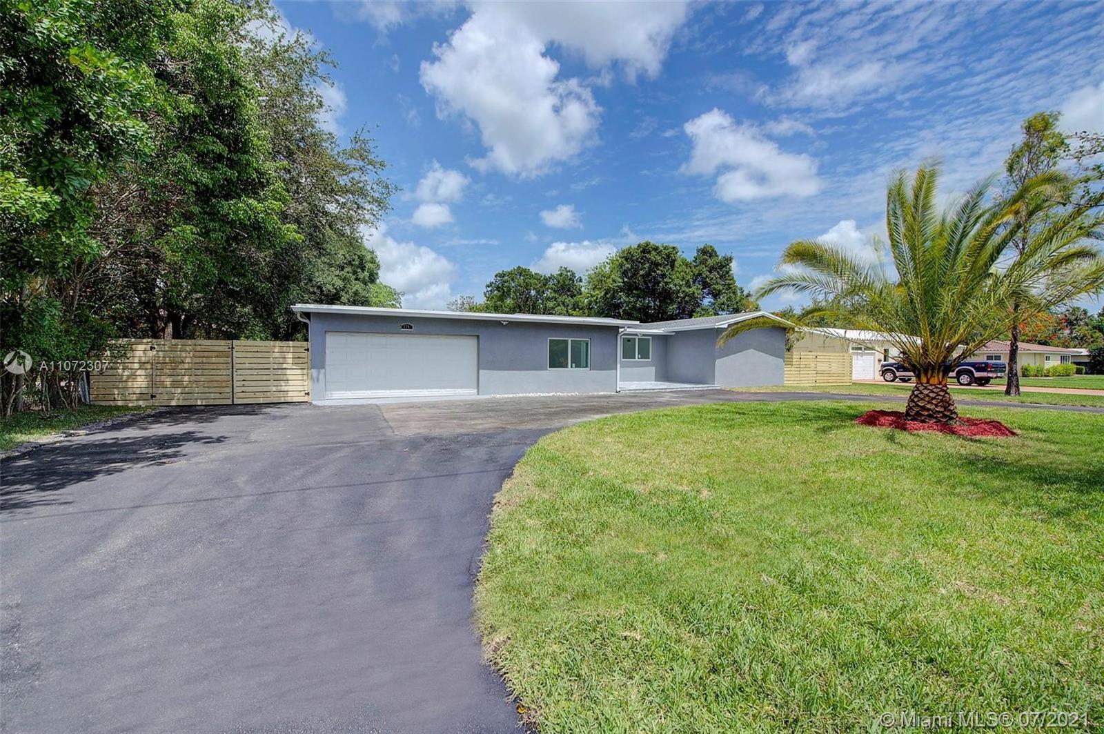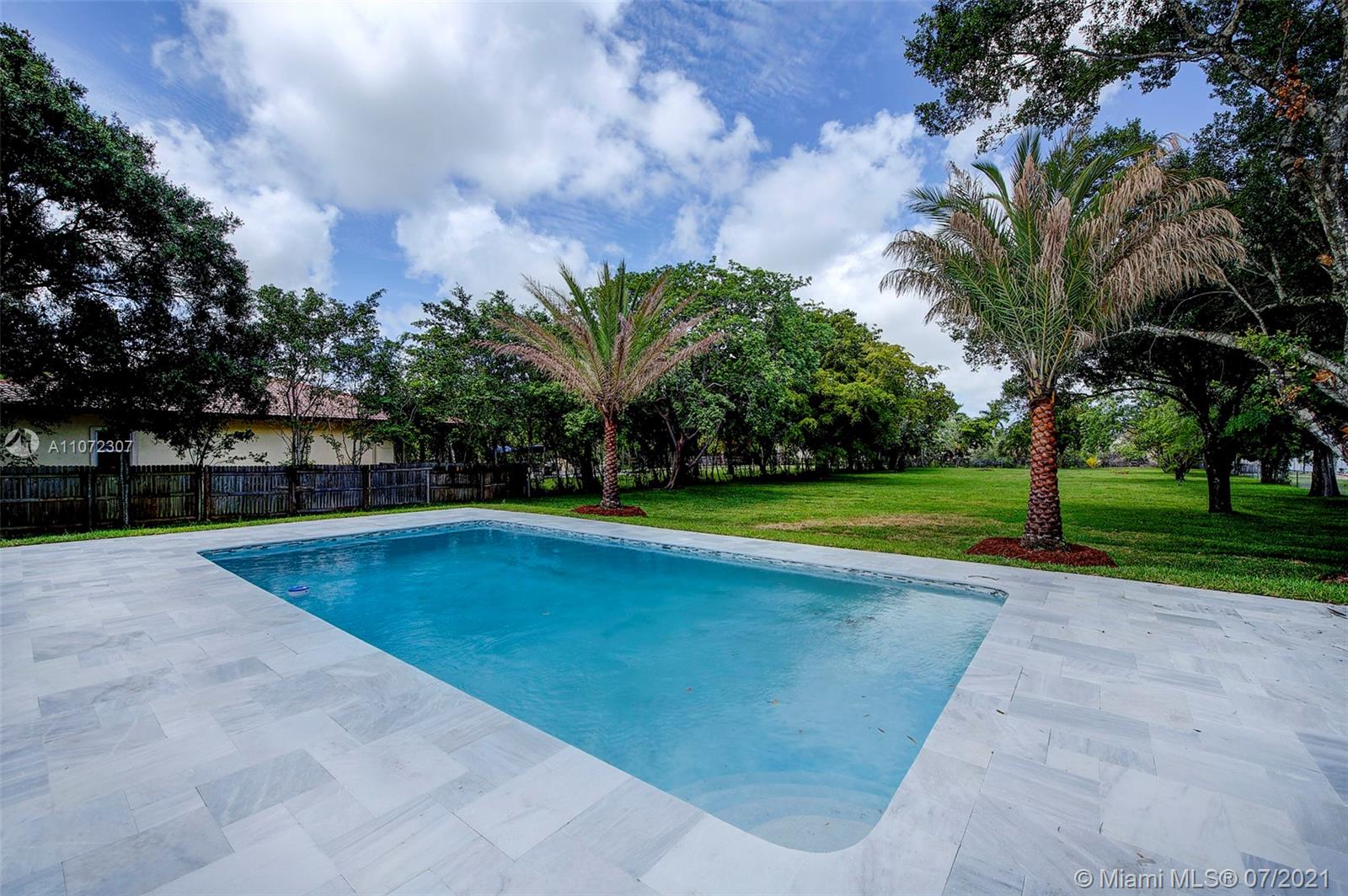 Move into your dream home on an acre lot with an open layout, featuring four bedrooms and a den. This beautiful home has an endless amount of upgrades. The entire home has been remodeled, from floors to the kitchen, to all the bathrooms and has custom interior doors. Features brand new appliances, two new AC units, and a new tankless water heater. Seller spared no expense and installed brand new impact windows and doors throughout the entire home. You'll not only fall in love with the interior of this home but the exterior is just as beautiful, freshly painted with a new wood fence. The backyard is an entertainers dream, the pool refinished with a marble pavers deck and the entire lot has fresh sod. Bring your boat, RV or other toys and store them on the paved side. Hurry will not last.