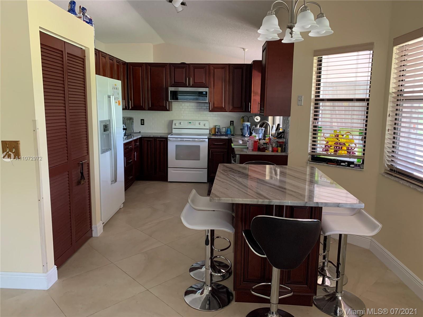 NEW ROOF (done in May'21, transferable title) 10,000+SF LOT! Updated Kitchen with marble tops/ solidwood cabinets and two remodeled Bathrooms. Diagonally-installed non-slip large tiles through out major areas. A marble top bar height table (island) w/ storages wood base. Spacious and bright 3 bedrooms (2 of them w/walk-in closets) 1 bonus game/storage room. Low profile over-the-range microwave hood combination and a counter width Bosch refrigerator. Brand new patio screened nets. This home has like-new accordion shutters for storm protection. This community is well managed and maintained. Great location to shopping, highways and parks. Excellent public, charter and private (Montessori Academy) schools nearby.