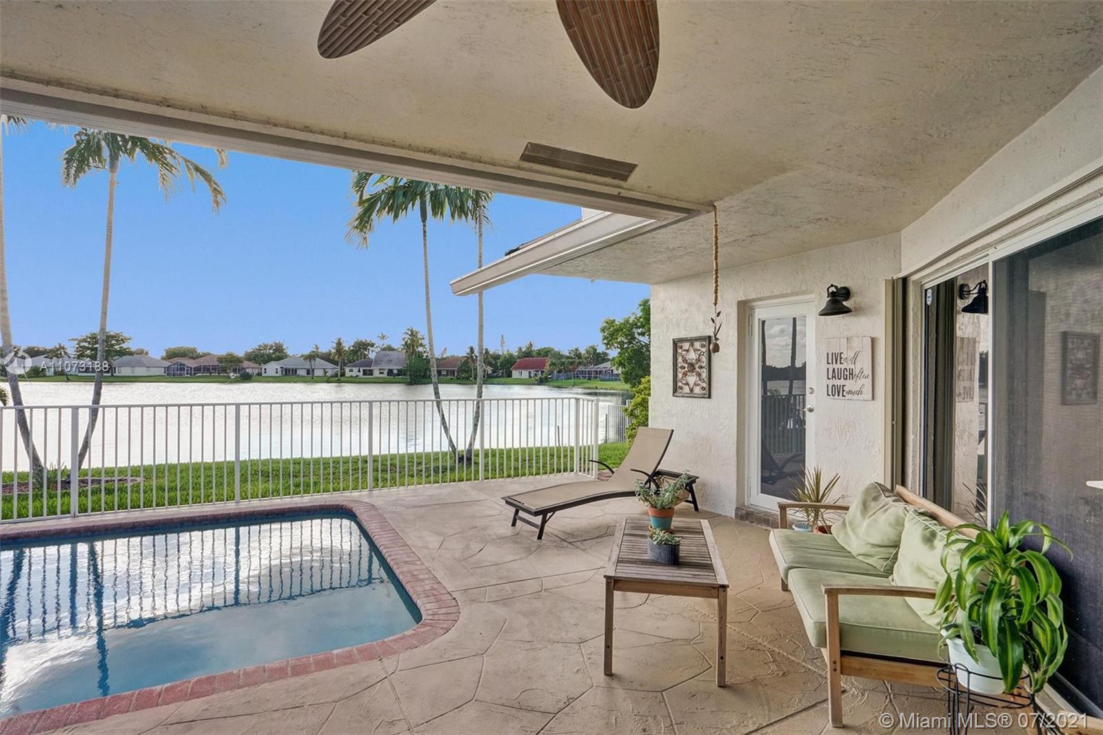 Bordering Sunrise & Weston this elegantly remodeled lakefront pool home offers discerning home seekers A-rated schools for all ages, proximity to shops, restaurants & all Sunrise and Weston have to offer. Relax poolside over looking the wide lake view with your morning coffee or bask under the colorful evening sunset with a glass of wine. This home has it all, but you. Wood cabinets & granite counters adorn the family sized kitchen. New petrified wood-porcelain tile floors throughout this spacious & warm home. The recently updated bathrooms have that same warm and cozy touch. Impact resistant windows and accordions protect you through storms. Minutes from I-75, 595, Sawgrass Expressway, Cleveland Clinic, FLL & more. Hurry Everyone's gonna want this one. Open House 7/22 & 7/23 5:30-7:30.