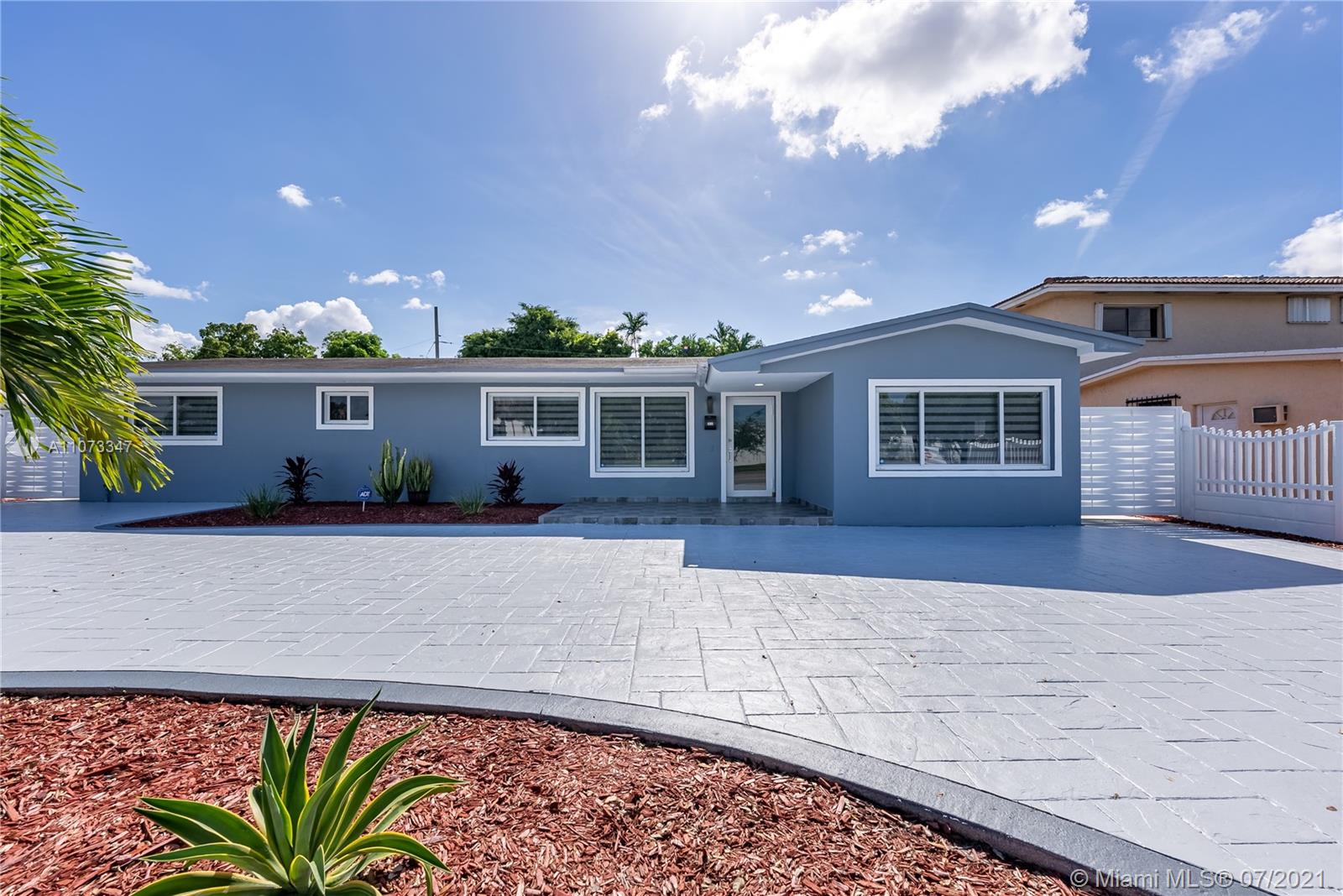 No expense was spared on this spacious 4 bedroom 2 bathroom home in the wonderful neighborhood of Palm Springs Estates. The owners were thoughtful and precise in choosing every feature in this home. From the beautiful impact windows and doors, large circular driveway, large tile floors throughout, recessed lighting, a modern style kitchen with high gloss cabinetry and stainless steel appliances, beautifully designed bathrooms with granite vanity tops, an office space with a backyard view, and a big backyard with an open patio great for entertaining. Garage was converted into a laundry room and another space for a gym or an extra office space. A 5-ton A/C unit inside and outside were upgraded in 2018, Roof was done 7 yrs ago. Close to schools, shopping, restaurants, and major highways.