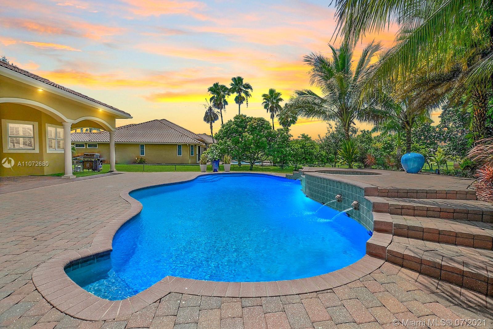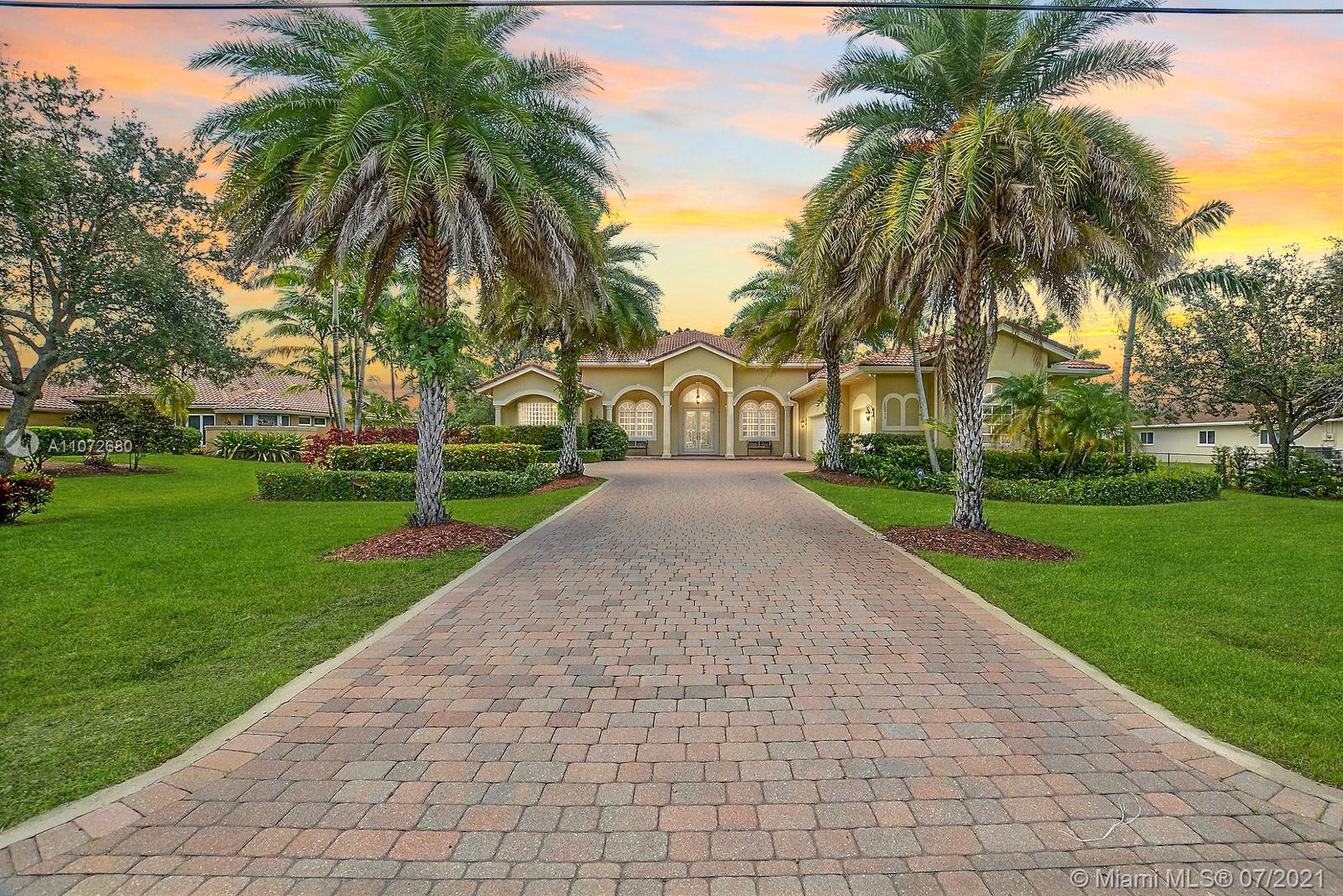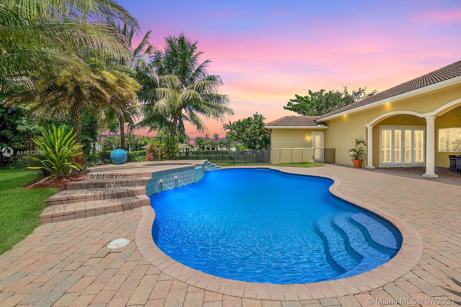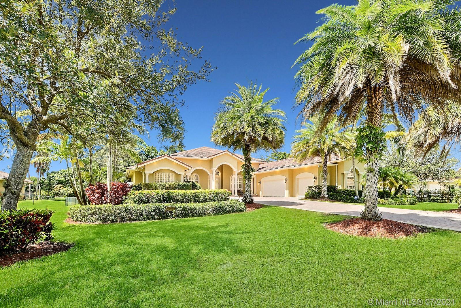 ELEGANTLY APPOINTED IN PROMINENT PLANTATION ACRES, THIS SPECTACULAR ESTATE HOME SITUATED ON A SPRAWLING BUILDER'S ACRE OFFERS 4,376SF OF LUXURY LIVING, 5 BEDS, 3.5 BATHS & OFFICE. DAZZLING HIGH-END REMODEL W TRAVERTINE FLOORING, WINE BAR & MODERN TOP OF THE LINE KITCHEN COMPLETE W MIELE APPLIANCES, CUSTOM CABINETRY & 10 FT QUARTZITE COUNTERS W WATERFALL & NO SEAMS. FABULOUS REIMAGINED LAYOUT CREATED OPEN CONCEPT LIVING. TRIPLE SPLIT FLOOR PLAN. FIFTH BED IS STATE OF THE ART HOME THEATER. STUNNING PRIMARY SUITE W OFFICE & VIEWS OF THE POOL & LUSH GROUNDS. ENSUITE SPA RETREAT HAS 2 CUSTOM VANITIES, SOAKER TUB & DOUBLE-ENTRY SHOWER. BACKYARD PARADISE W COVERED PATIO IS PERFECT FOR DINING AL FRESCO W STUNNING VIEWS OF THE FREEFORM POOL, WATERFALL & SPA. LONG DRIVEWAY & 3 CAR GARAGE.
