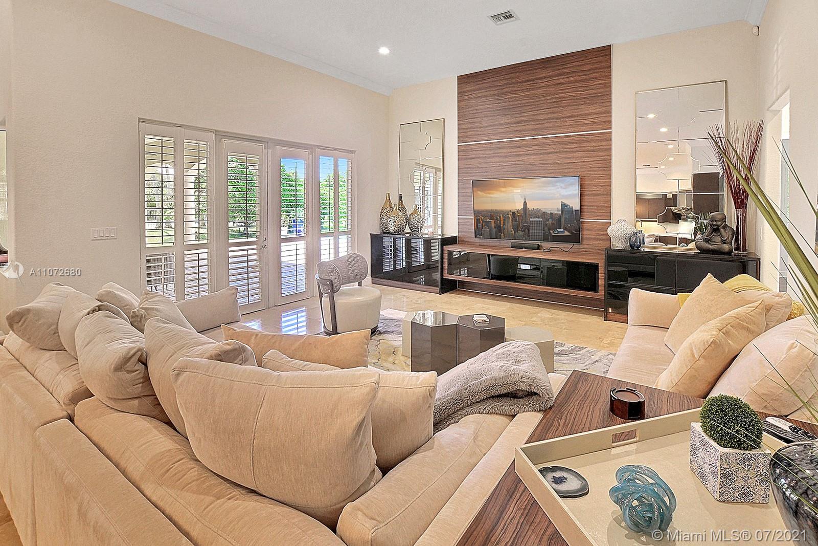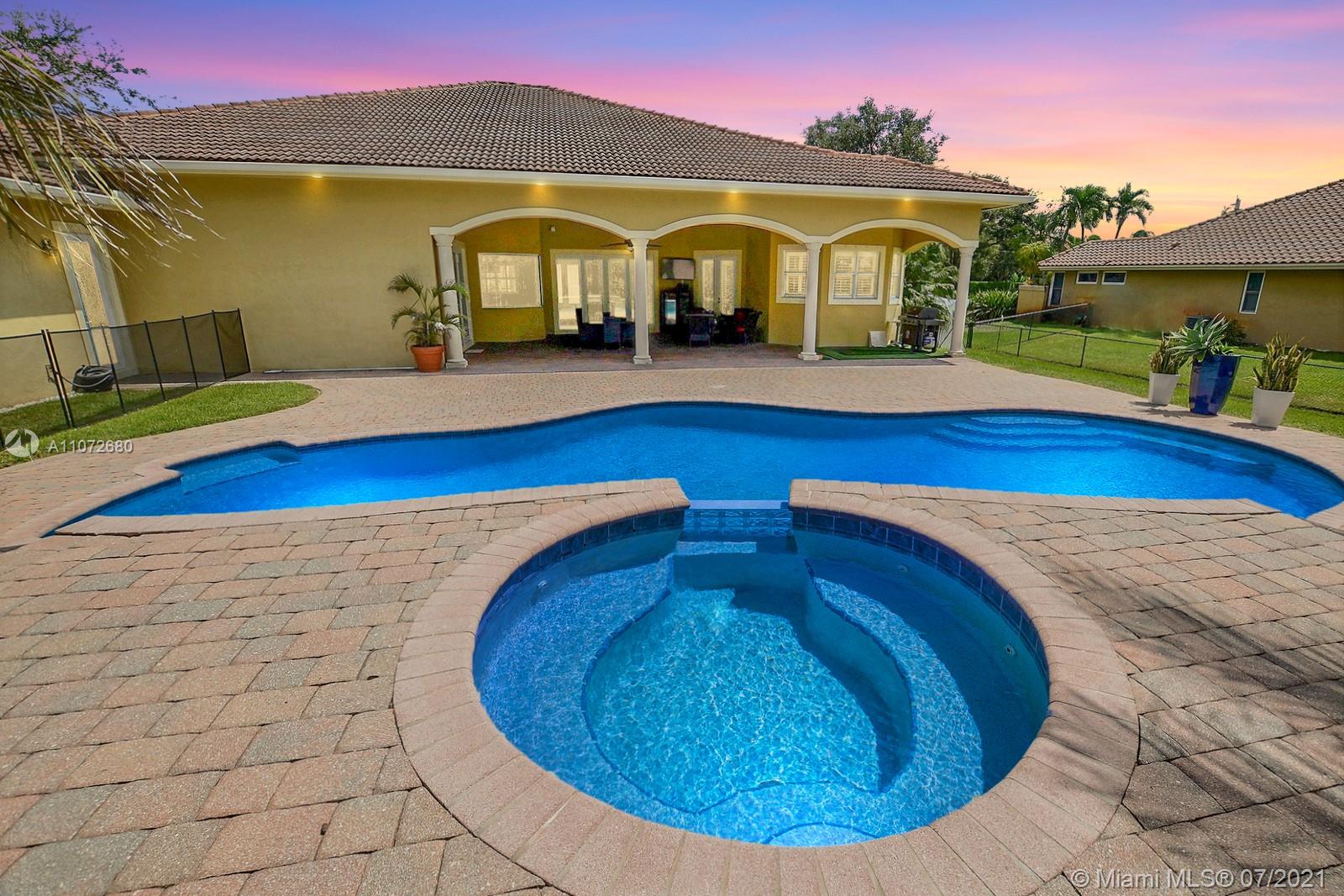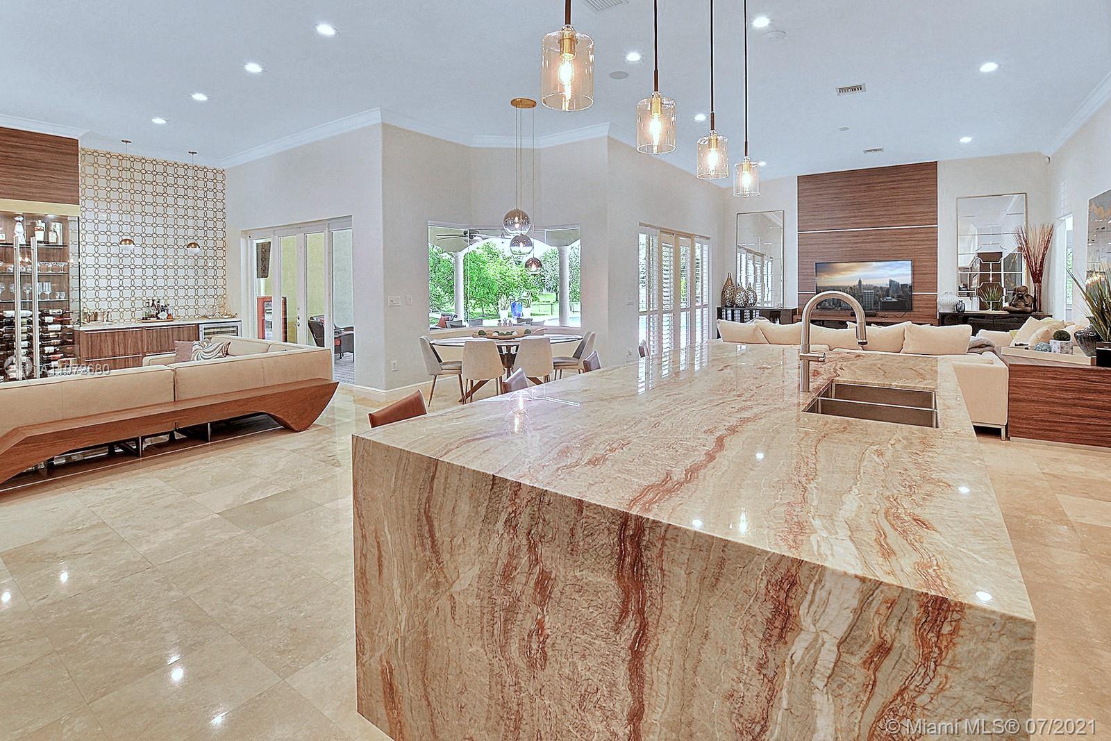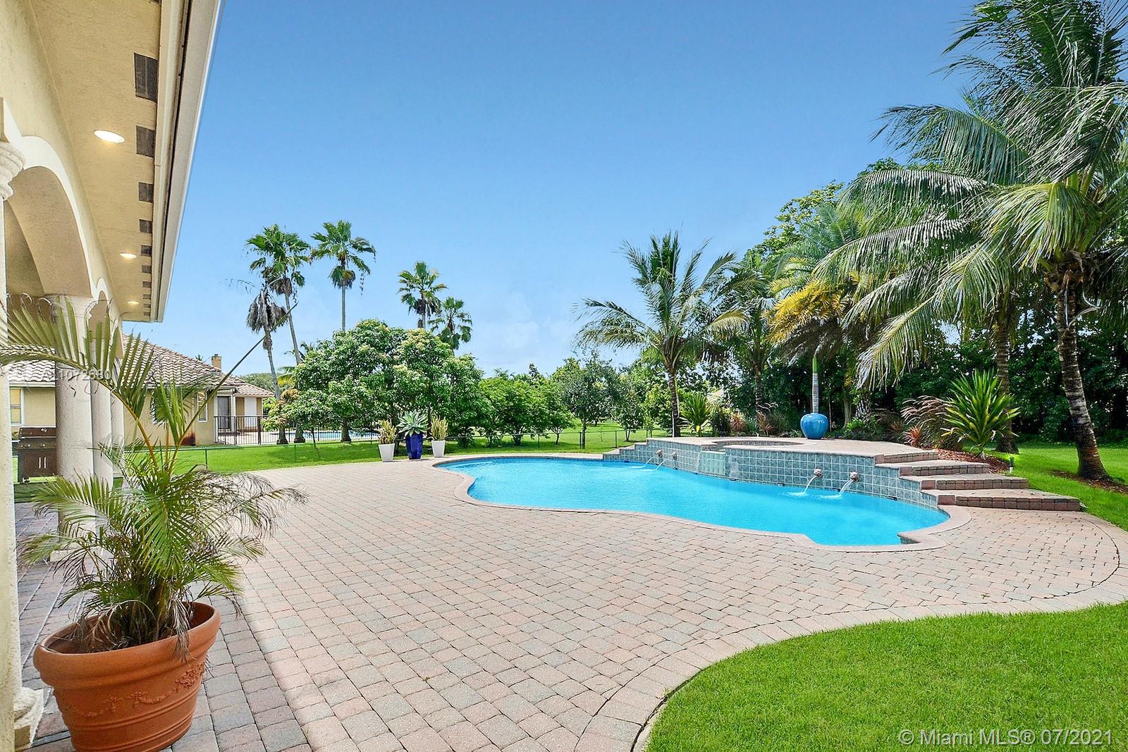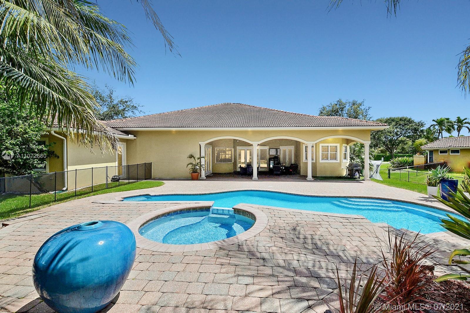 ELEGANTLY APPOINTED IN PROMINENT PLANTATION ACRES, THIS SPECTACULAR ESTATE HOME SITUATED ON A SPRAWLING BUILDER'S ACRE OFFERS 4,376SF OF LUXURY LIVING, 5 BEDS, 3.5 BATHS & OFFICE. DAZZLING HIGH-END REMODEL W TRAVERTINE FLOORING, WINE BAR & MODERN TOP OF THE LINE KITCHEN COMPLETE W MIELE APPLIANCES, CUSTOM CABINETRY & 10 FT QUARTZITE COUNTERS W WATERFALL & NO SEAMS. FABULOUS REIMAGINED LAYOUT CREATED OPEN CONCEPT LIVING. TRIPLE SPLIT FLOOR PLAN. FIFTH BED IS STATE OF THE ART HOME THEATER. STUNNING PRIMARY SUITE W OFFICE & VIEWS OF THE POOL & LUSH GROUNDS. ENSUITE SPA RETREAT HAS 2 CUSTOM VANITIES, SOAKER TUB & DOUBLE-ENTRY SHOWER. BACKYARD PARADISE W COVERED PATIO IS PERFECT FOR DINING AL FRESCO W STUNNING VIEWS OF THE FREEFORM POOL, WATERFALL & SPA. LONG DRIVEWAY & 3 CAR GARAGE.