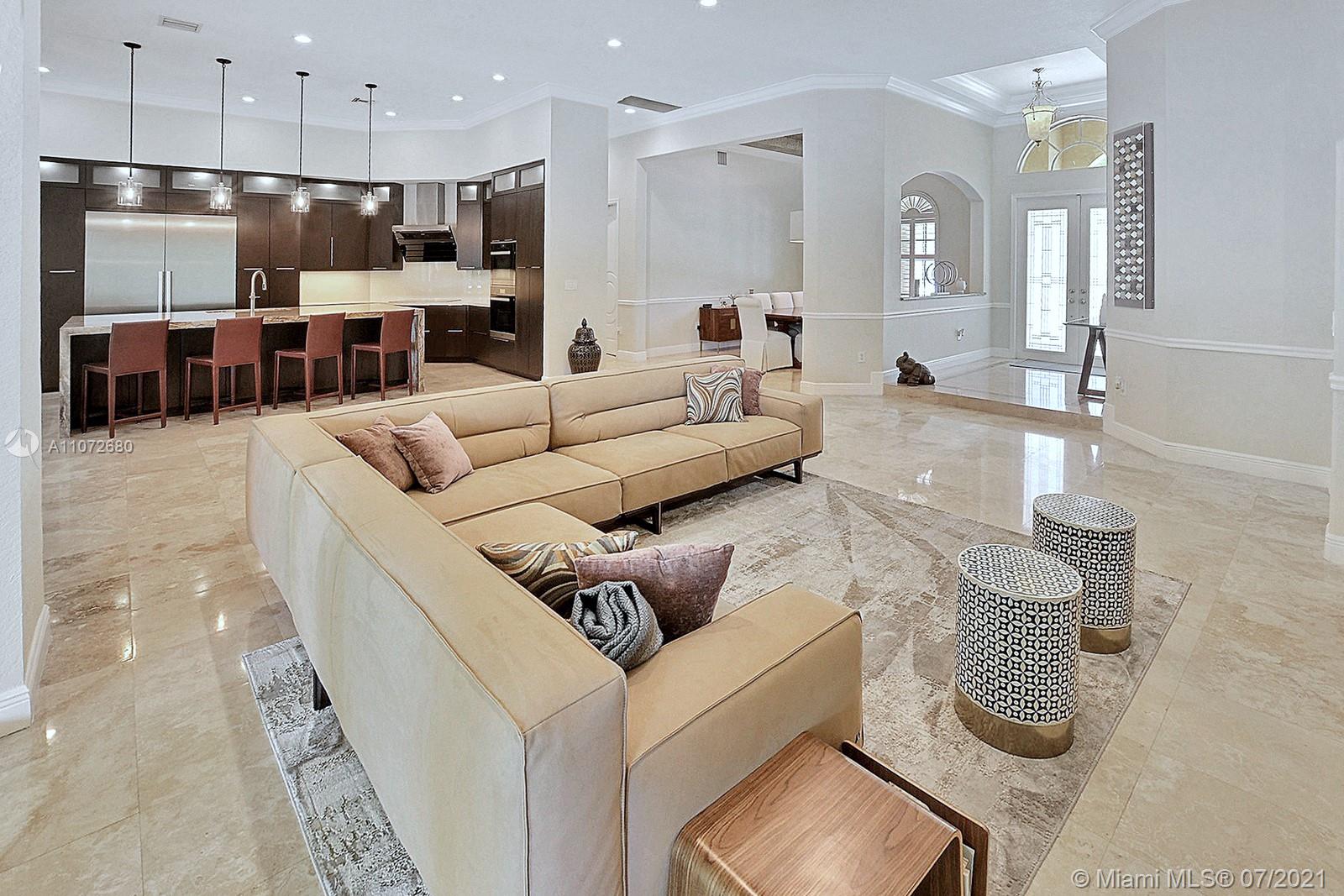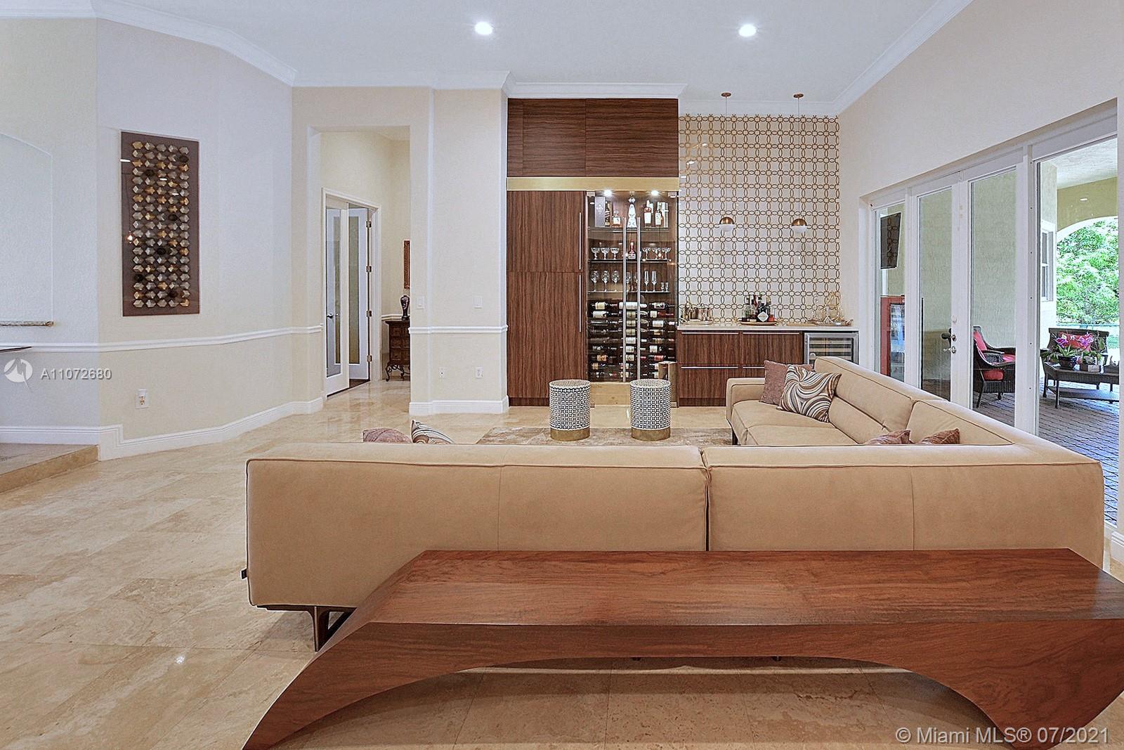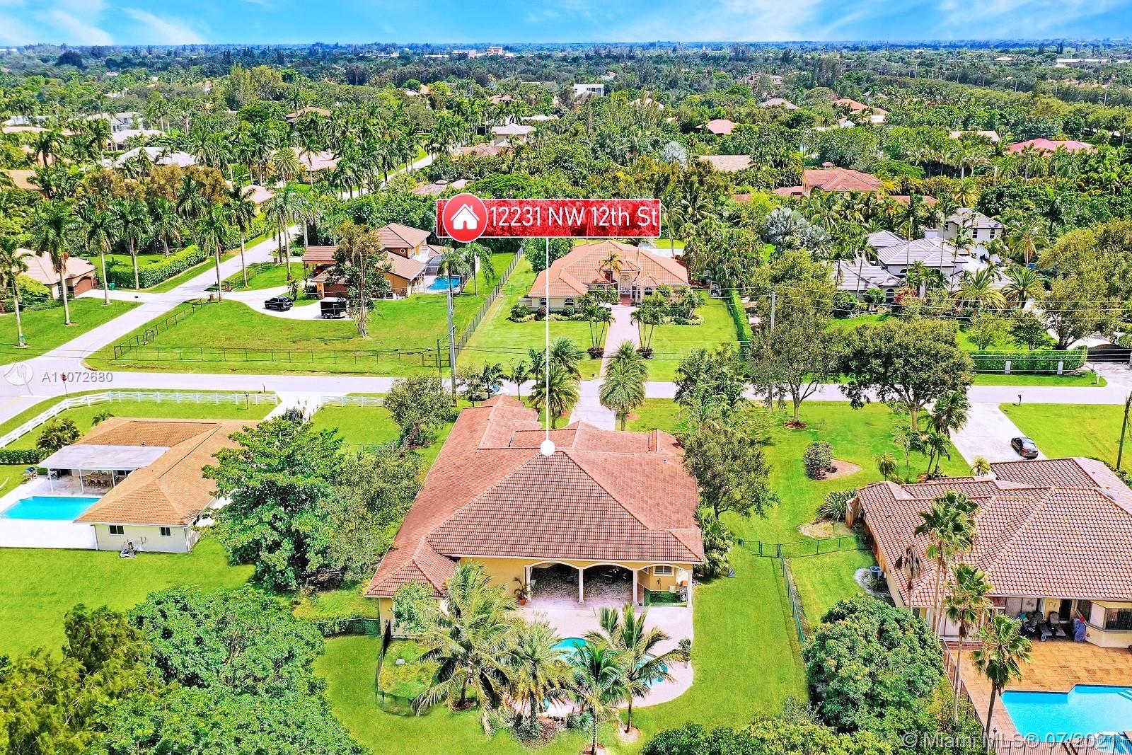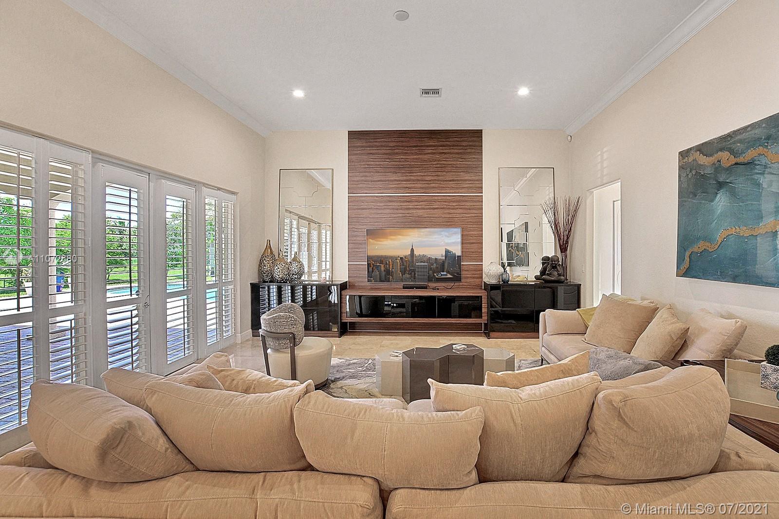 ELEGANTLY APPOINTED IN PROMINENT PLANTATION ACRES, THIS SPECTACULAR ESTATE HOME SITUATED ON A SPRAWLING BUILDER'S ACRE OFFERS 4,376SF OF LUXURY LIVING, 5 BEDS, 3.5 BATHS & OFFICE. DAZZLING HIGH-END REMODEL W TRAVERTINE FLOORING, WINE BAR & MODERN TOP OF THE LINE KITCHEN COMPLETE W MIELE APPLIANCES, CUSTOM CABINETRY & 10 FT QUARTZITE COUNTERS W WATERFALL & NO SEAMS. FABULOUS REIMAGINED LAYOUT CREATED OPEN CONCEPT LIVING. TRIPLE SPLIT FLOOR PLAN. FIFTH BED IS STATE OF THE ART HOME THEATER. STUNNING PRIMARY SUITE W OFFICE & VIEWS OF THE POOL & LUSH GROUNDS. ENSUITE SPA RETREAT HAS 2 CUSTOM VANITIES, SOAKER TUB & DOUBLE-ENTRY SHOWER. BACKYARD PARADISE W COVERED PATIO IS PERFECT FOR DINING AL FRESCO W STUNNING VIEWS OF THE FREEFORM POOL, WATERFALL & SPA. LONG DRIVEWAY & 3 CAR GARAGE.