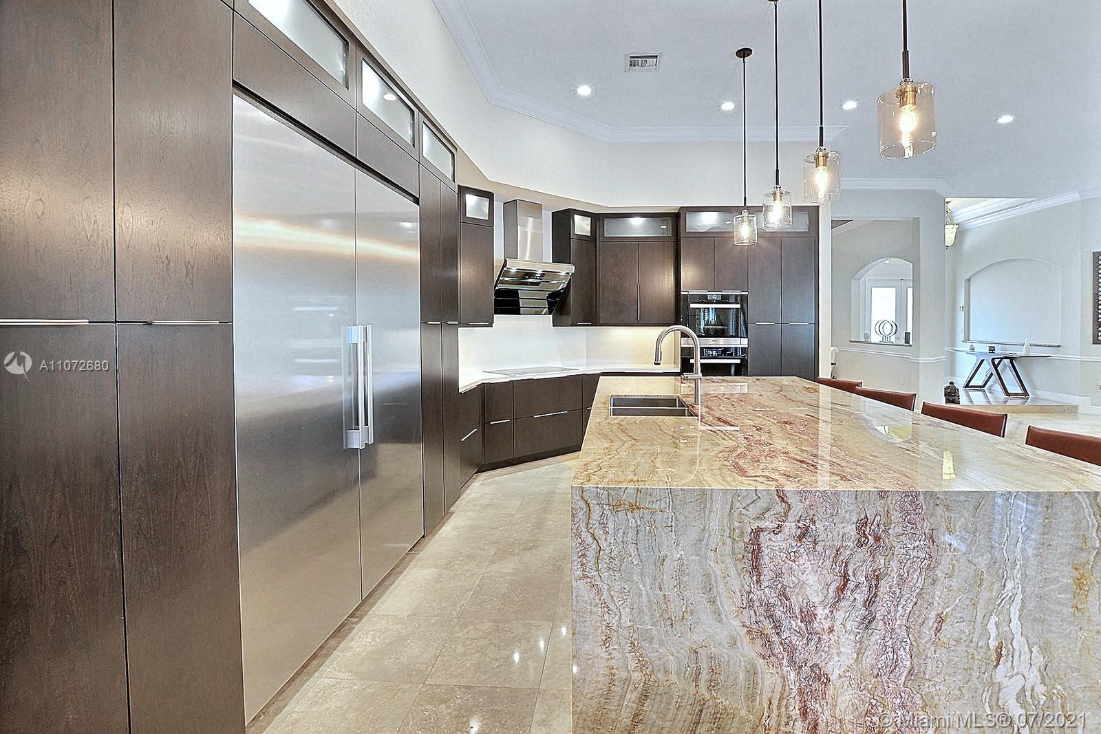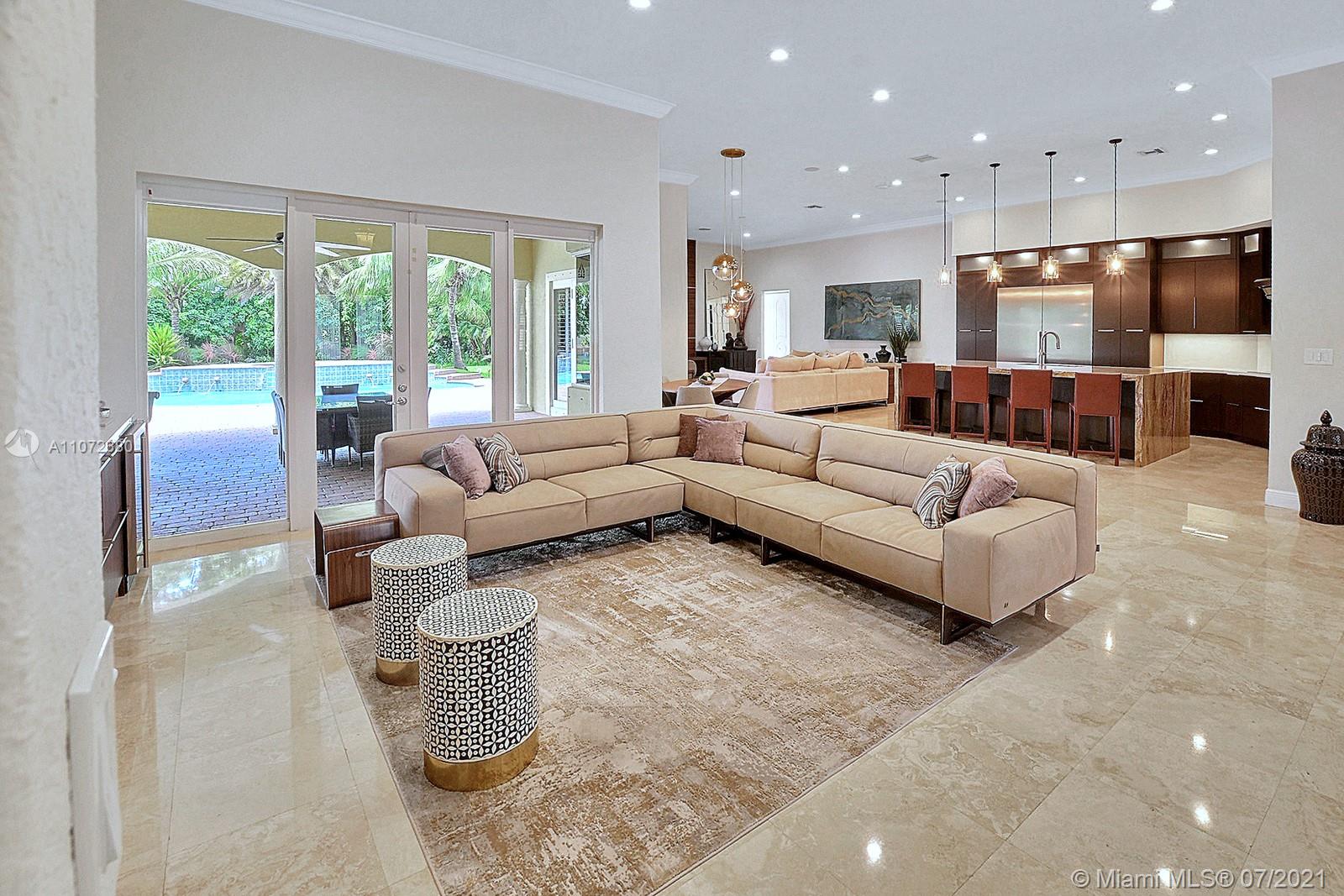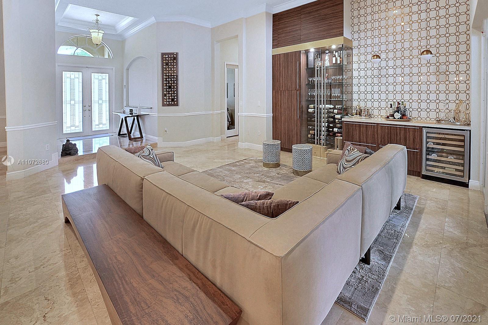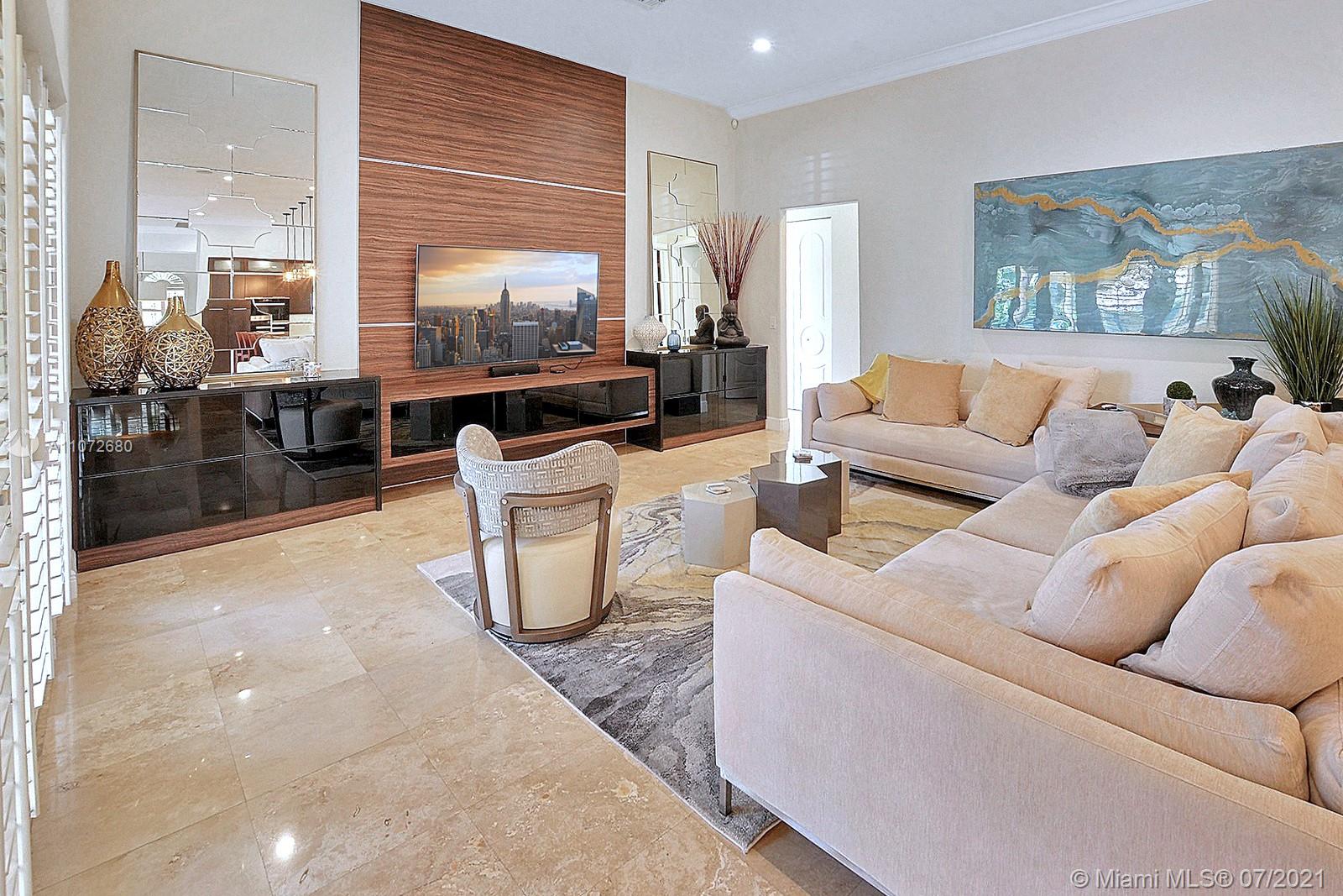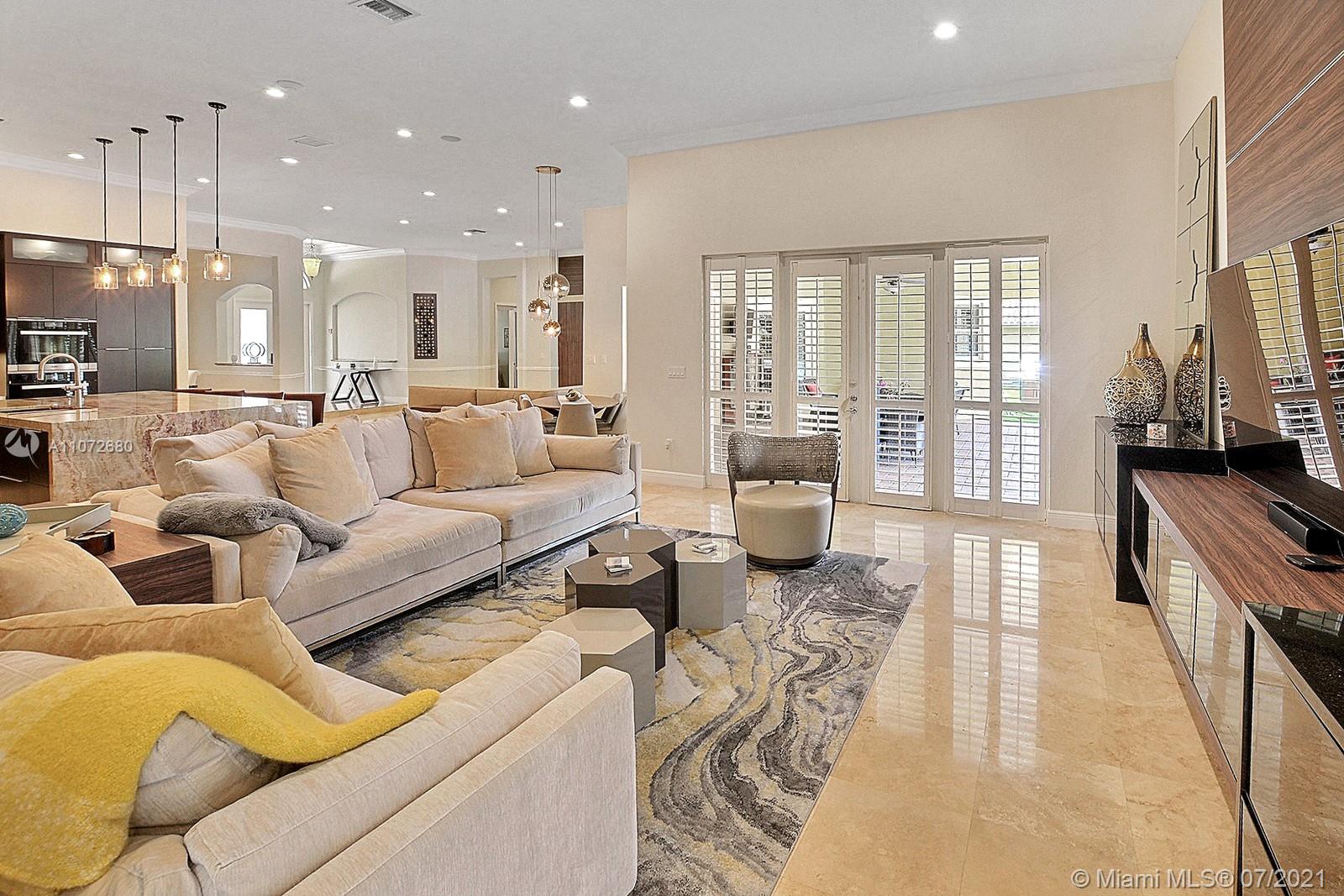 ELEGANTLY APPOINTED IN PROMINENT PLANTATION ACRES, THIS SPECTACULAR ESTATE HOME SITUATED ON A SPRAWLING BUILDER'S ACRE OFFERS 4,376SF OF LUXURY LIVING, 5 BEDS, 3.5 BATHS & OFFICE. DAZZLING HIGH-END REMODEL W TRAVERTINE FLOORING, WINE BAR & MODERN TOP OF THE LINE KITCHEN COMPLETE W MIELE APPLIANCES, CUSTOM CABINETRY & 10 FT QUARTZITE COUNTERS W WATERFALL & NO SEAMS. FABULOUS REIMAGINED LAYOUT CREATED OPEN CONCEPT LIVING. TRIPLE SPLIT FLOOR PLAN. FIFTH BED IS STATE OF THE ART HOME THEATER. STUNNING PRIMARY SUITE W OFFICE & VIEWS OF THE POOL & LUSH GROUNDS. ENSUITE SPA RETREAT HAS 2 CUSTOM VANITIES, SOAKER TUB & DOUBLE-ENTRY SHOWER. BACKYARD PARADISE W COVERED PATIO IS PERFECT FOR DINING AL FRESCO W STUNNING VIEWS OF THE FREEFORM POOL, WATERFALL & SPA. LONG DRIVEWAY & 3 CAR GARAGE.